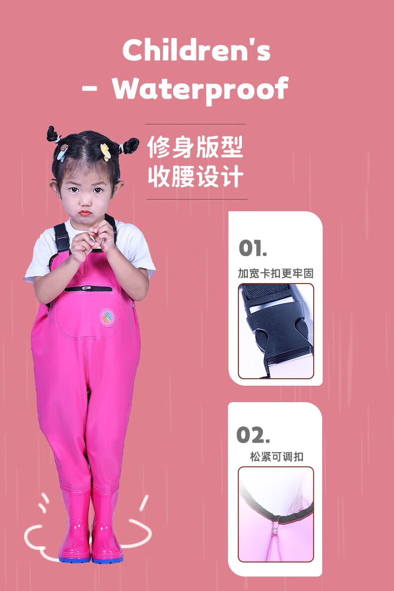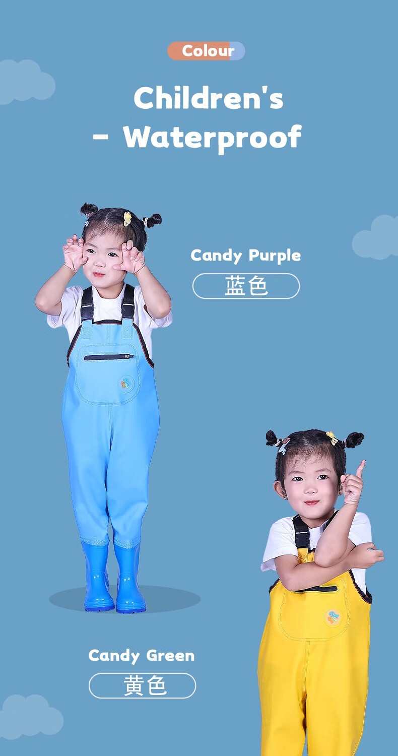 Children's waterproof pants, children's waders, play water one-piece clothes, rain boots, kindergarten waterproof, catching the sea, children, men and women, children's yellow overalls, with pockets, 31 shoes, inner length 19.5cm