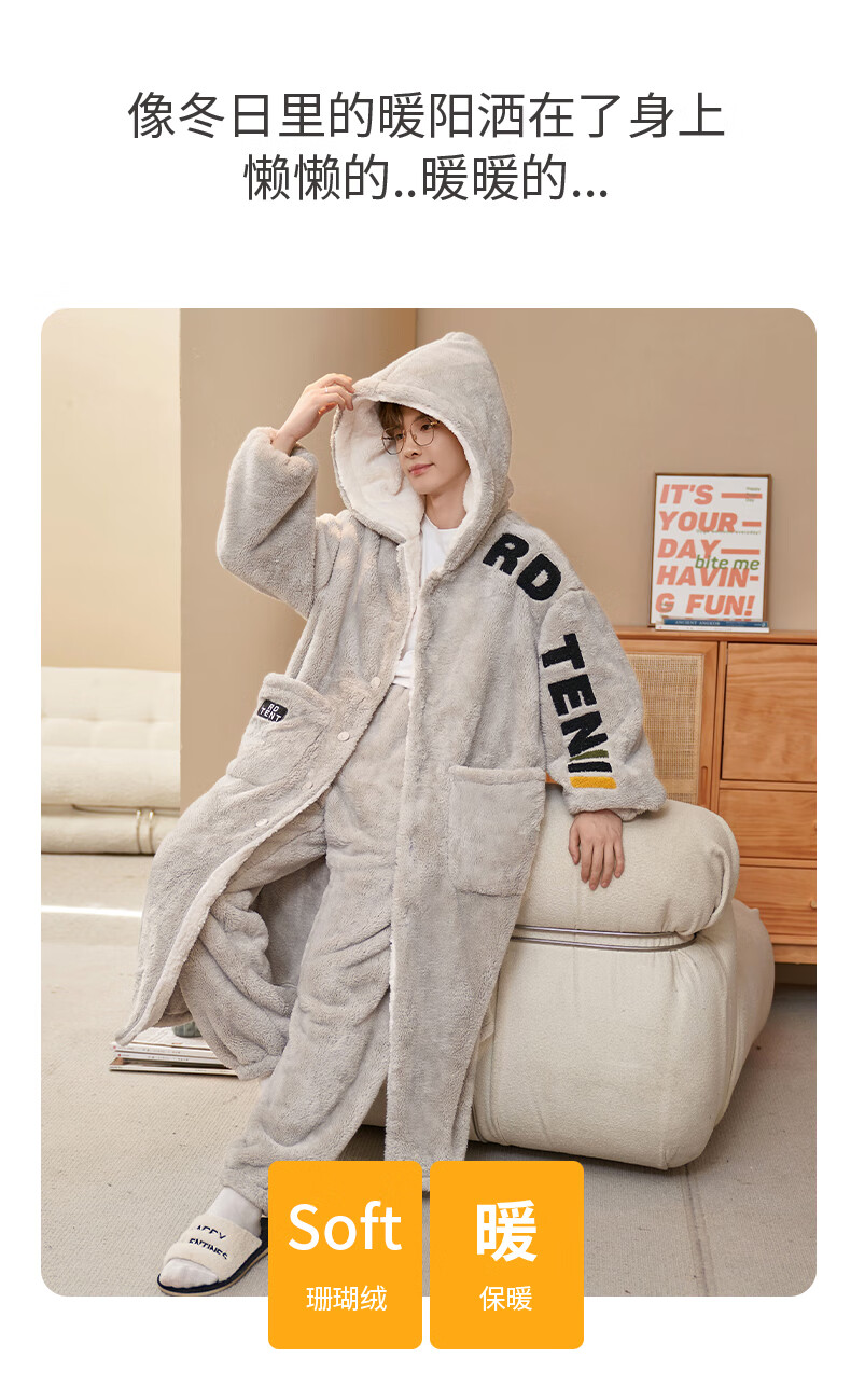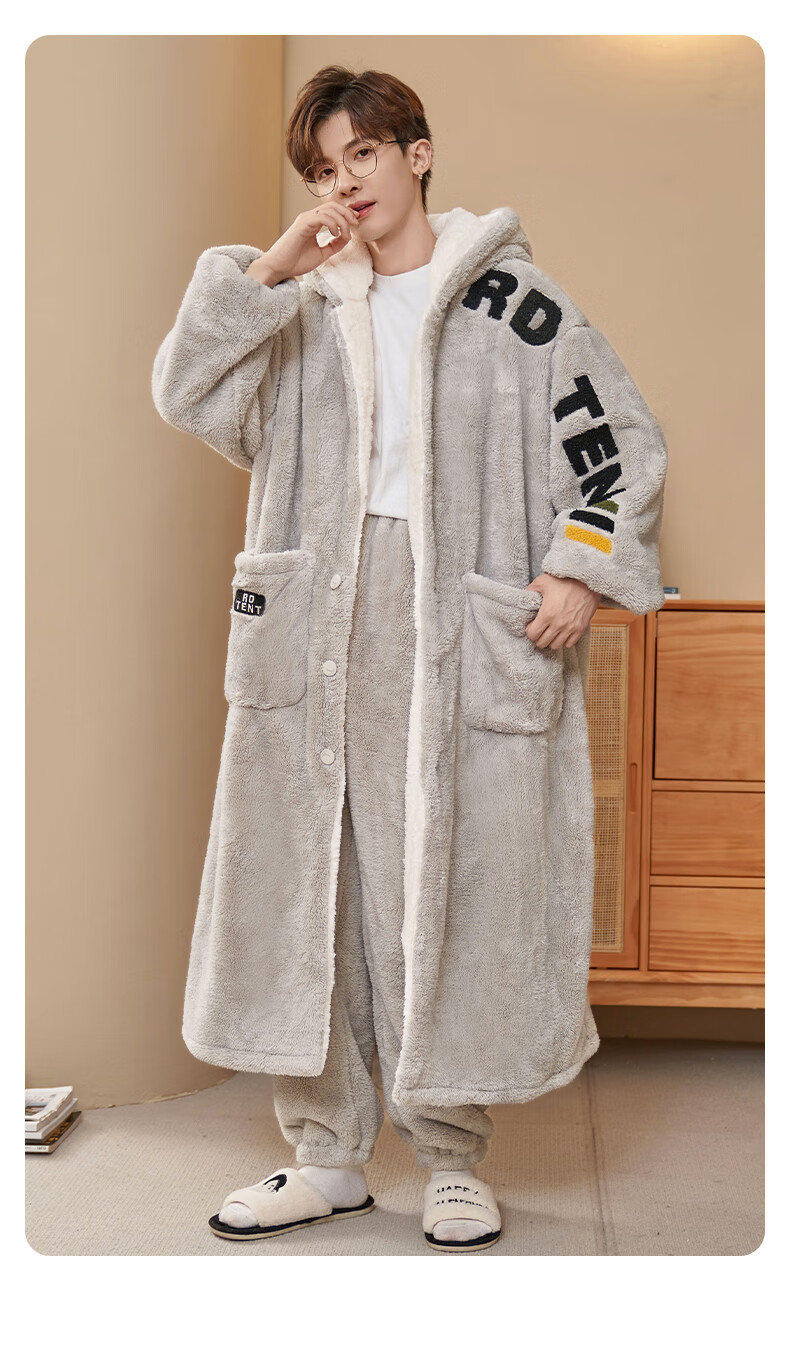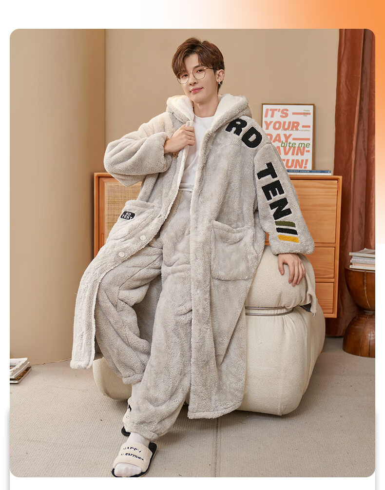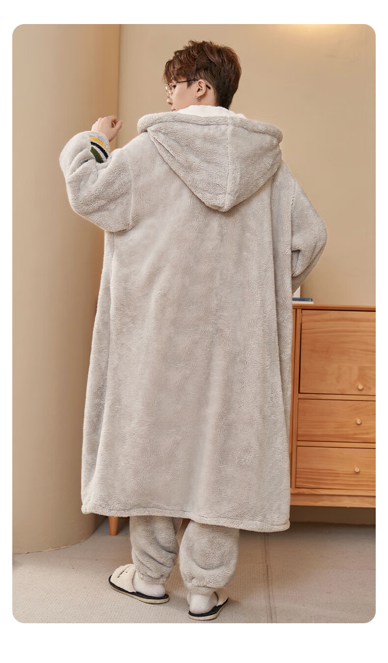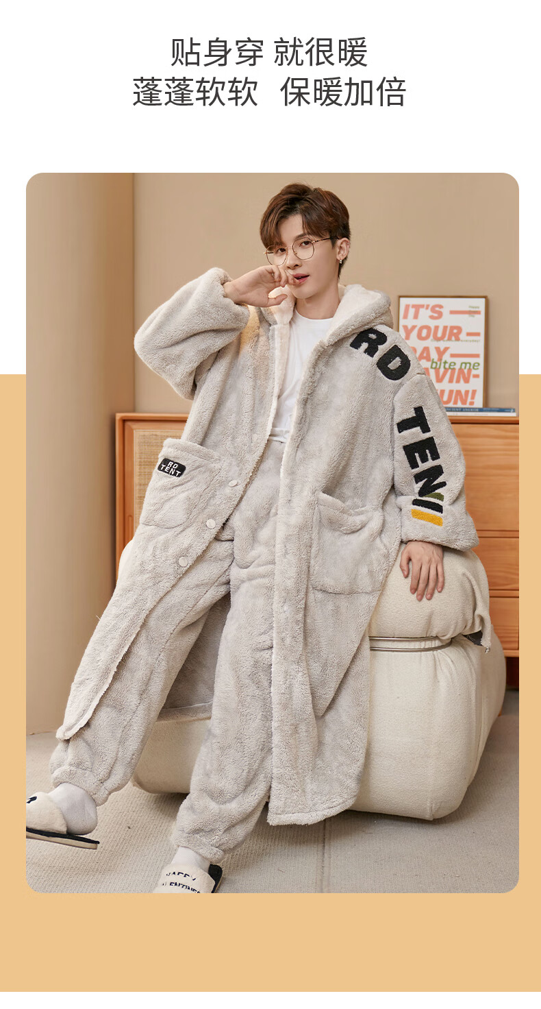 Siqiniao Autumn and Winter Coral Velvet Pajamas Men's Pajamas Large Size Loose Long Bathrobe Men's Winter Flannel Home Clothes Youth 3218# Robe + Pajamas XL (Recommended 130-155 Jin Jin equals 0.5 kg / Height 170-175)