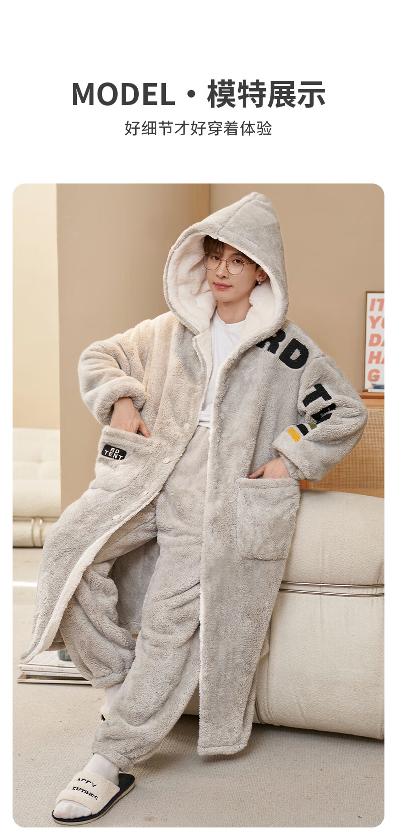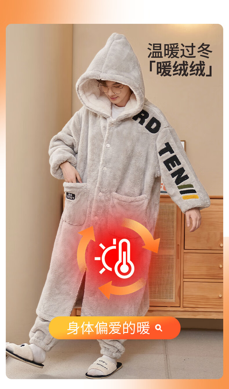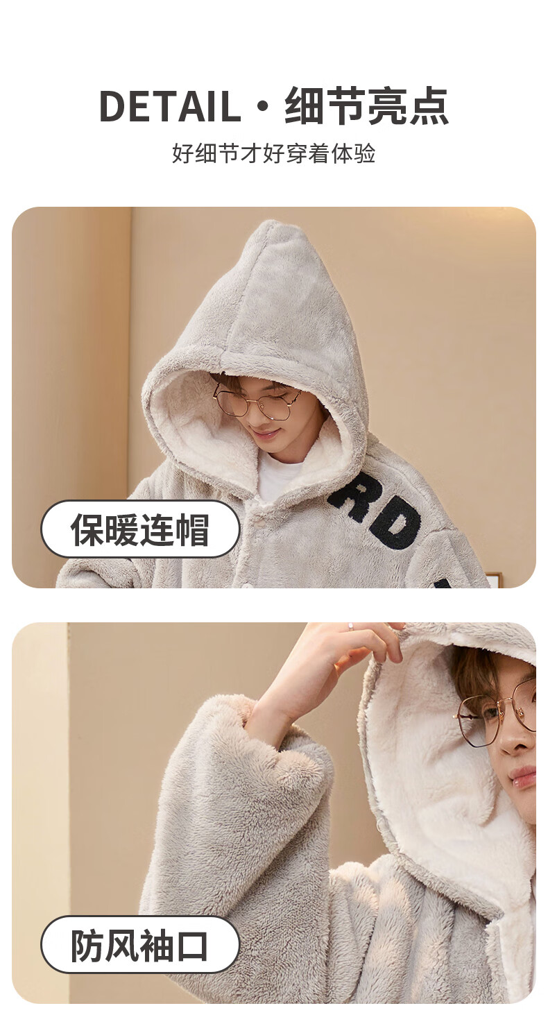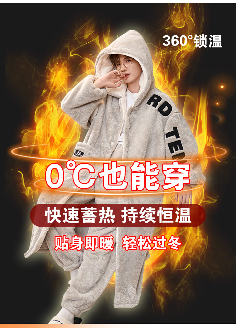Siqiniao Autumn and Winter Coral Velvet Pajamas Men's Pajamas Large Size Loose Long Bathrobe Men's Winter Flannel Home Clothes Youth 3218# Robe + Pajamas XL (Recommended 130-155 Jin Jin equals 0.5 kg / Height 170-175)