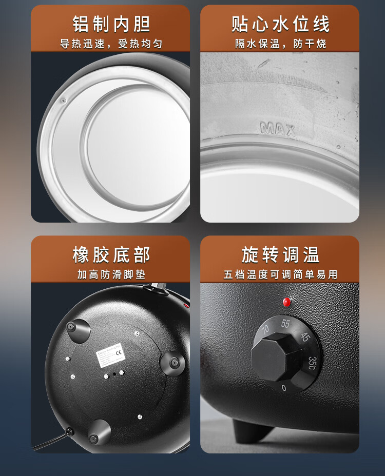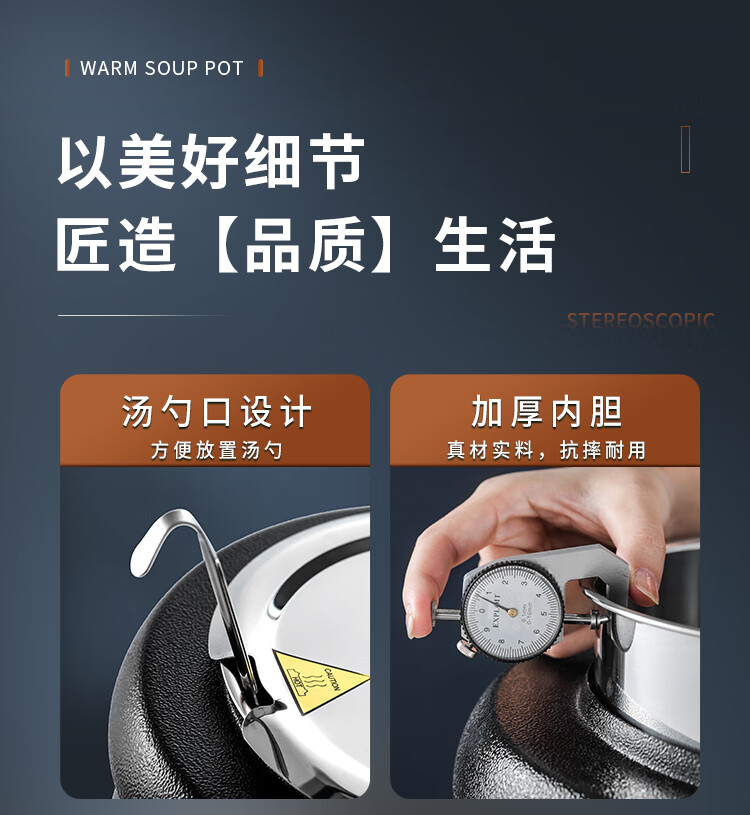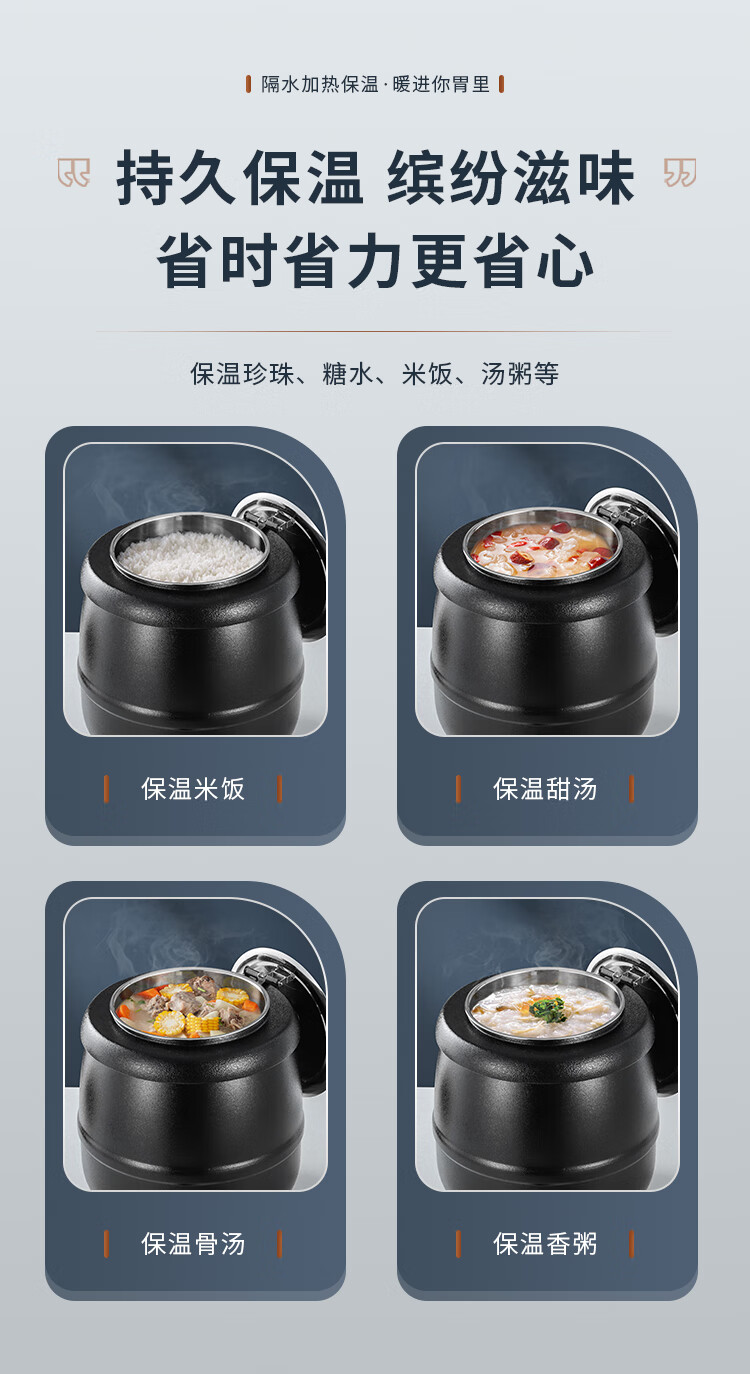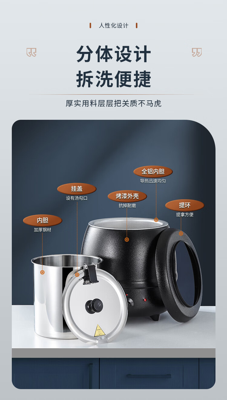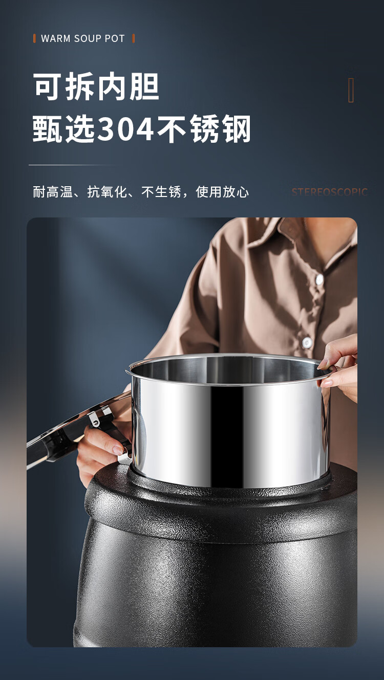 Cantonese Warm Soup Pot Commercial Stainless Steel Electric Heating Insulated Soup Pot Hotel Breakfast Buffet Warm Porridge Pot Warming Soup Stove 13L Drum Type Black Soup Pot Small Mouth Lid 201 Liner
