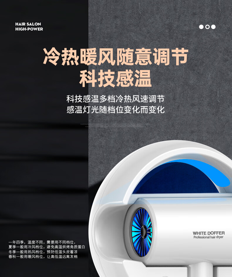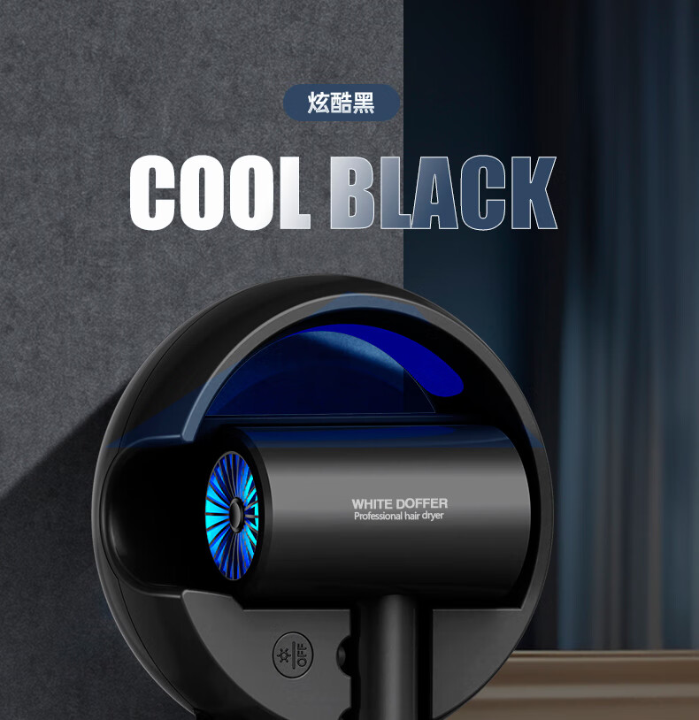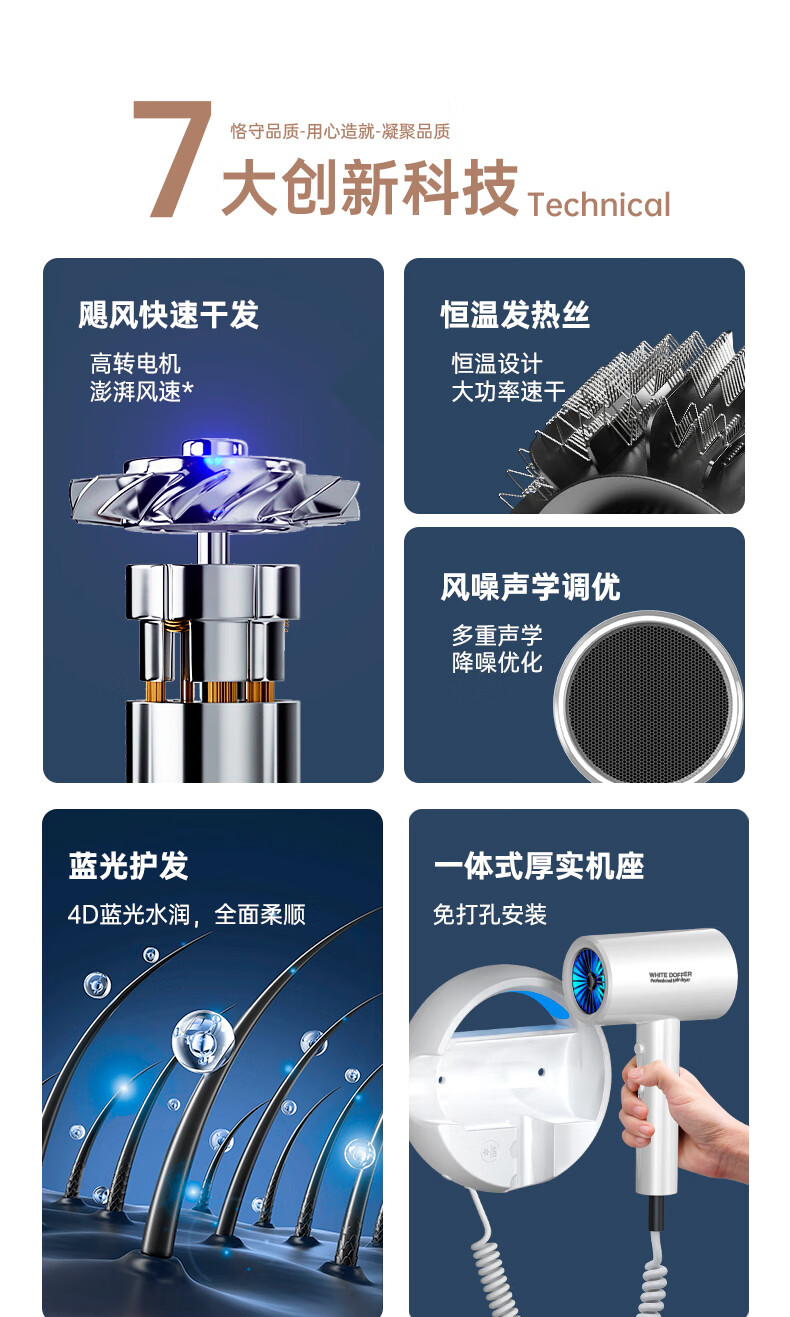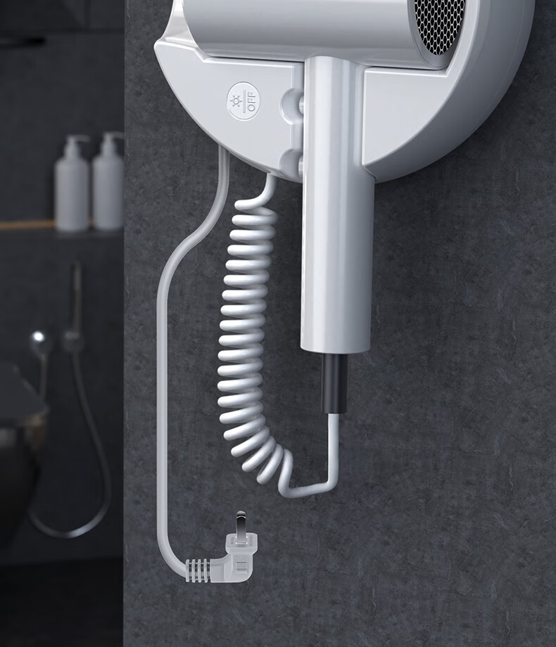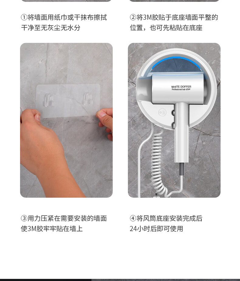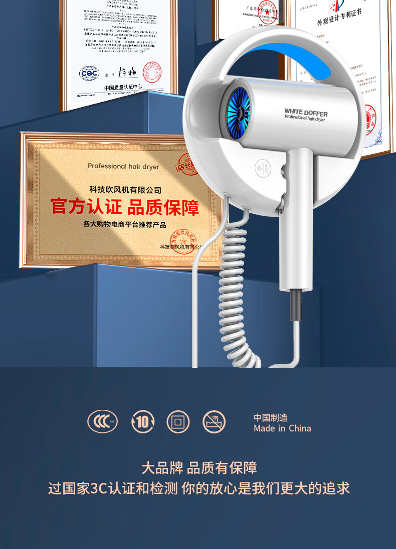 White Doffer hotel hair dryer wall-mounted bathroom punch-free home bathroom high-power hot and cold air blue light hair dryer hanging on the wall does not hurt hair can be customized punch-free + punch white 1600W hotel and guesthouse general