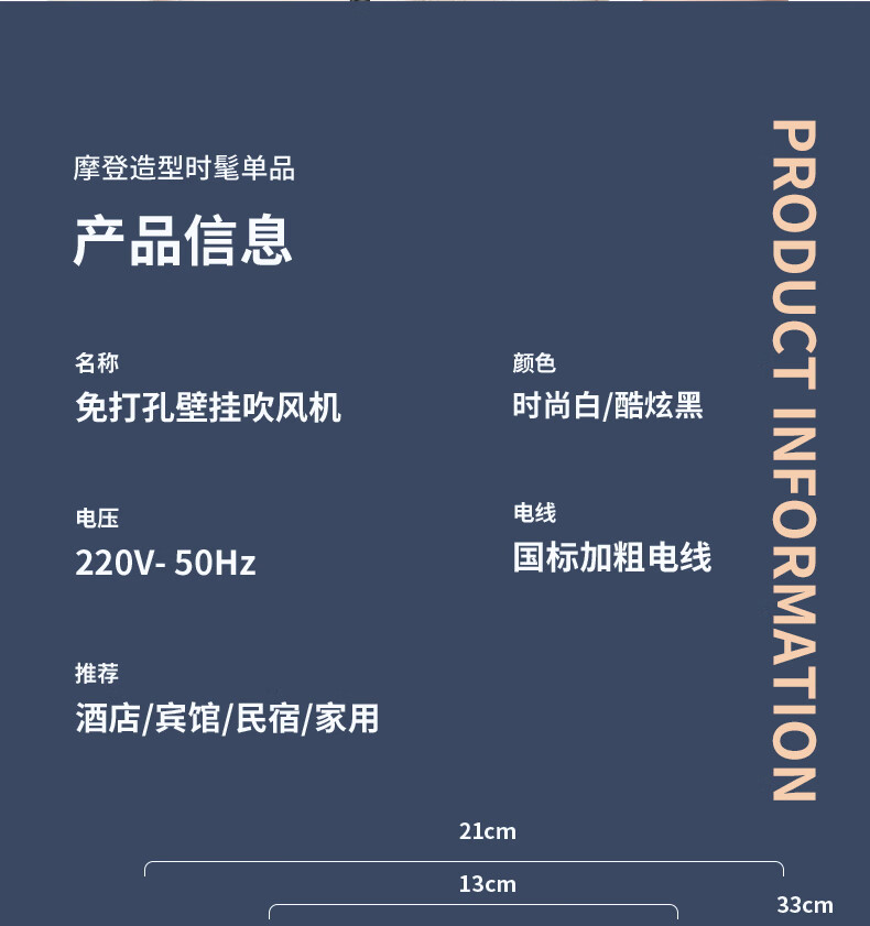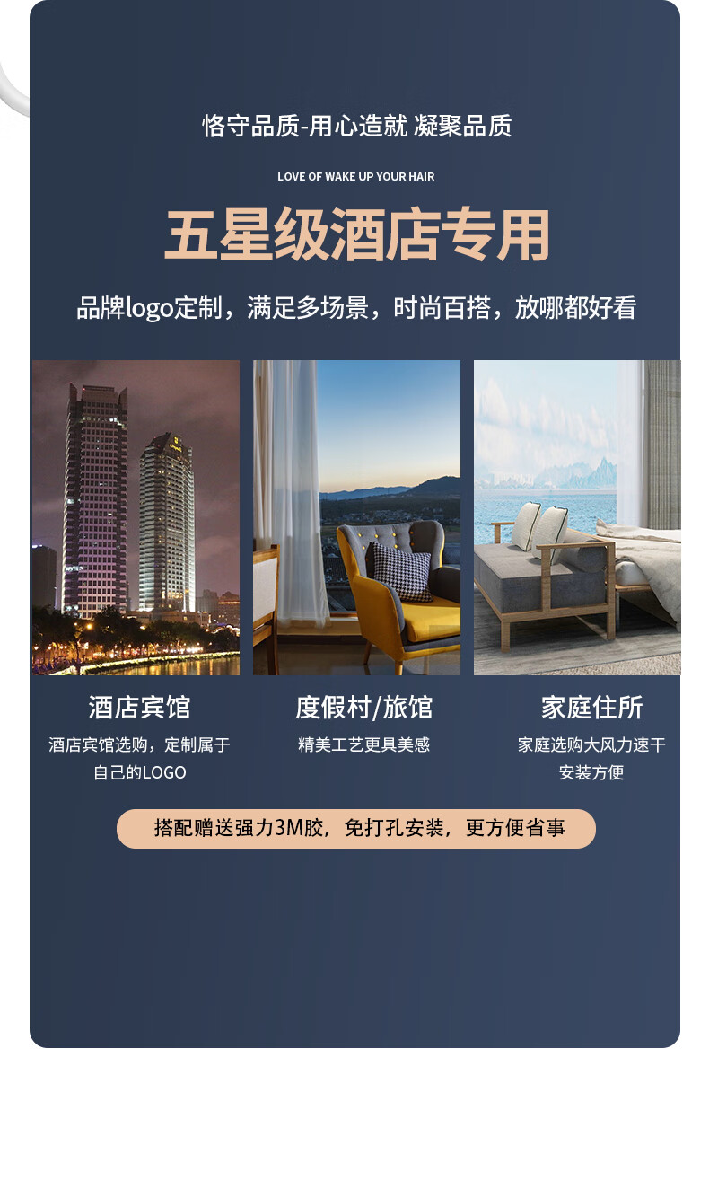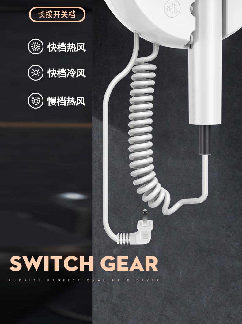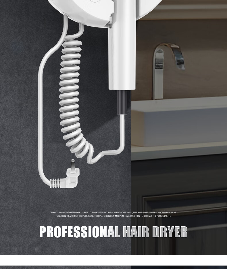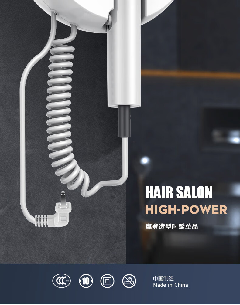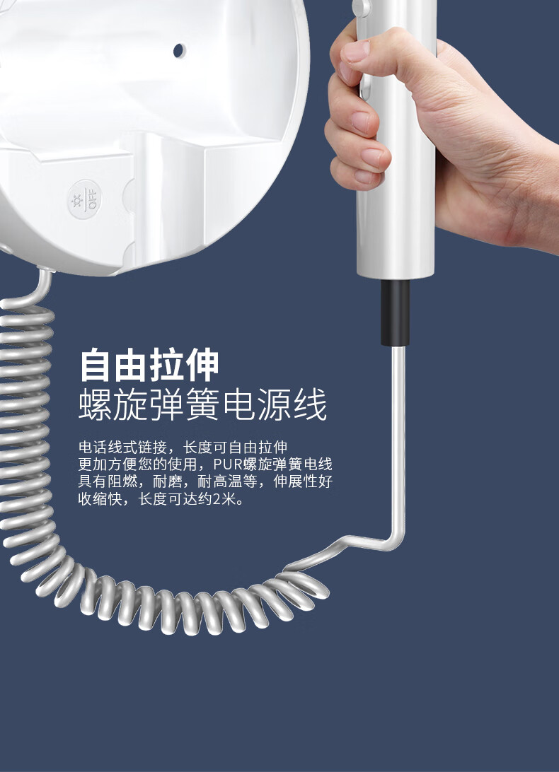 White Doffer hotel hair dryer wall-mounted bathroom punch-free home bathroom high-power hot and cold air blue light hair dryer hanging on the wall does not hurt hair can be customized punch-free + punch white 1600W hotel and guesthouse general