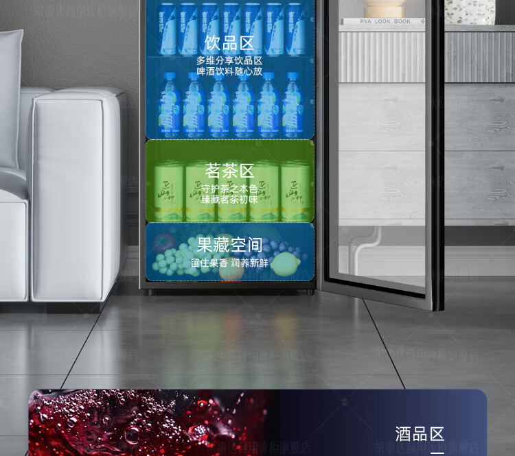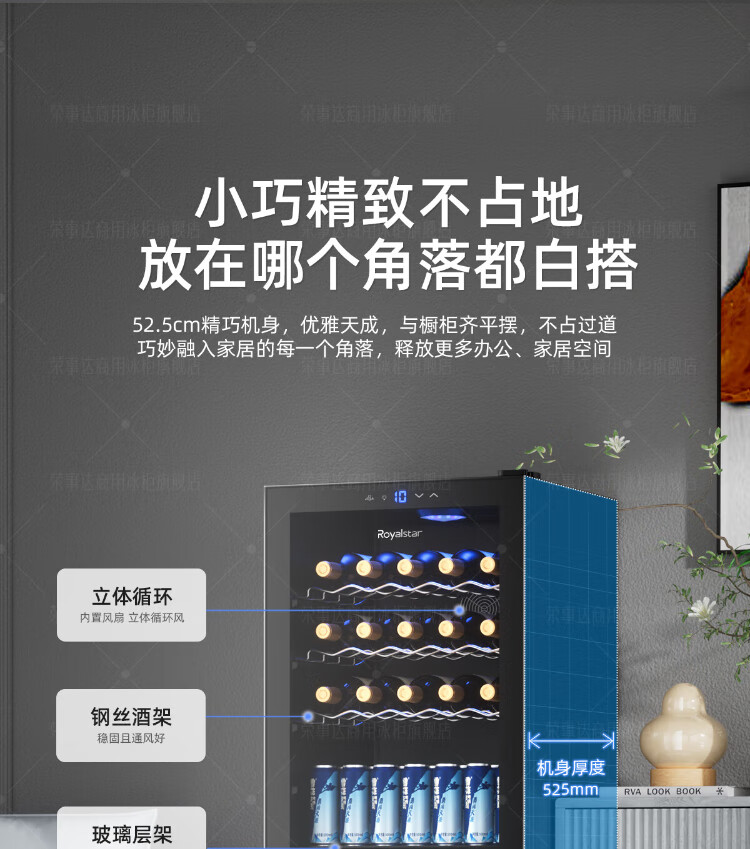 Royalstar Ice Bar Refrigerator Home Living Room Constant Temperature Preservation Refrigerator Tea Beverage Vertical Freezer Office Hotel Sample Freezer Mini Embedded Retro Ice Bar Small Wine Cabinet 75L Refrigeration + White Light First-Class Energy Efficiency