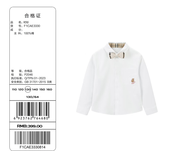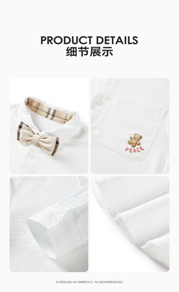 MiniPeace Children's Autumn Boys' Shirt F1CAE3330 White 110 cm
