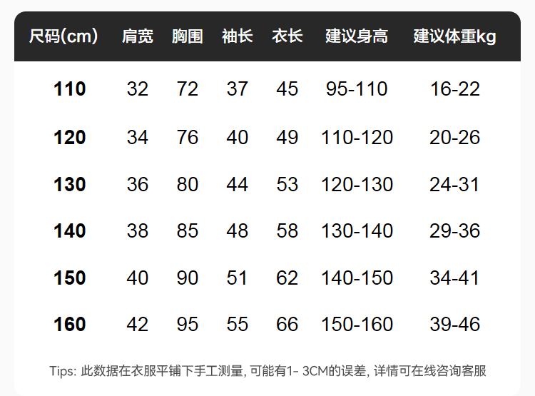 China (cm) 160-165/84-86 165-170 / 88-90 167-172 / 92-96 168-173 / 98-102 170-176 / 106-110