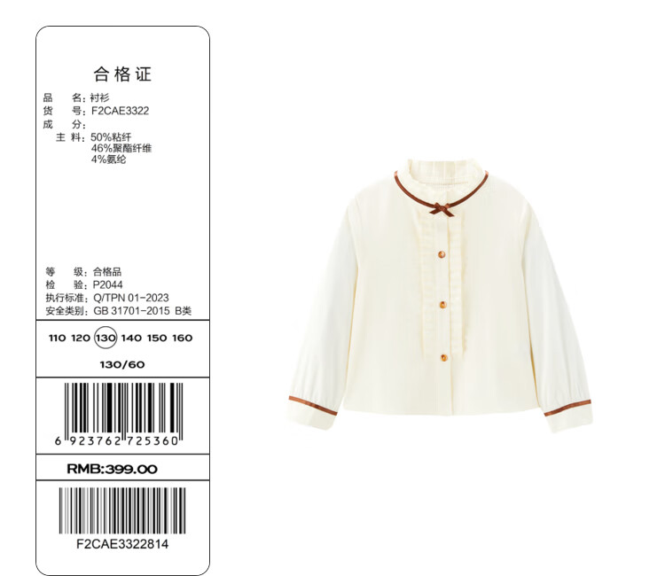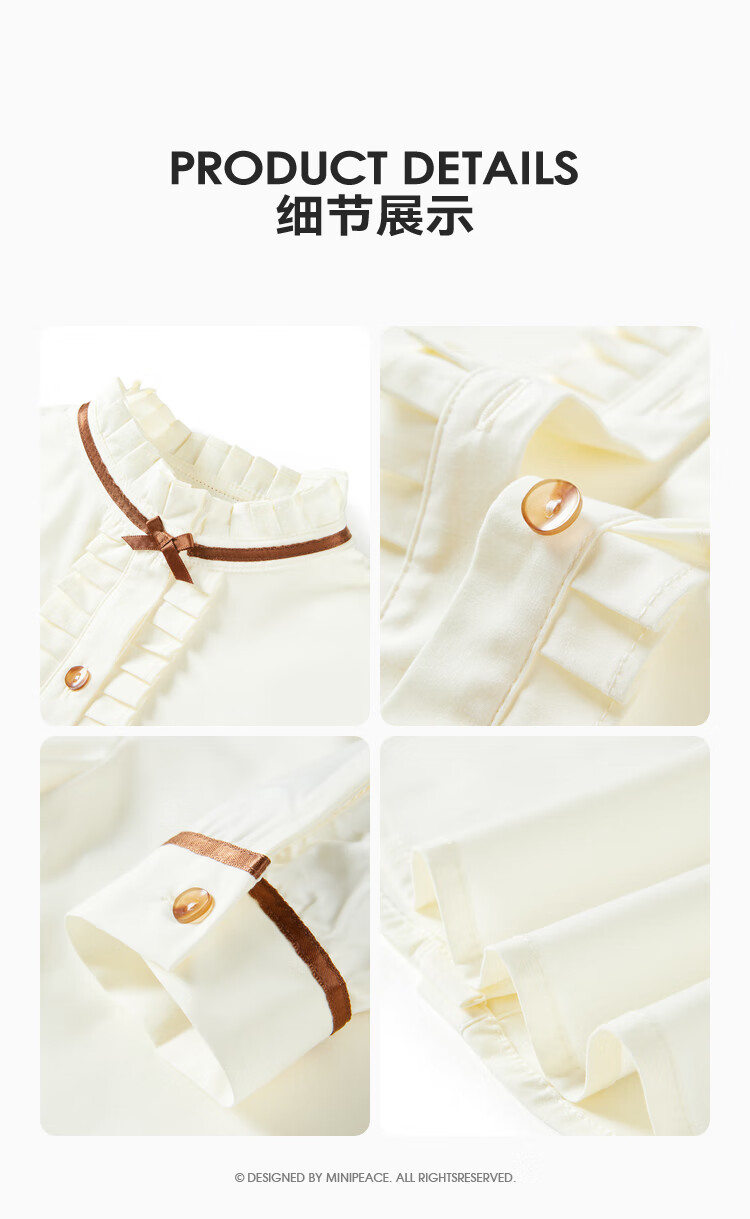 MiniPeace Children's Autumn Girls' Shirt F2CAE3322 White 110 cm
