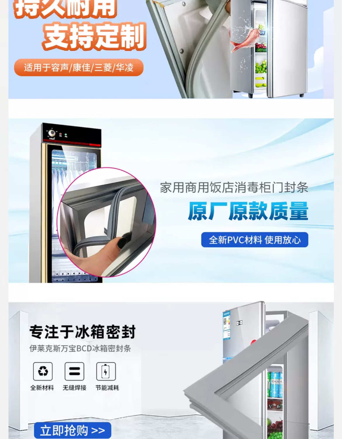 Midea BC BD BCD series refrigerator freezer sealing strips and seals. All models. Sizes can be specified. Leave a message for the model number at the door.