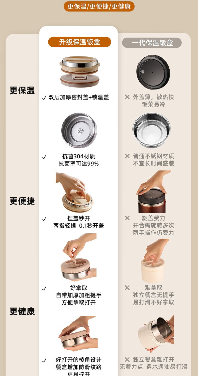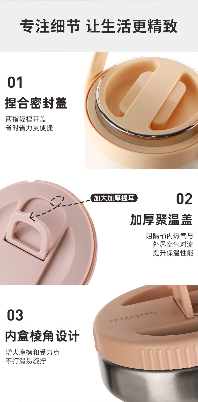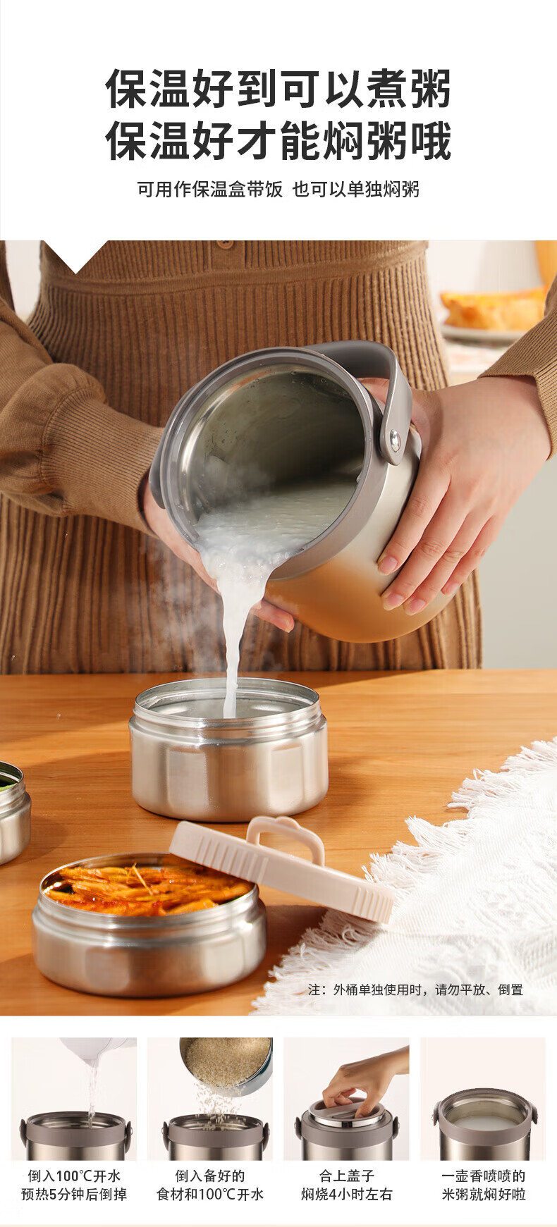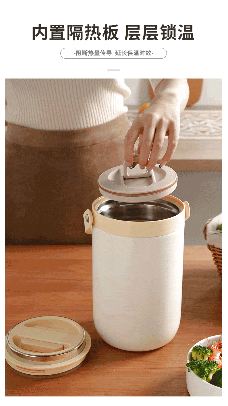 Fuguang insulated lunch box, multi-layered, odor-free, long-lasting insulated lunch box, large capacity, portable lunch box for office workers and students, 1800ml gray antibacterial material, tableware + food bag