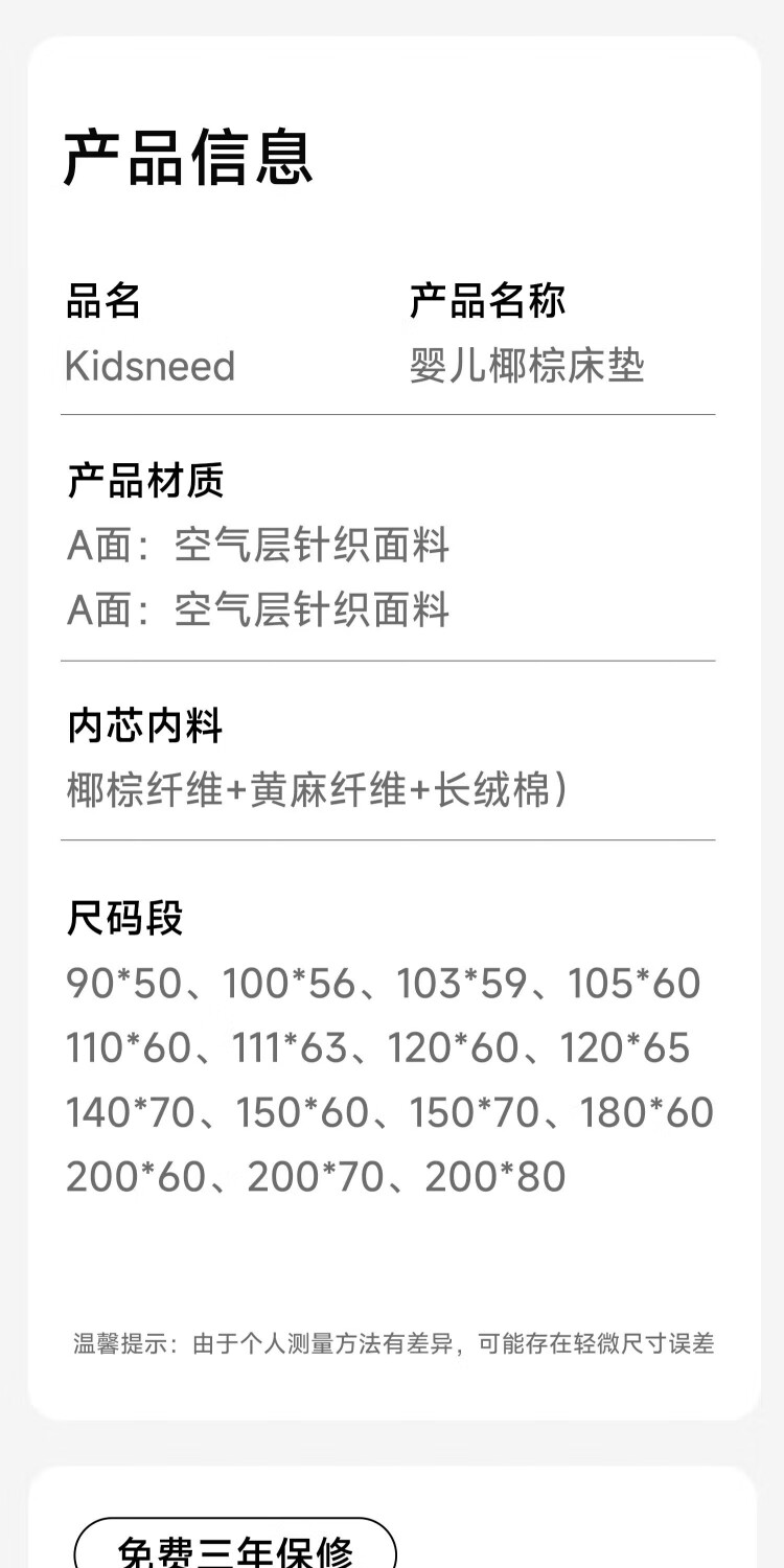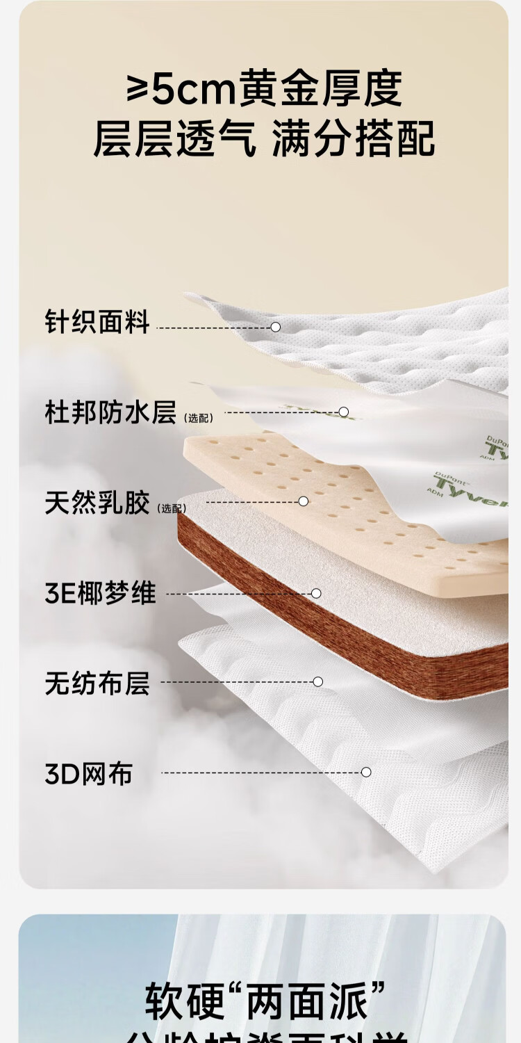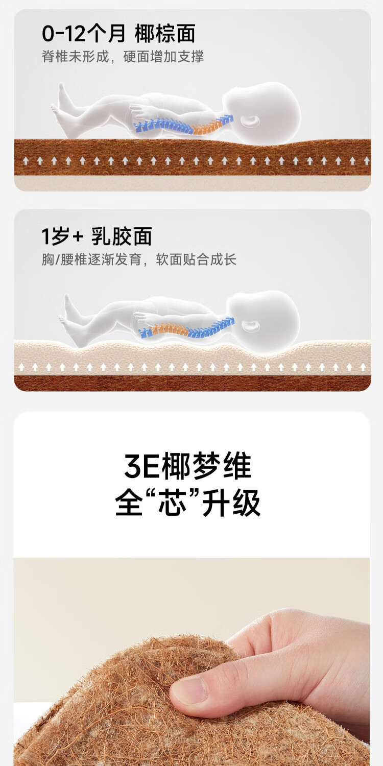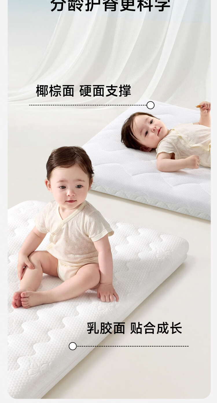 Kosdeni crib mattress newborn mattress children baby coconut palm mattress latex hard mattress maternal and infant grade customization classic model soft and hard double-sided 0.9 meters * 0.5 meters