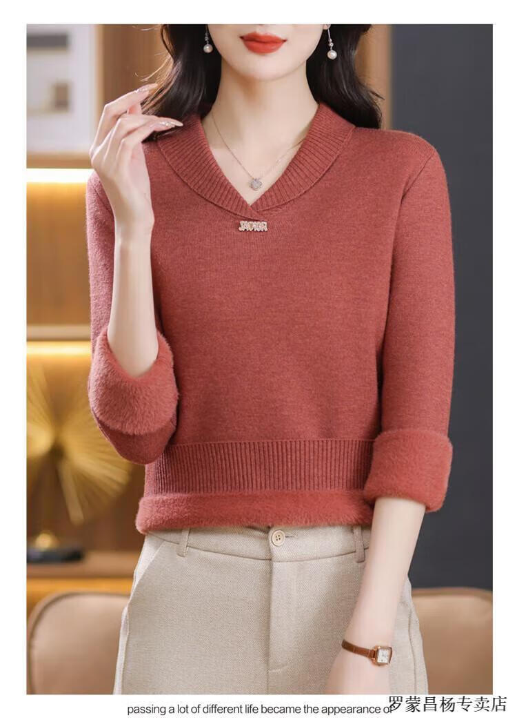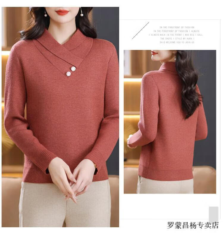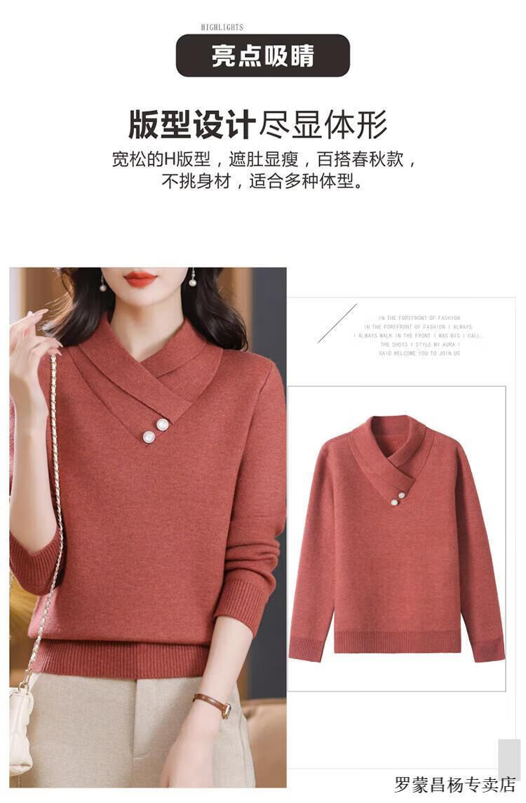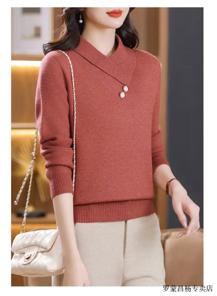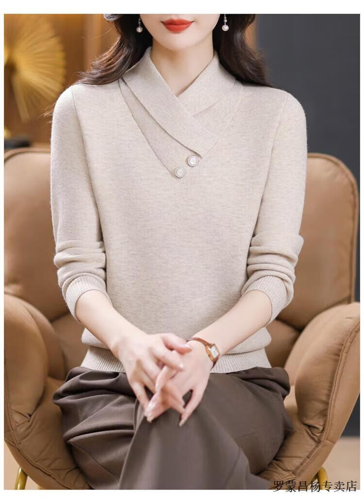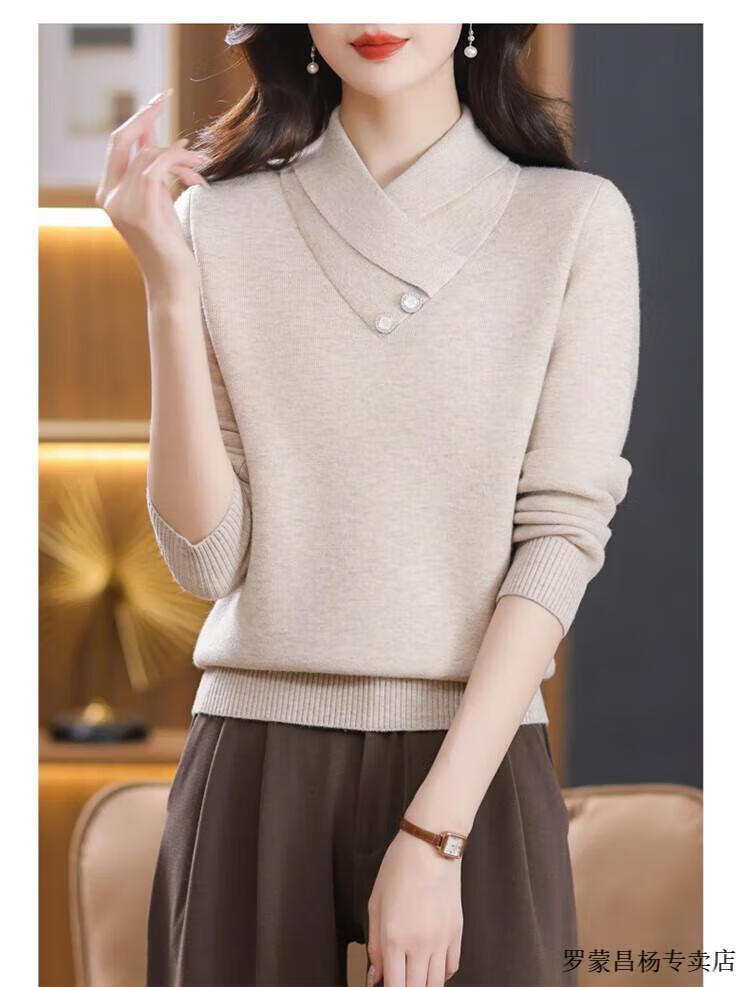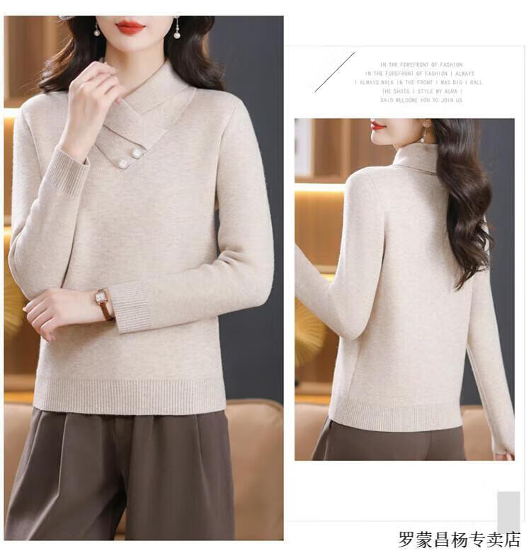 Lomon woolen sweater for young mothers in autumn and winter new style thickened sweater for women, fashionable, loose and slim, warm, apricot color 2XL (recommended 120-130Jin Jin equals 0.5kg)
