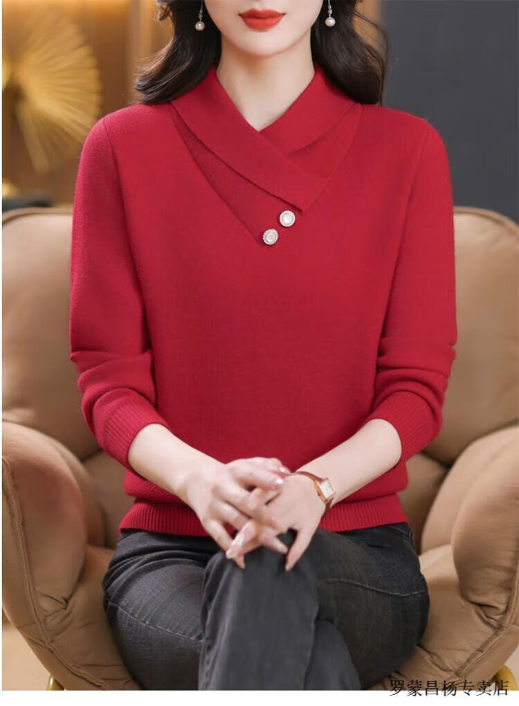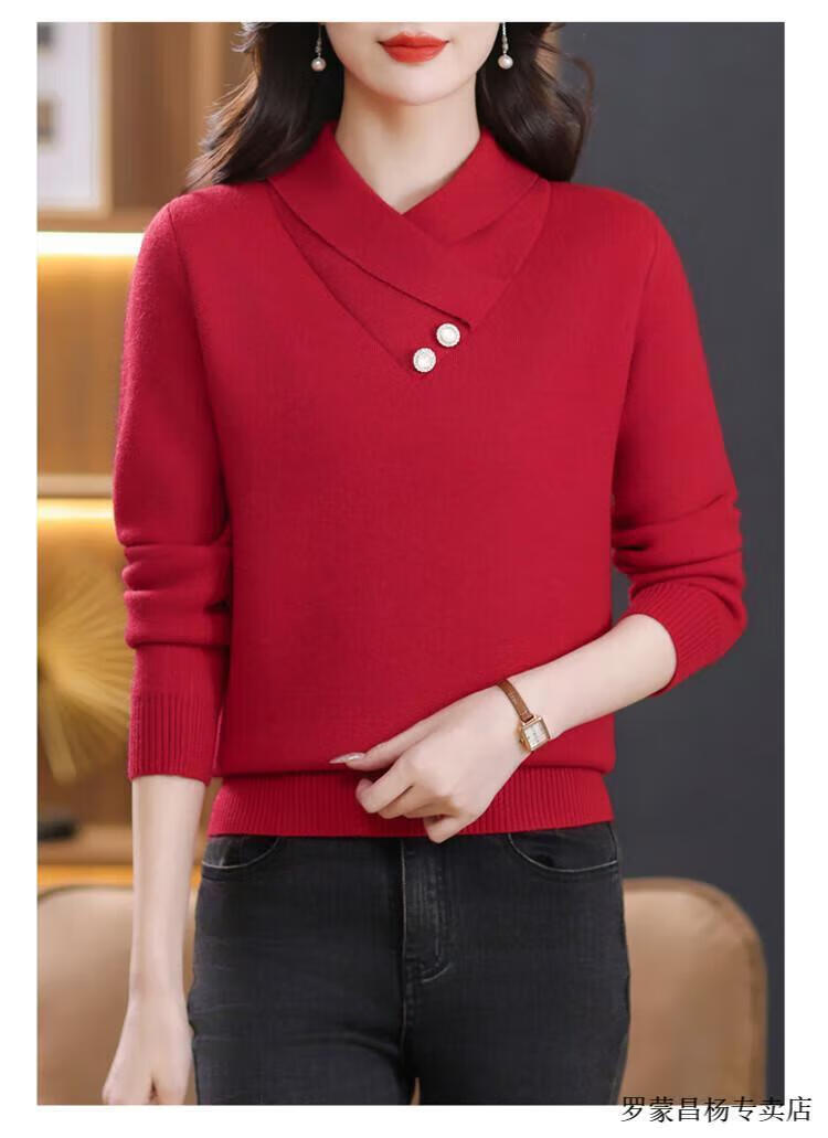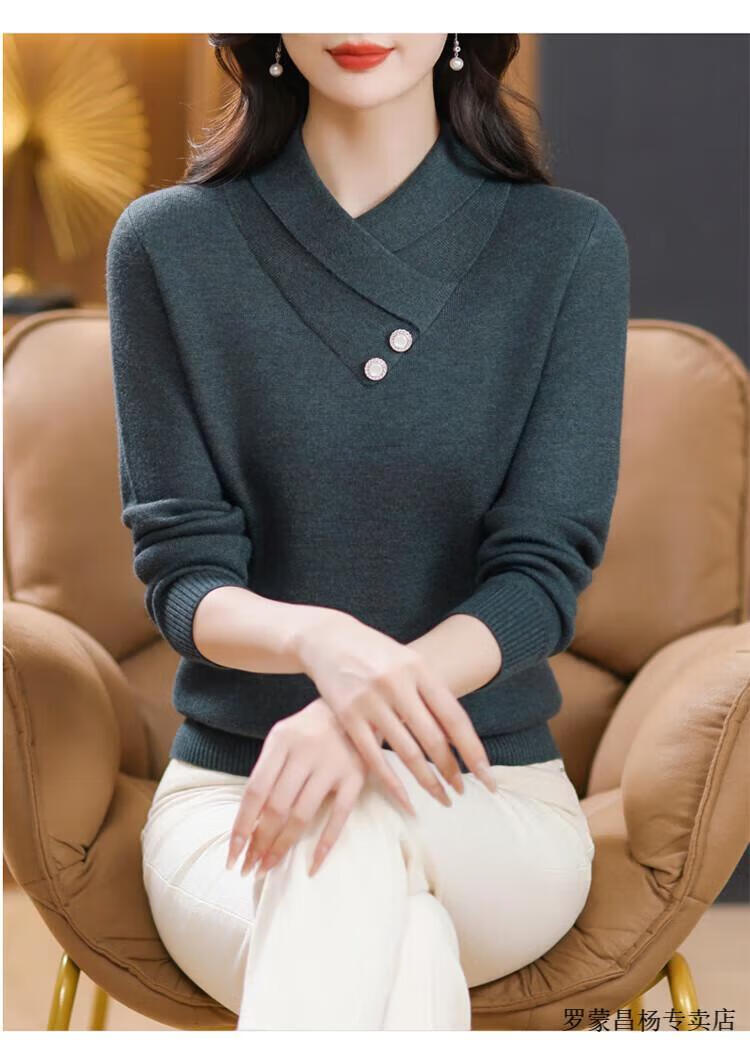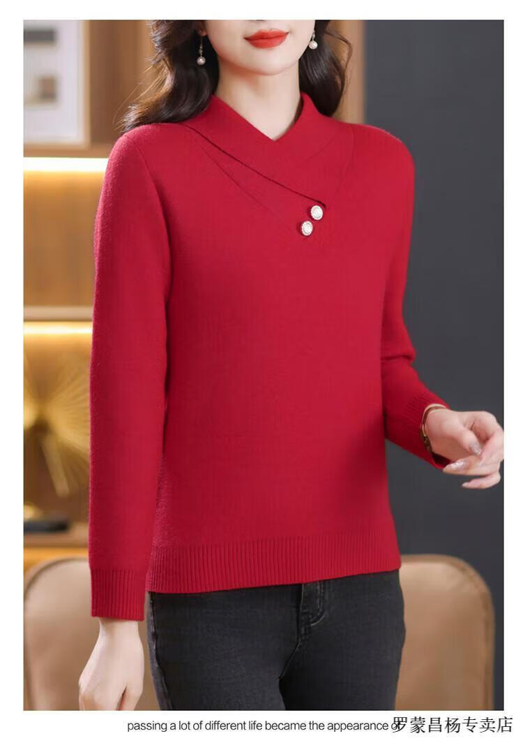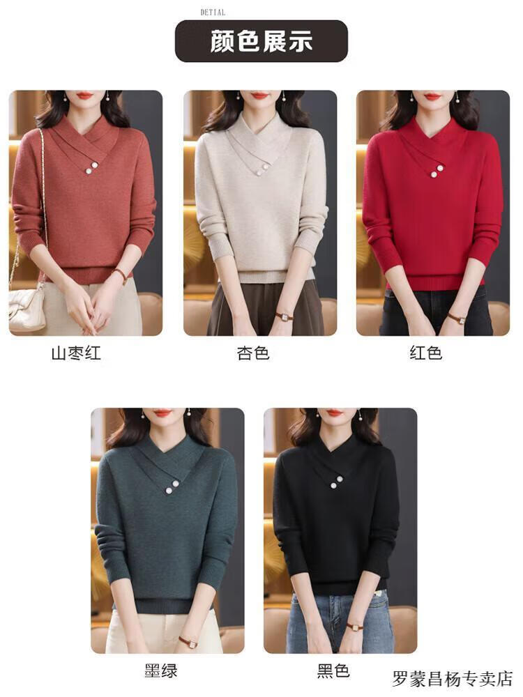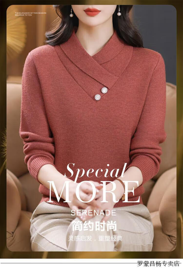 Lomon woolen sweater for young mothers in autumn and winter new style thickened sweater for women, fashionable, loose and slim, warm, apricot color 2XL (recommended 120-130Jin Jin equals 0.5kg)