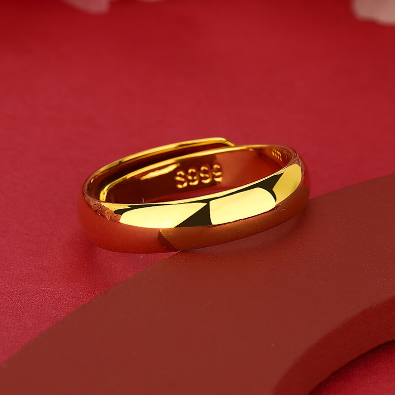 Mengfusheng gold ring plain ring glossy 24k pure gold wedding gold jewelry simple new 999 pure gold-plated silver couple ring couple style glossy live wedding ring