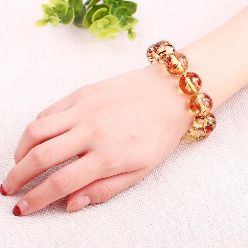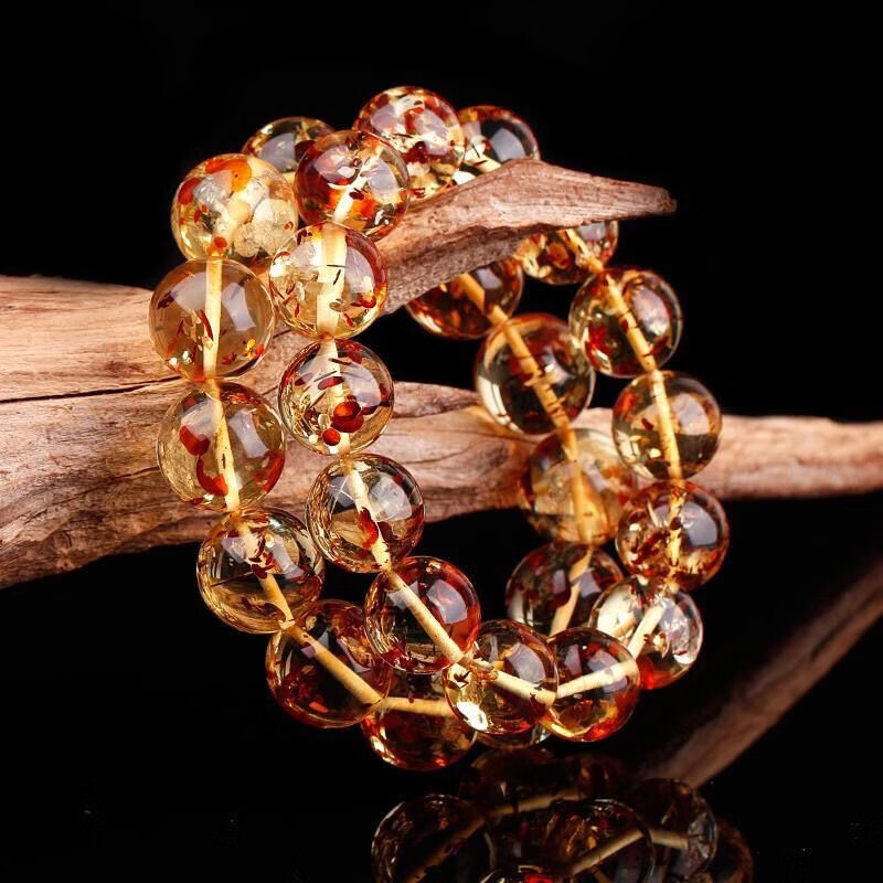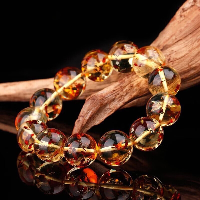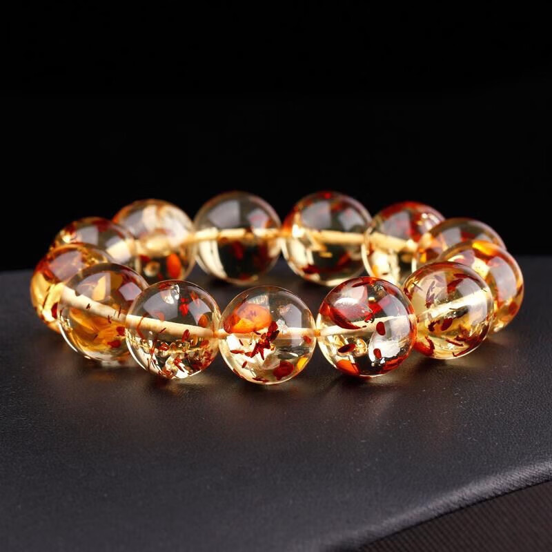 Core fragrance amber beeswax flower amber bracelet leaf amber round bead bracelet single circle men's and women's hand jewelry 8mm flower amber beads a string free