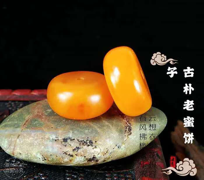 Core fragrance natural raw mineral old beeswax pancake bracelet with bodhi and bead accessories, diameter 16mm, thickness 8mm, single piece