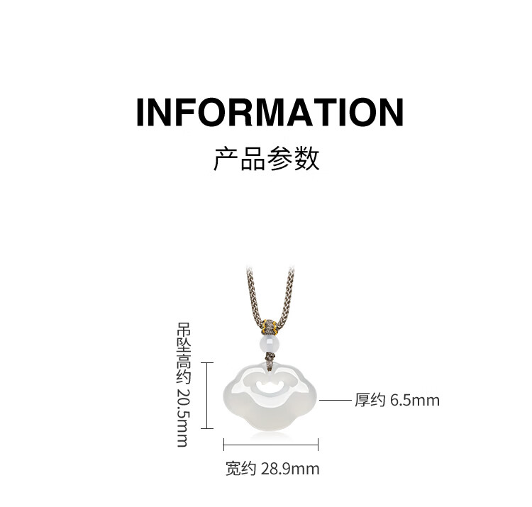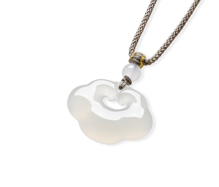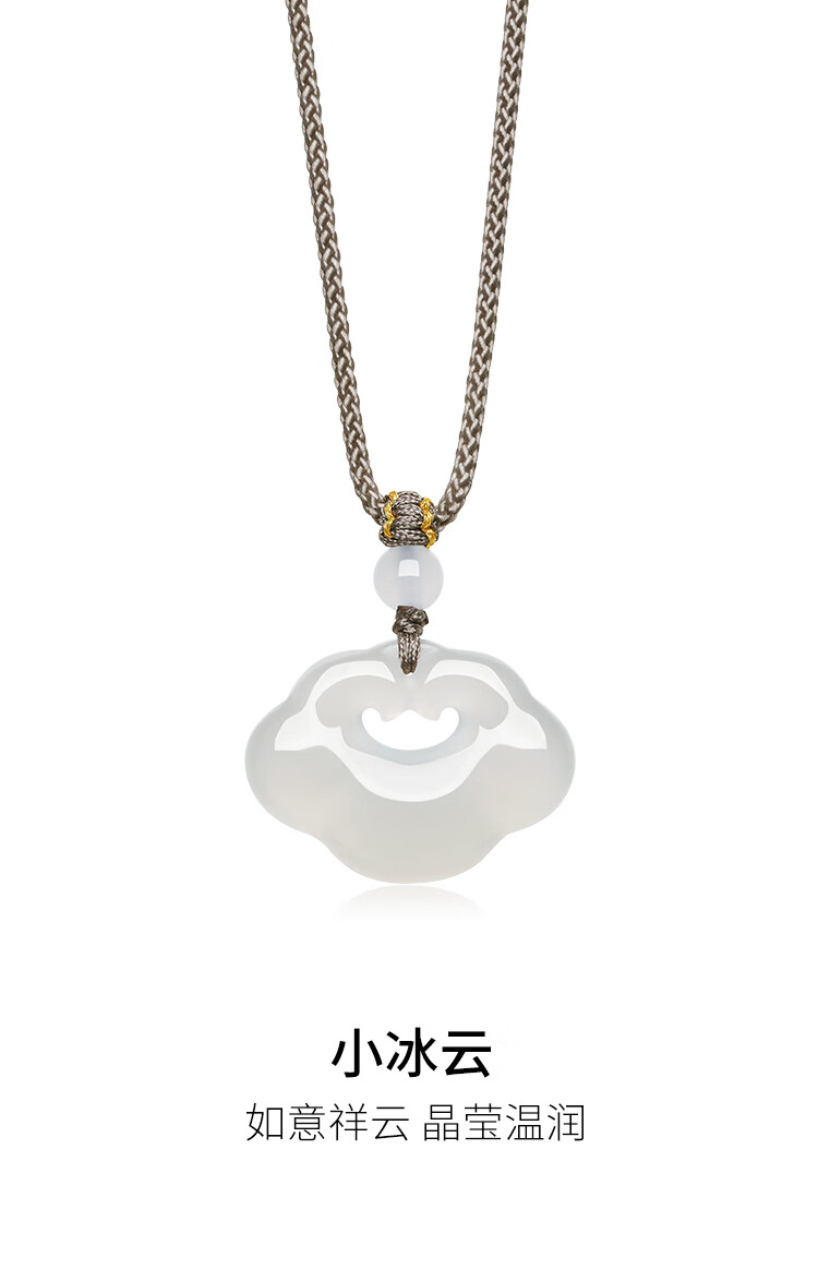 Saturday Blessing (ZLF) White Moonlight Chalcedony Necklace for Men and Women Small Bingyun Xiangyun Ruyi Lock Pendant for Birthday Gift Xiangyun Ruyi Lock Necklace