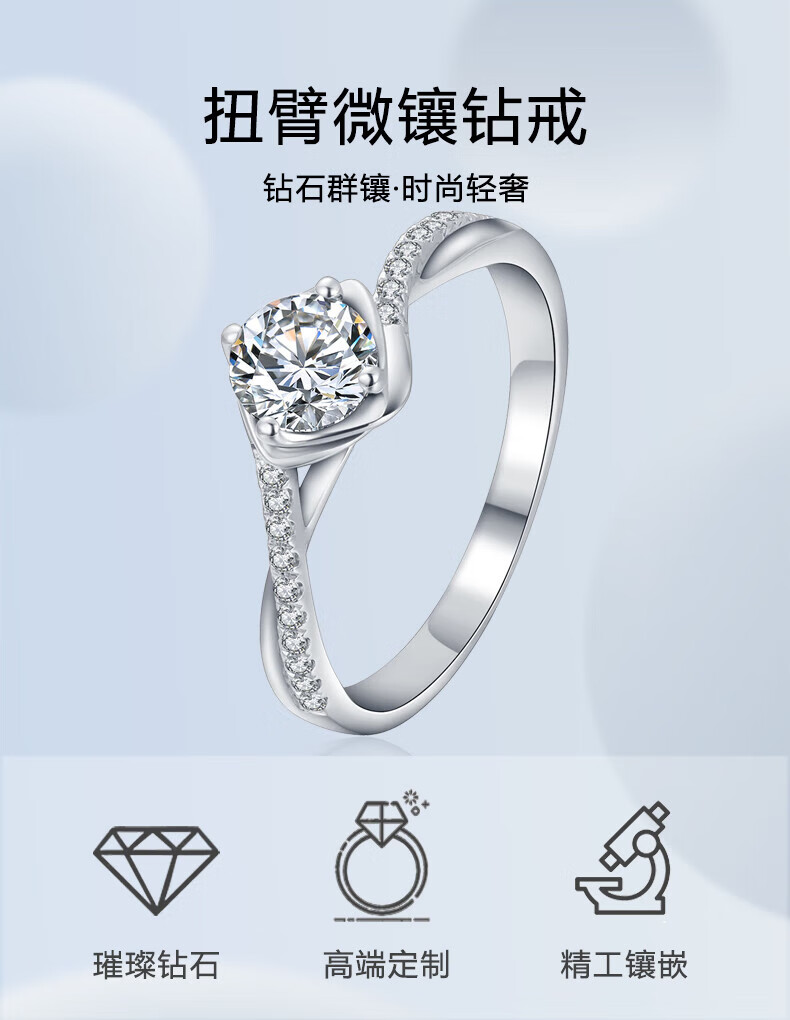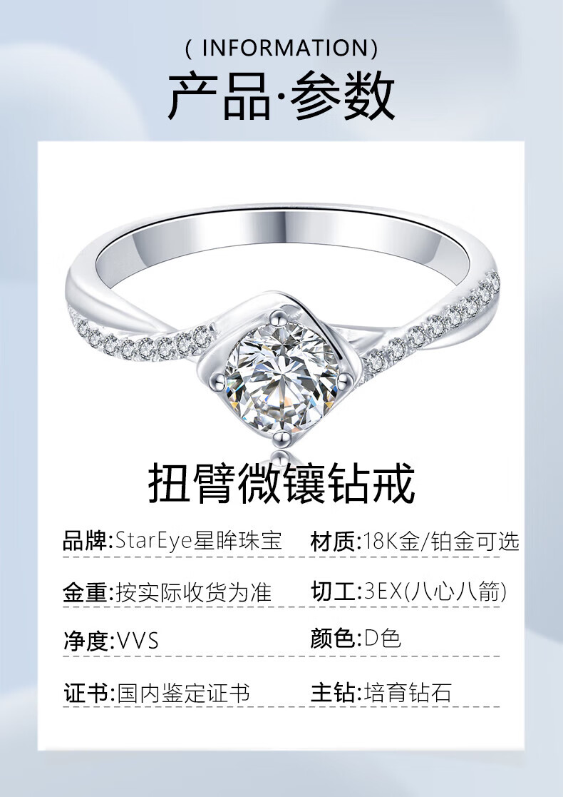 AVHE platinum ring micro-set twisted arm diamond ring laboratory-grown diamond 1 carat custom wedding gift Chinese Valentine's Day jewelry 1 carat D color cultured diamond-platinum ring