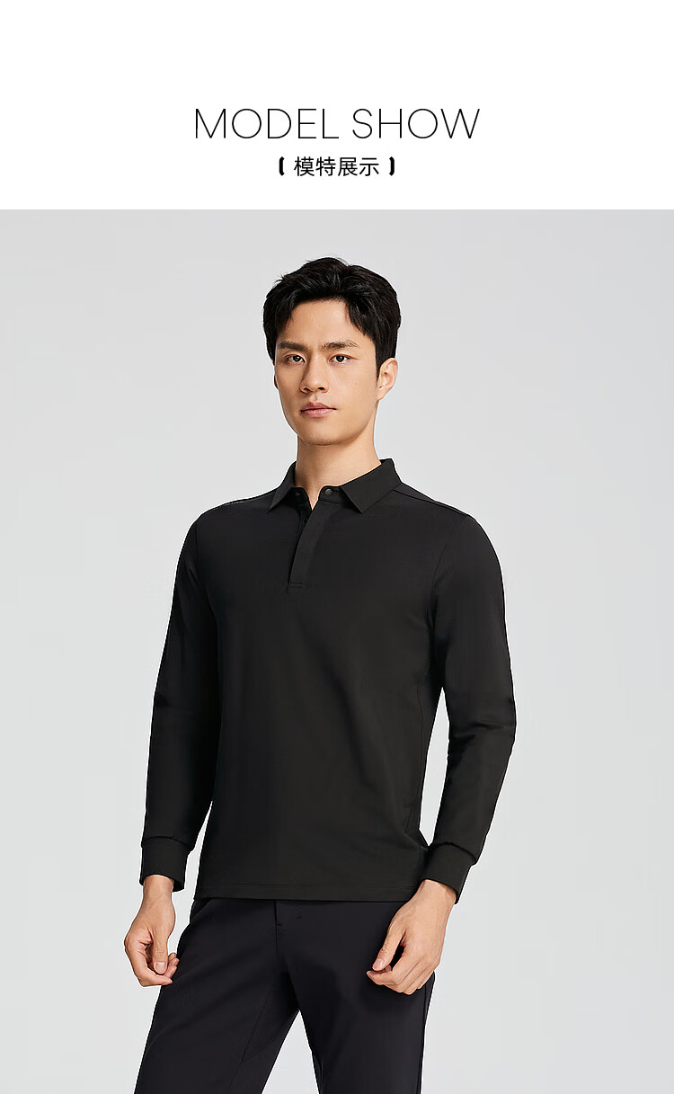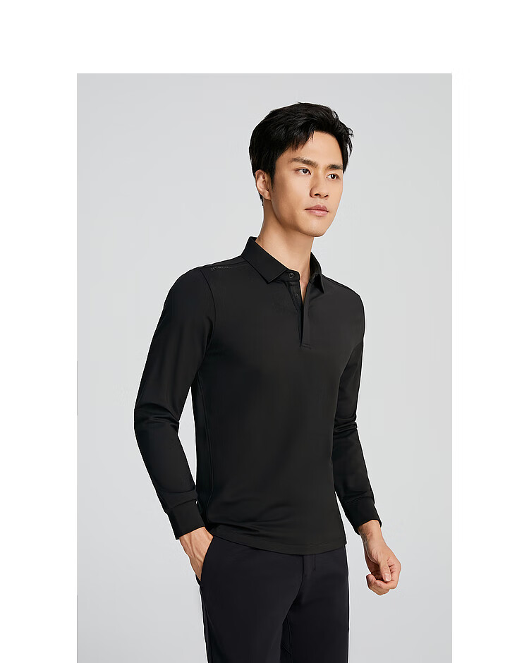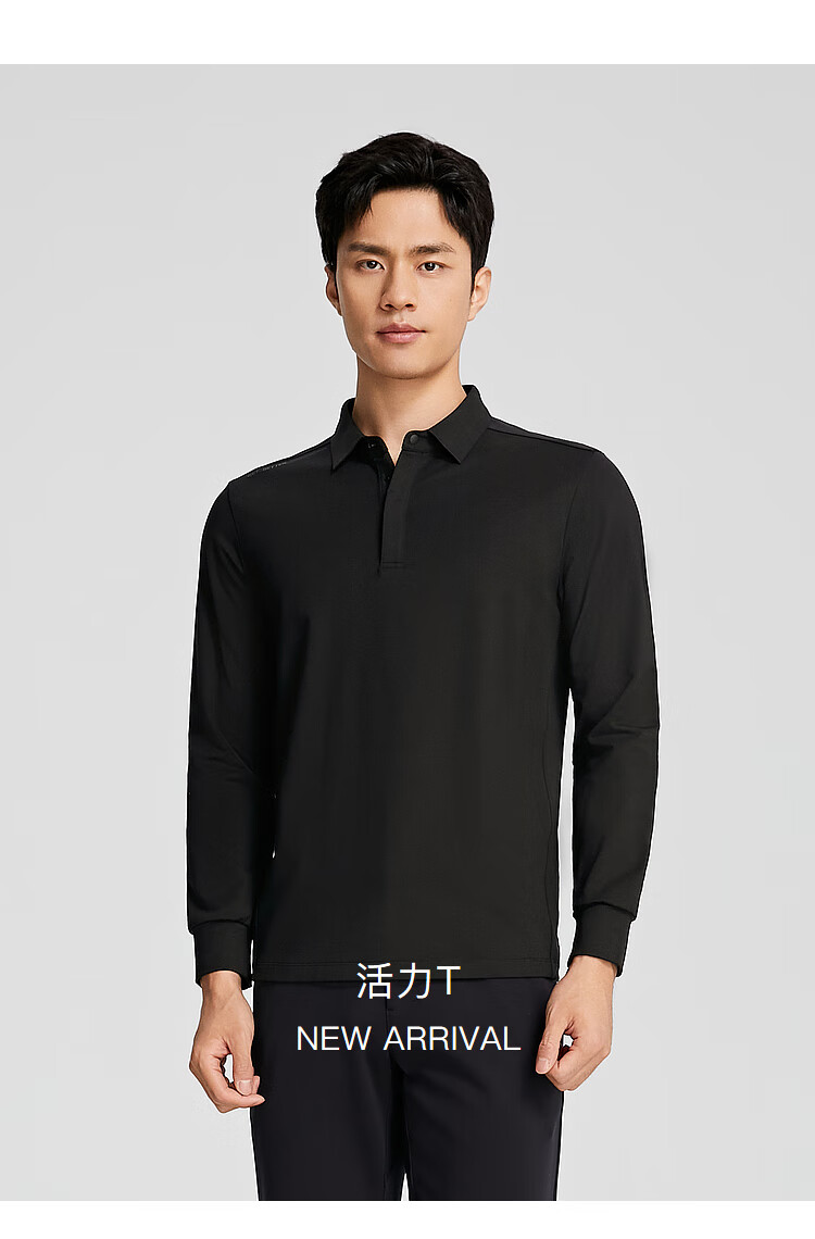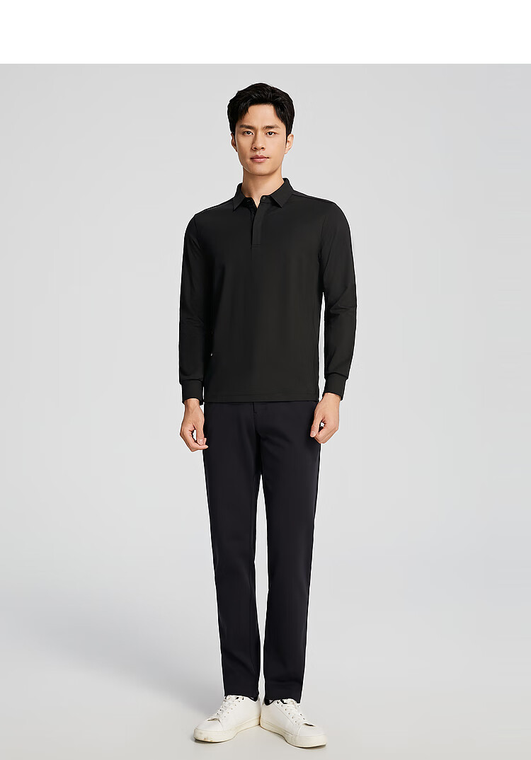 YOUNGOR POLO shirt men's autumn long-sleeved POLO shirt cotton blend material mall same style black YLPC535102ACA L