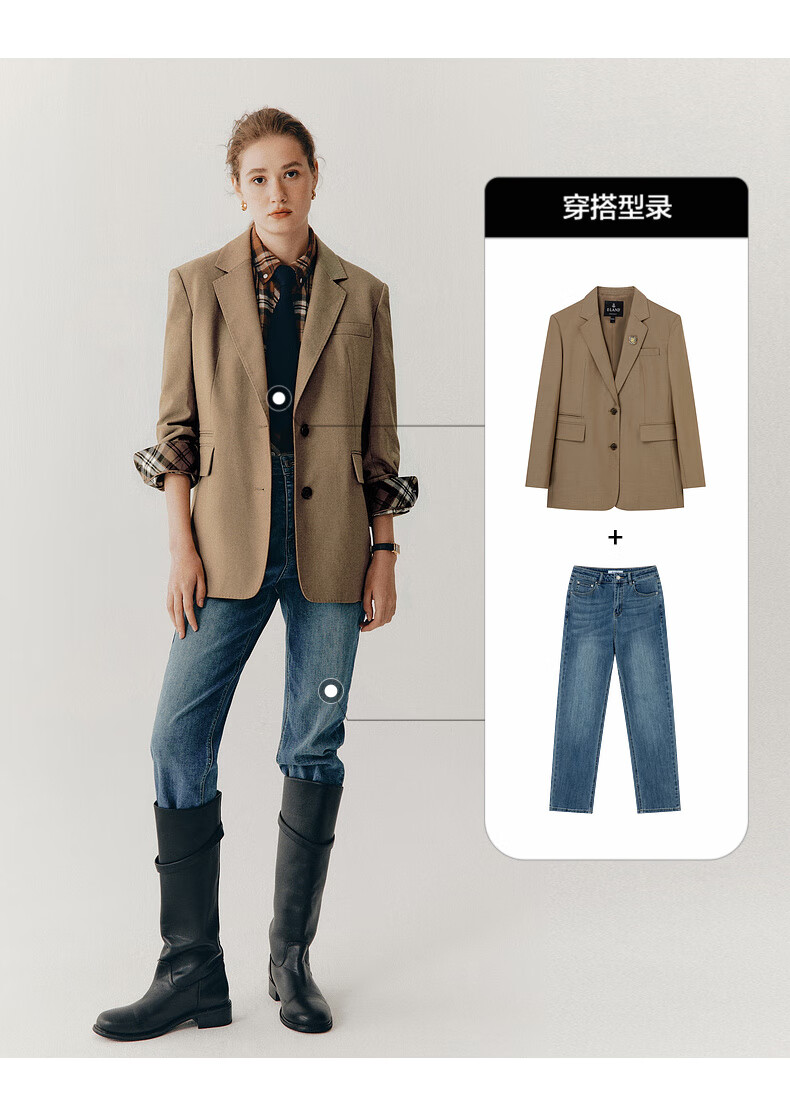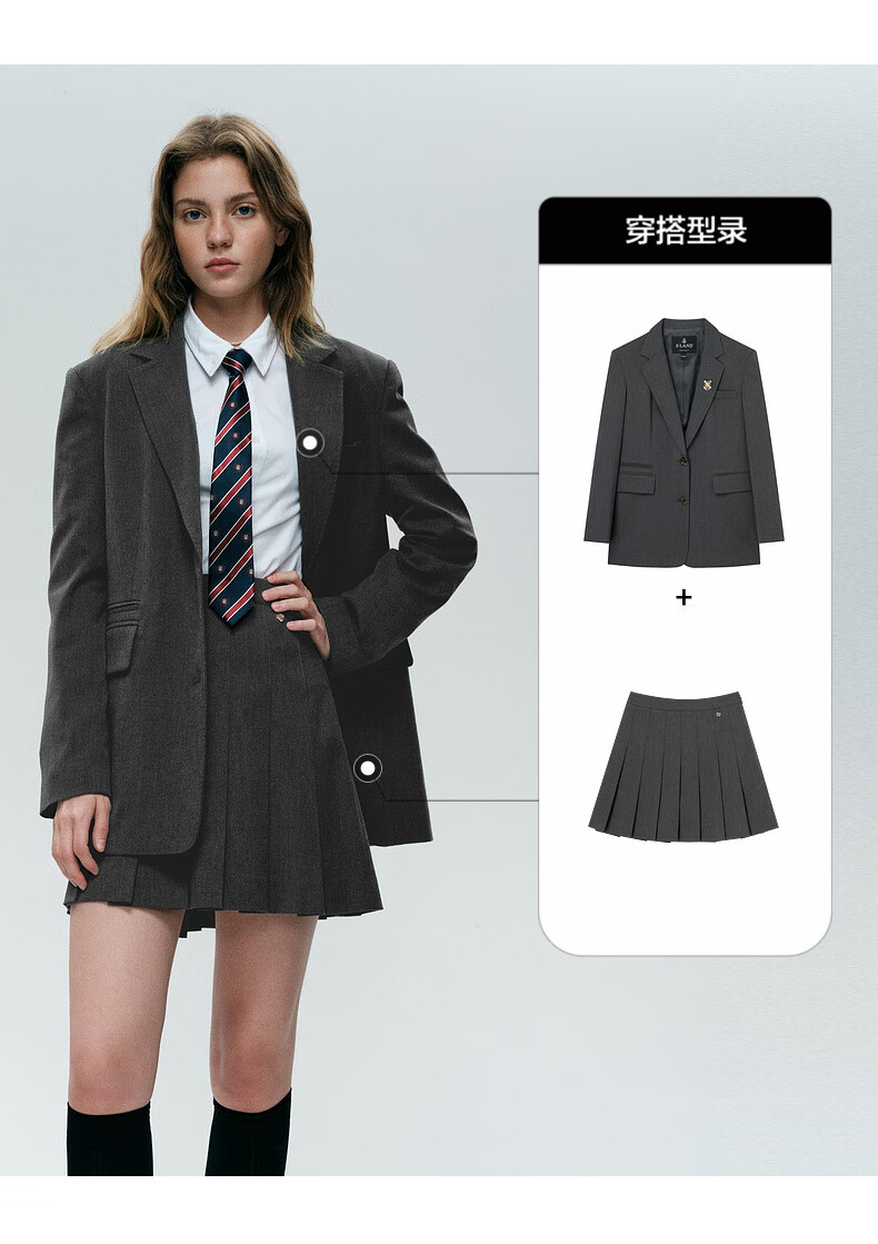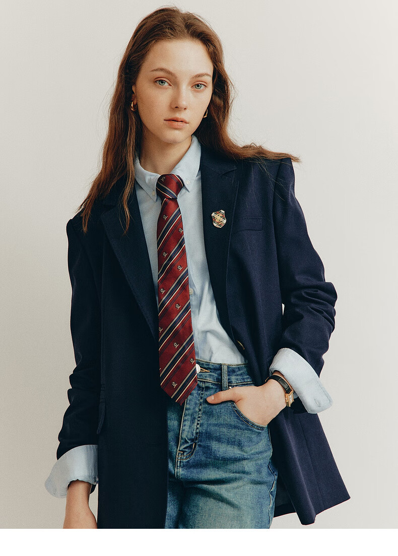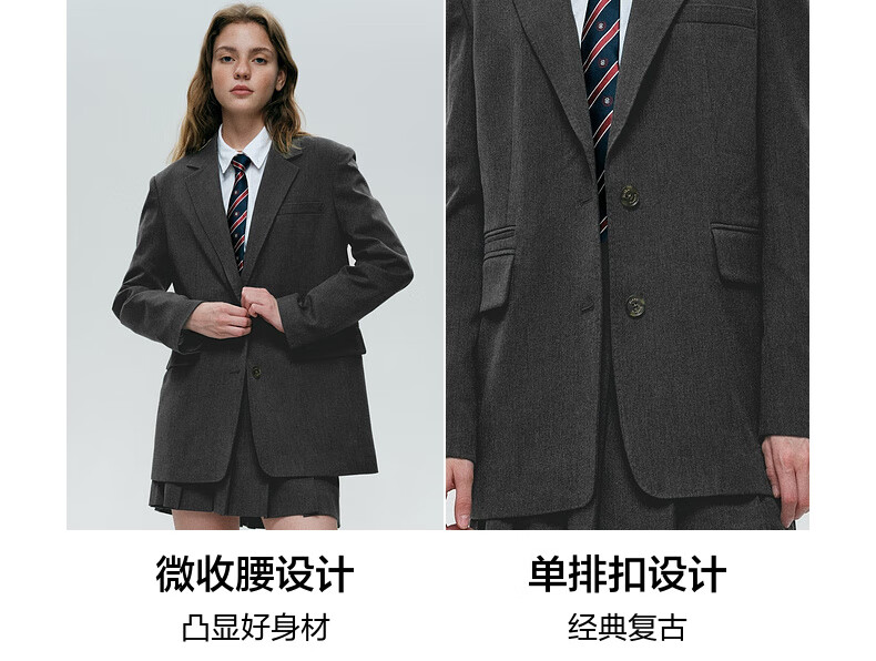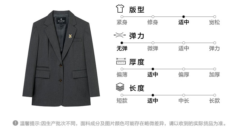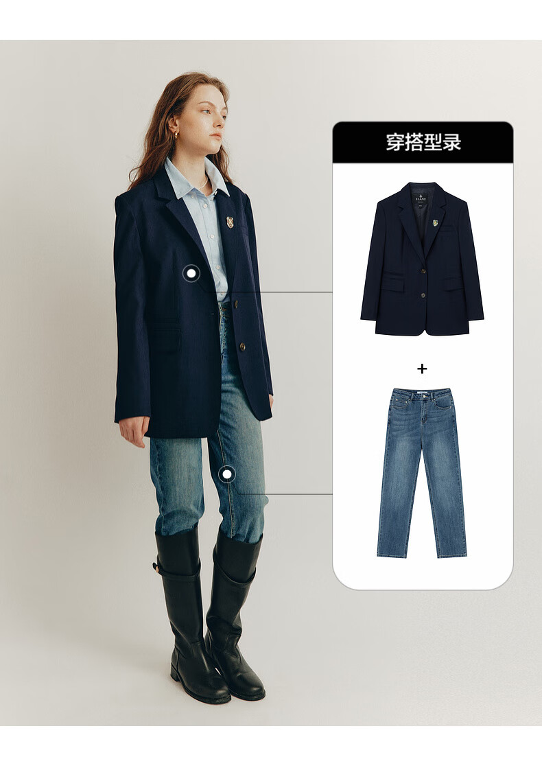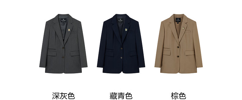 ELAND衣恋优雅西装女羊毛混纺面料格雷系翻驳领气质外套秋秋款 藏青色(59)Navy S 160