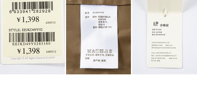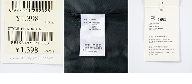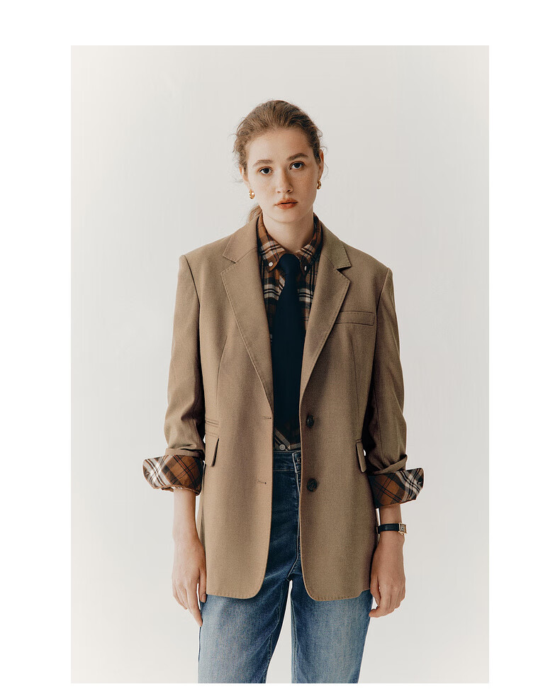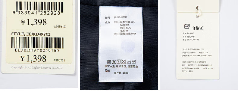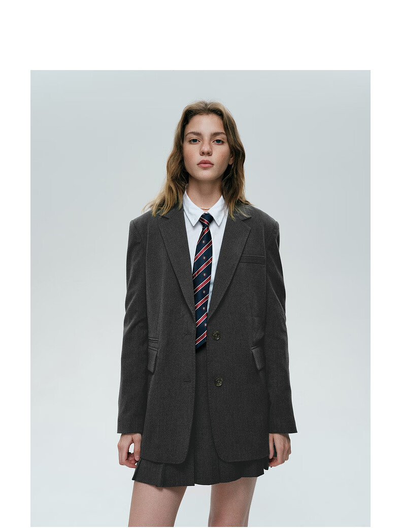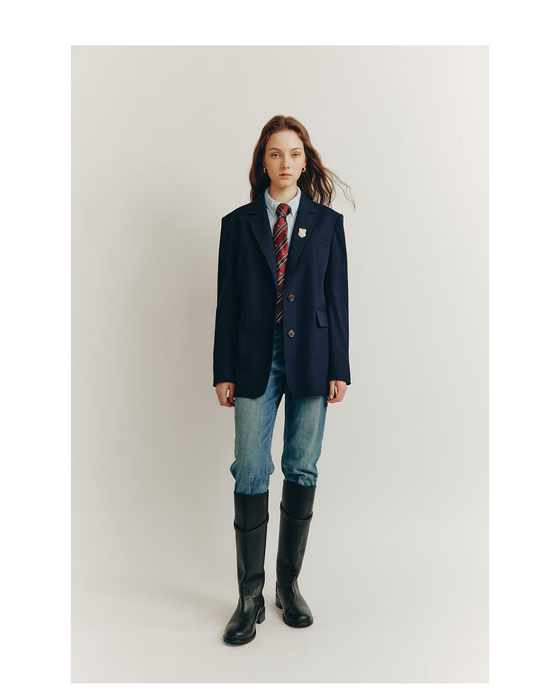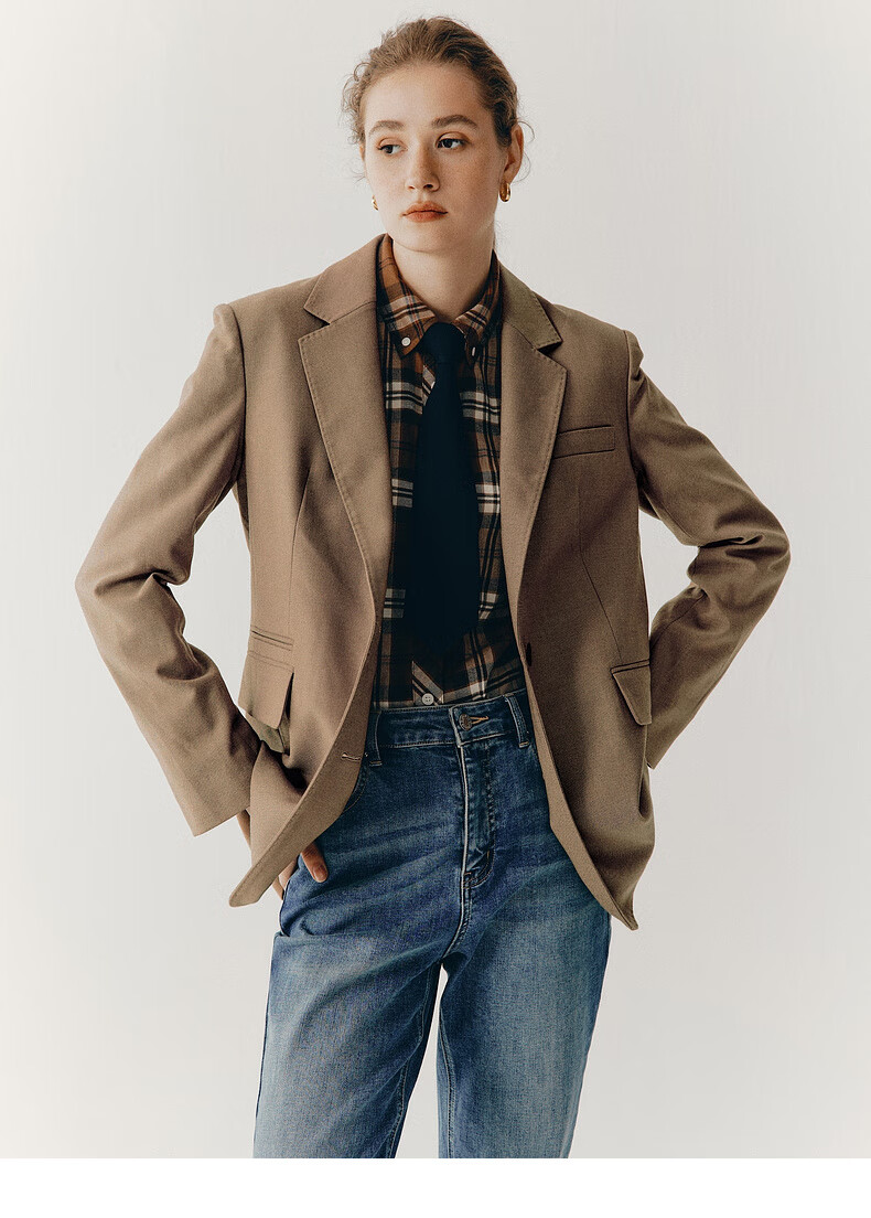 ELAND衣恋优雅西装女羊毛混纺面料格雷系翻驳领气质外套秋秋款 藏青色(59)Navy S 160