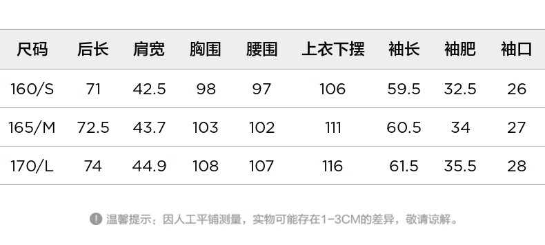 China (cm) 160-165/84-86 165-170 / 88-90 167-172 / 92-96 168-173 / 98-102 170-176 / 106-110