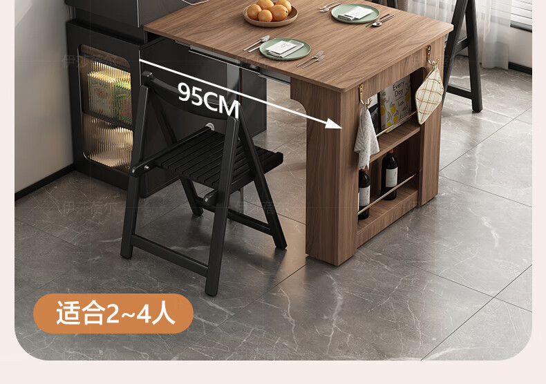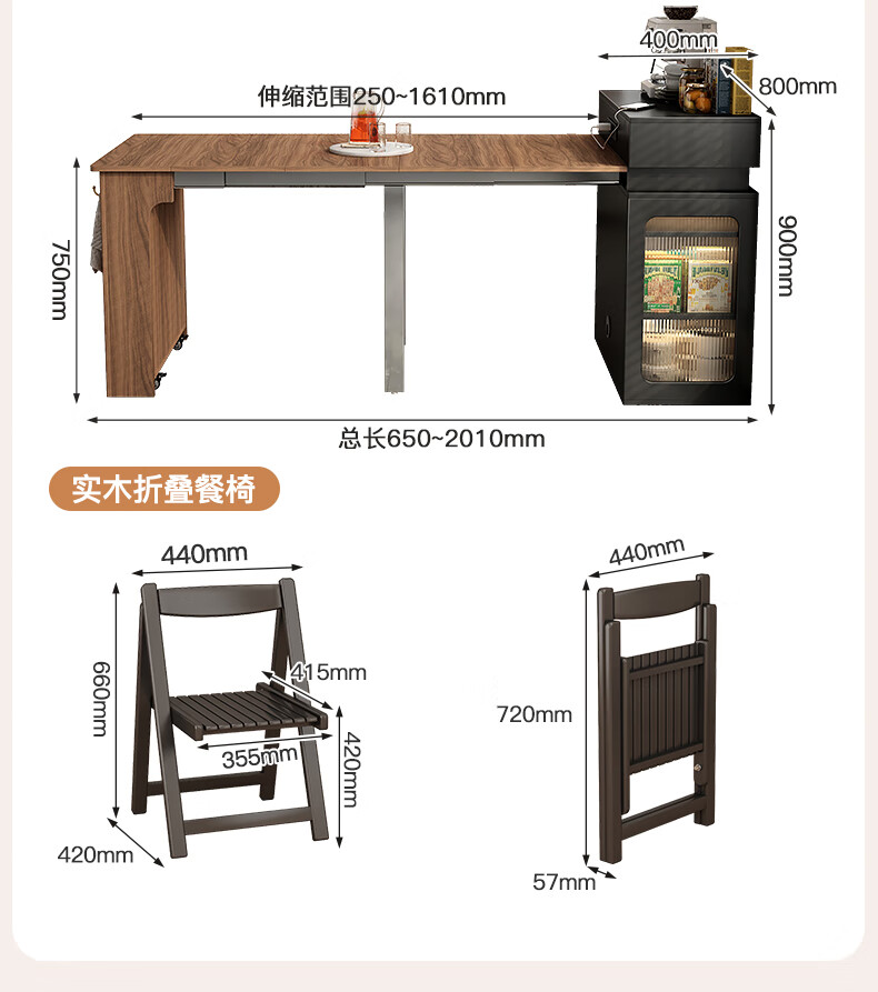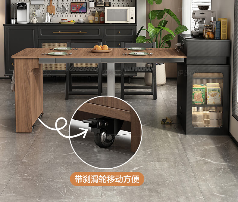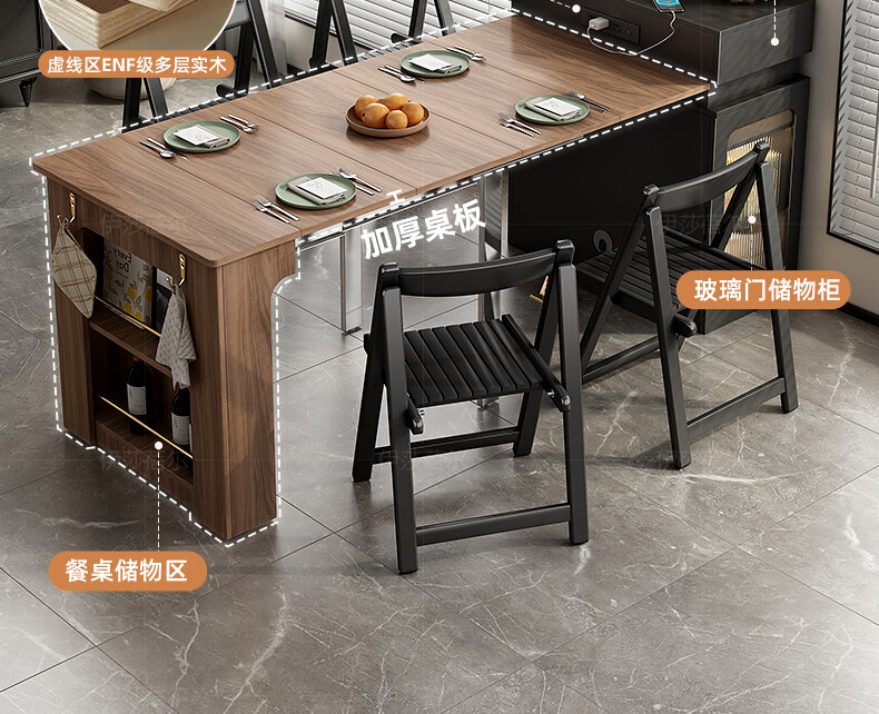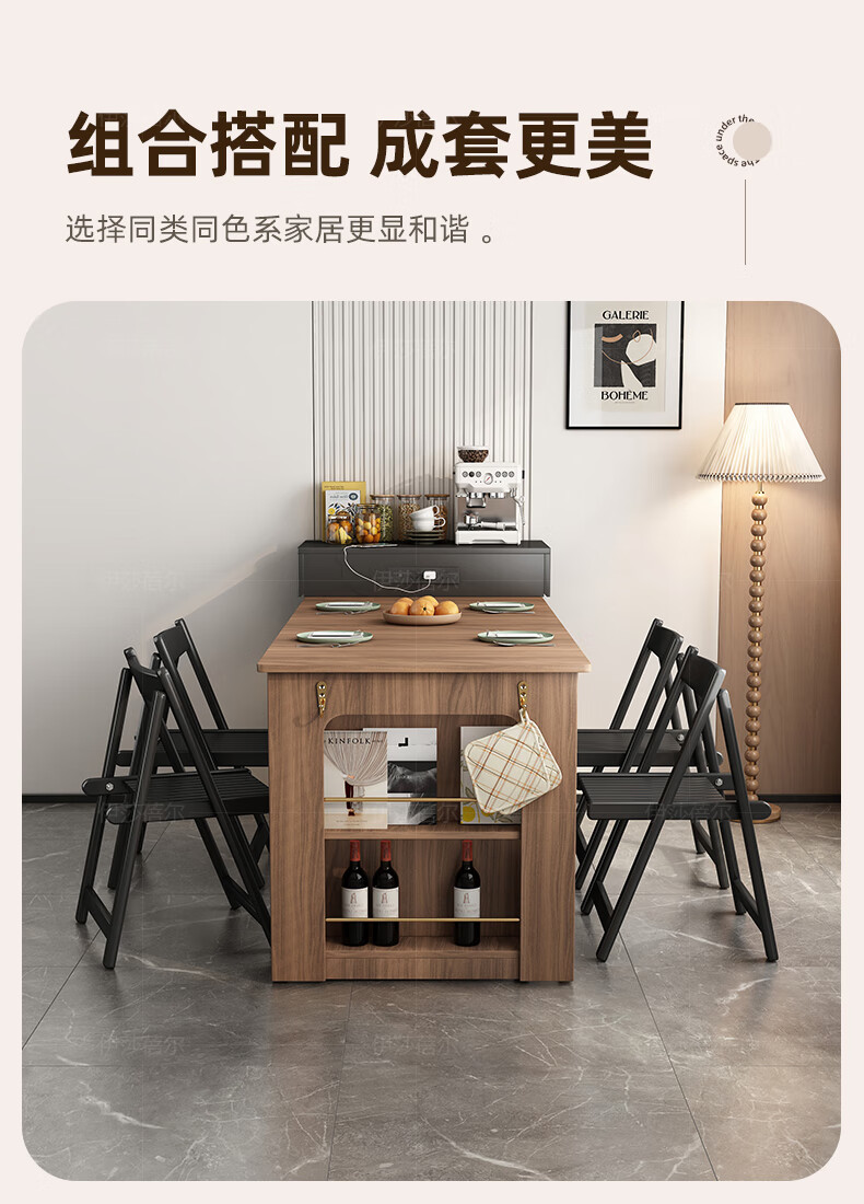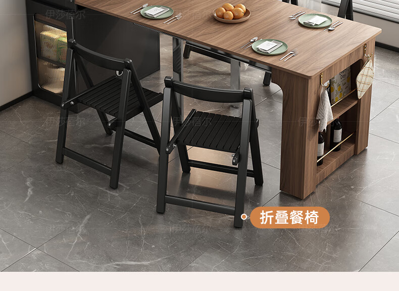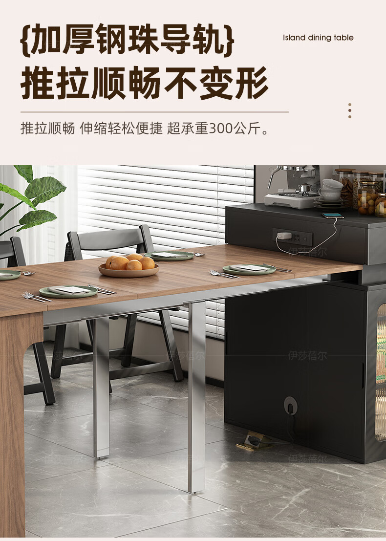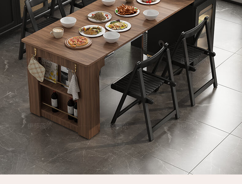 Isabel modern simple island dining table integrated household retractable small apartment 2024 new folding dining table and chair combination 0.65~2.05 meters - solid wood - black - with bull socket