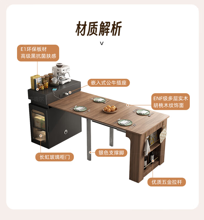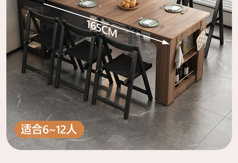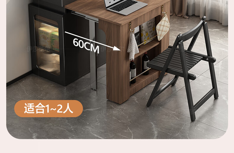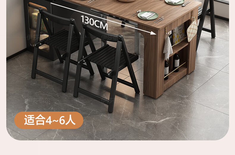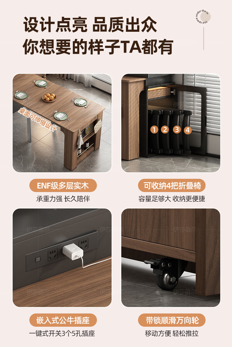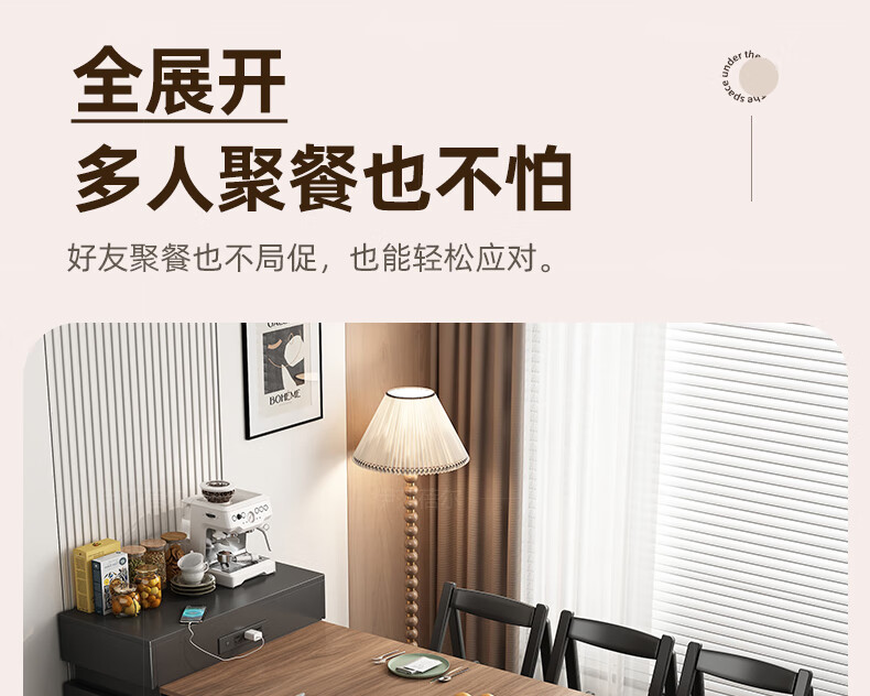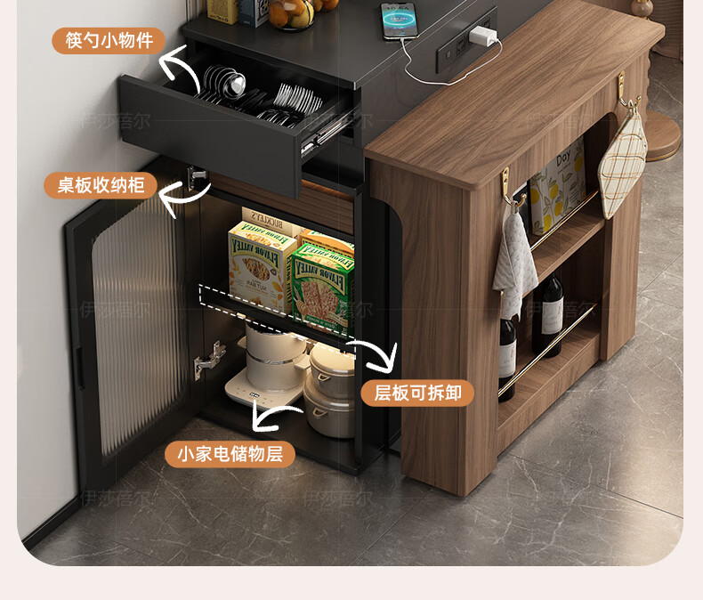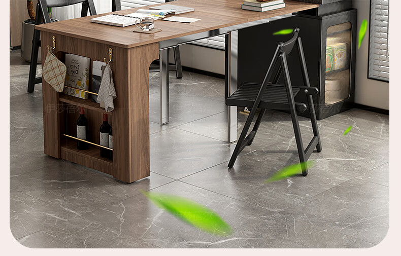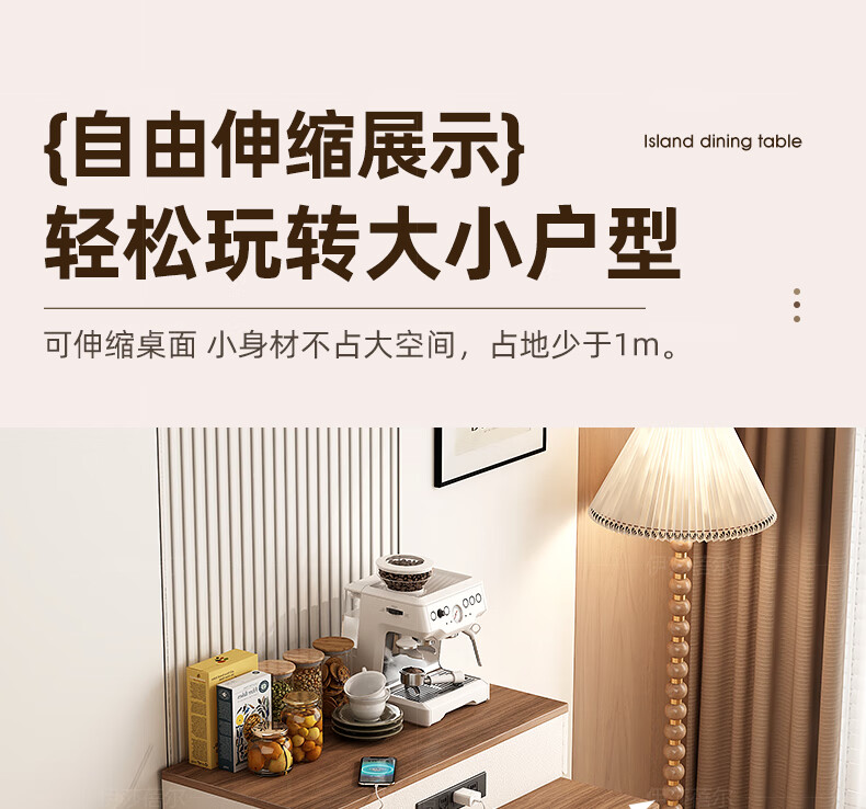 Isabel modern simple island dining table integrated household retractable small apartment 2024 new folding dining table and chair combination 0.65~2.05 meters - solid wood - black - with bull socket