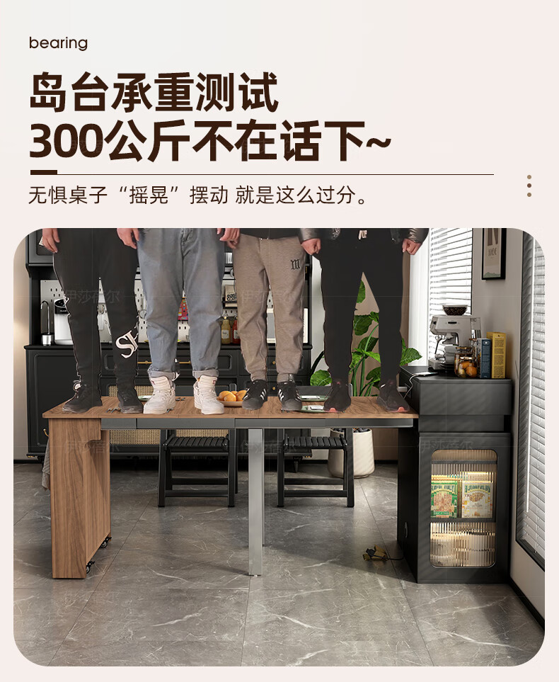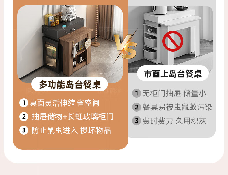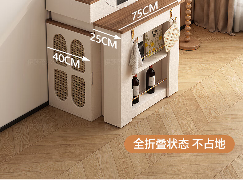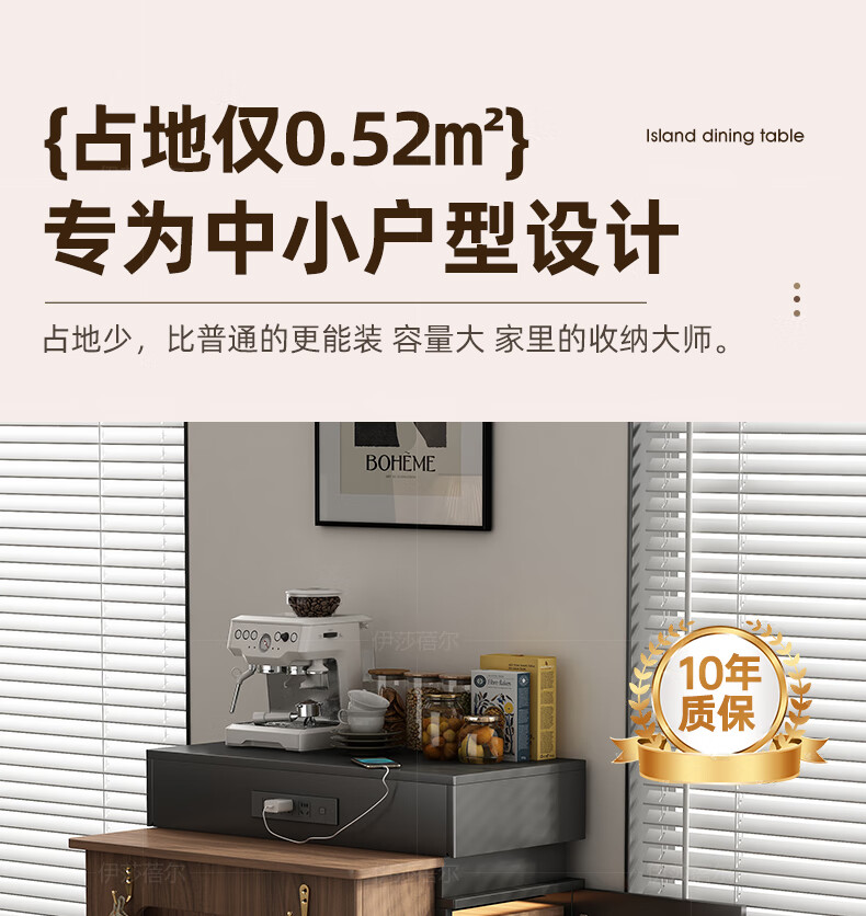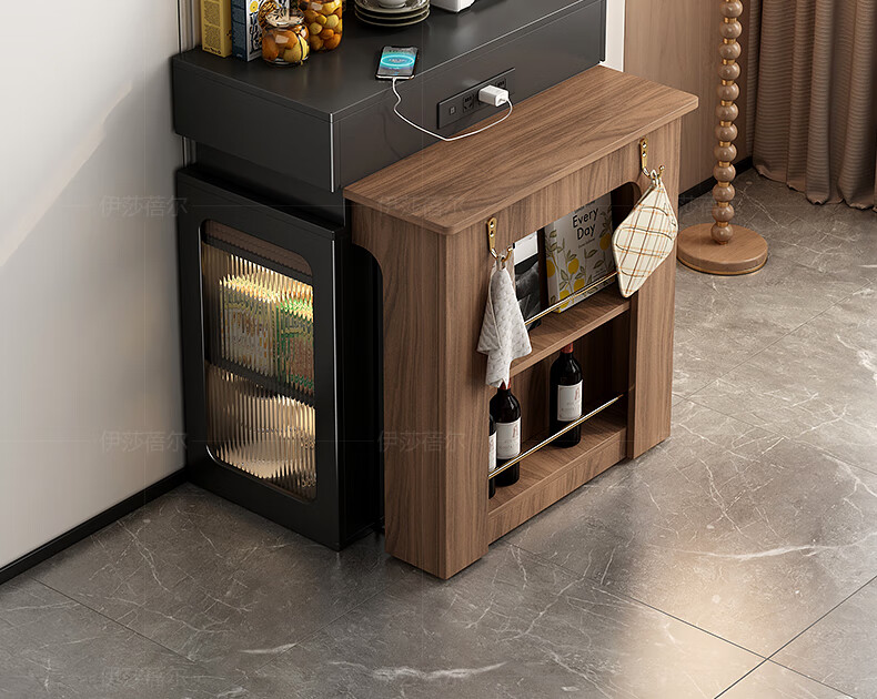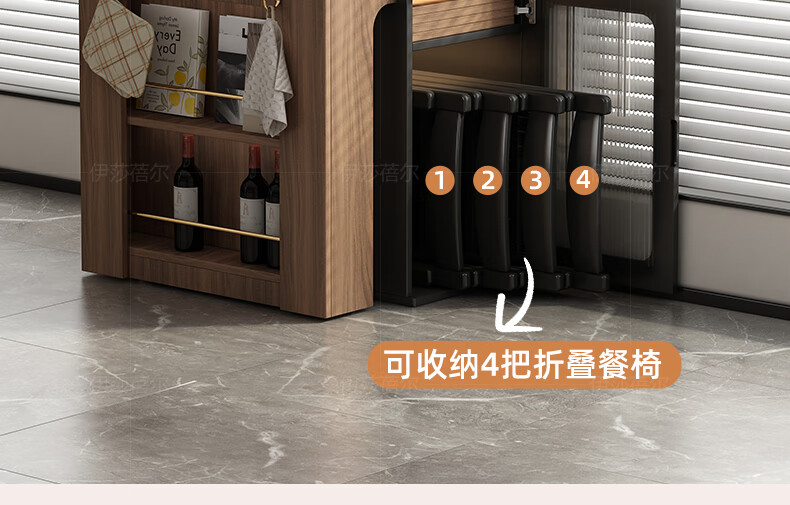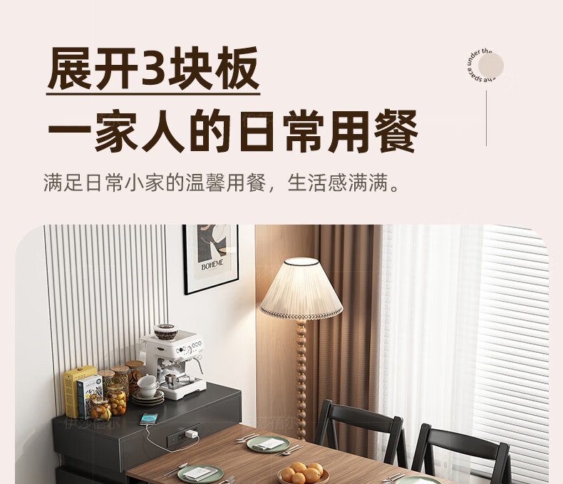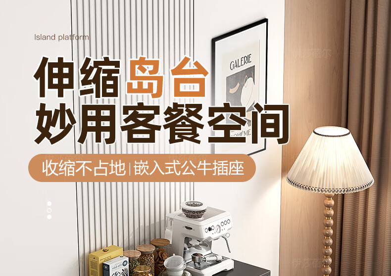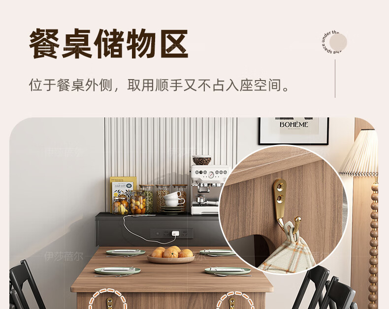 Isabel modern simple island dining table integrated household retractable small apartment 2024 new folding dining table and chair combination 0.65~2.05 meters - solid wood - black - with bull socket