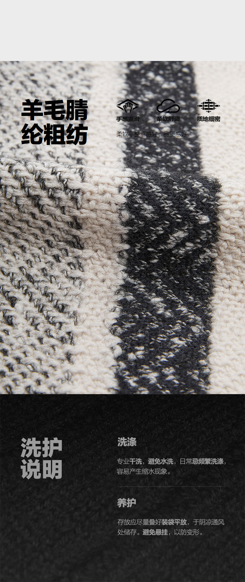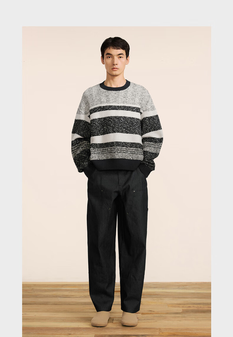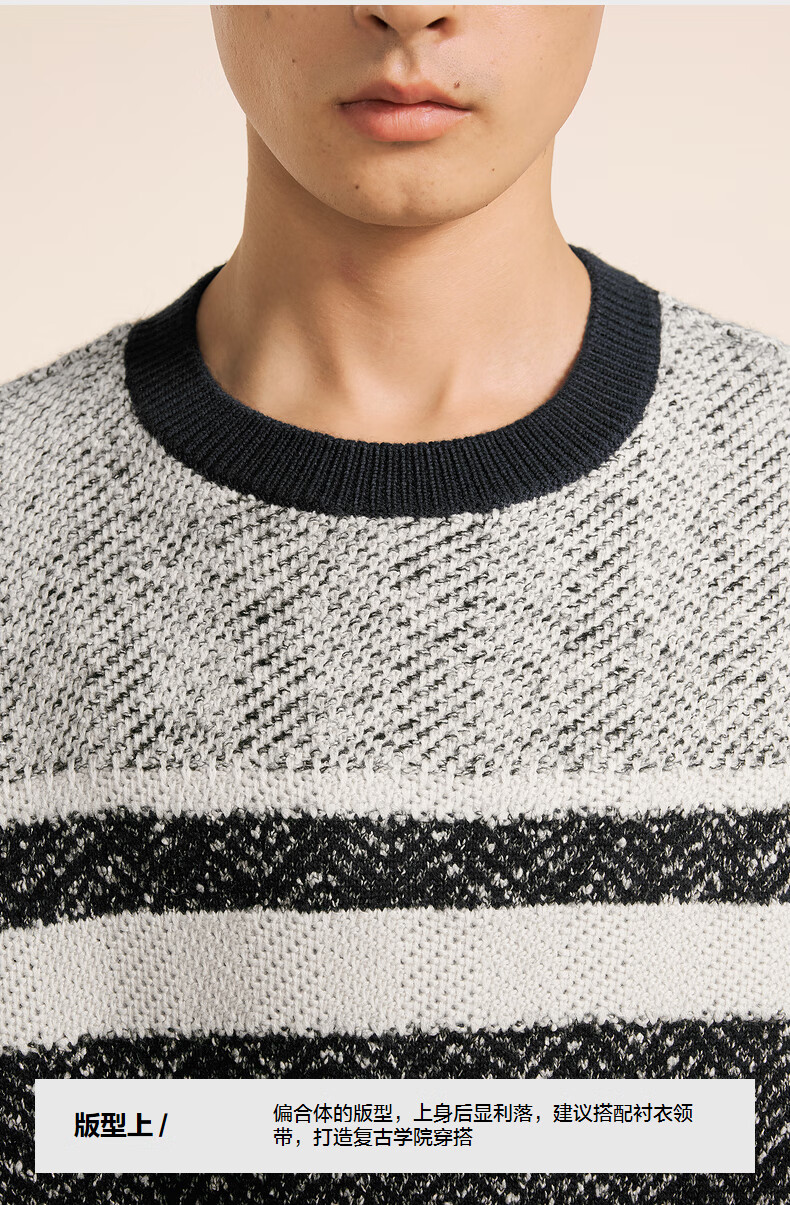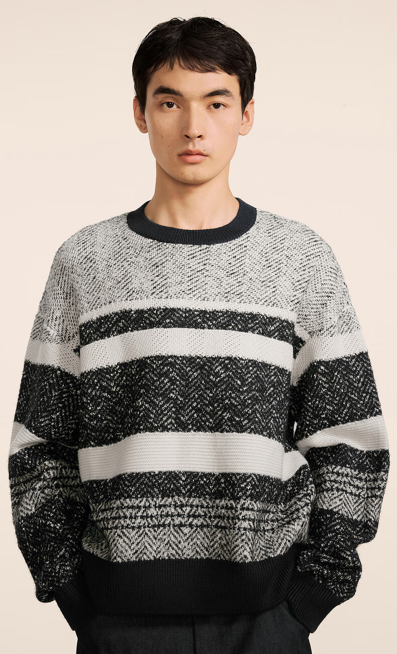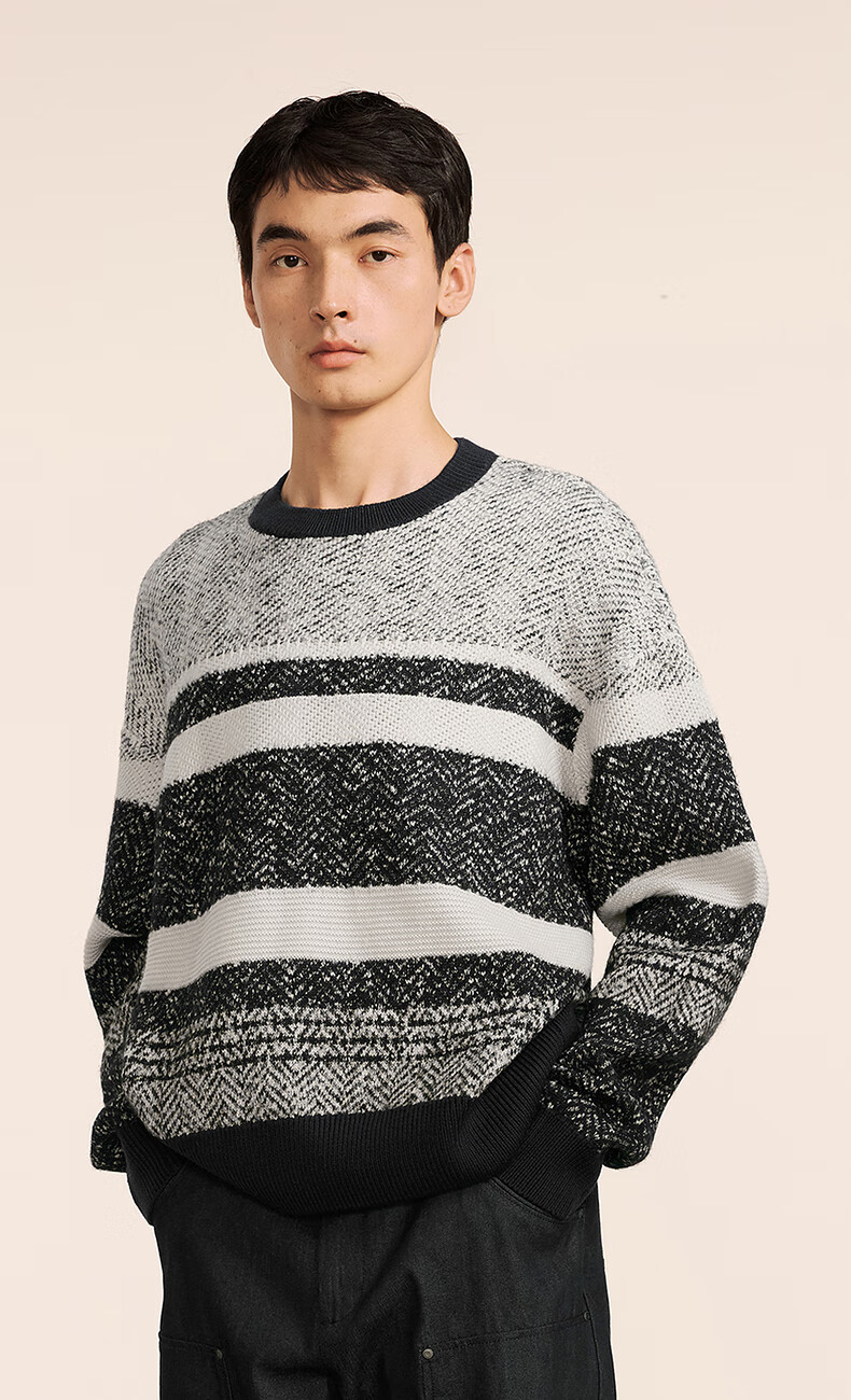 Sketch men's autumn and winter new casual loose sweater striped round neck pullover college retro design trendy top 098 black and gray combination S