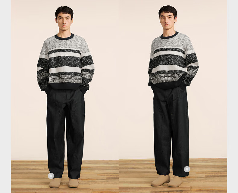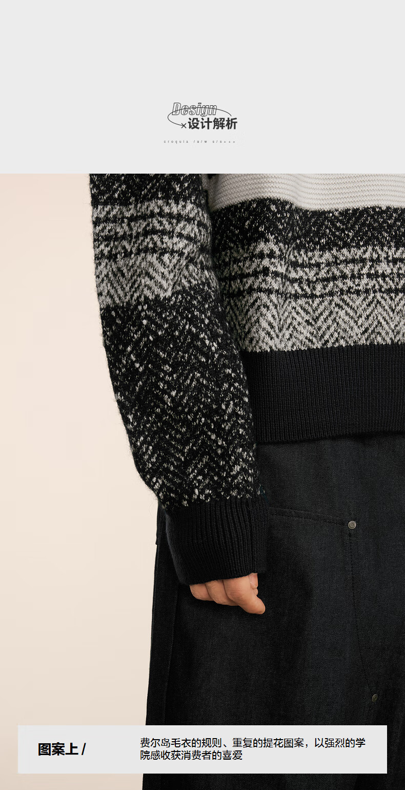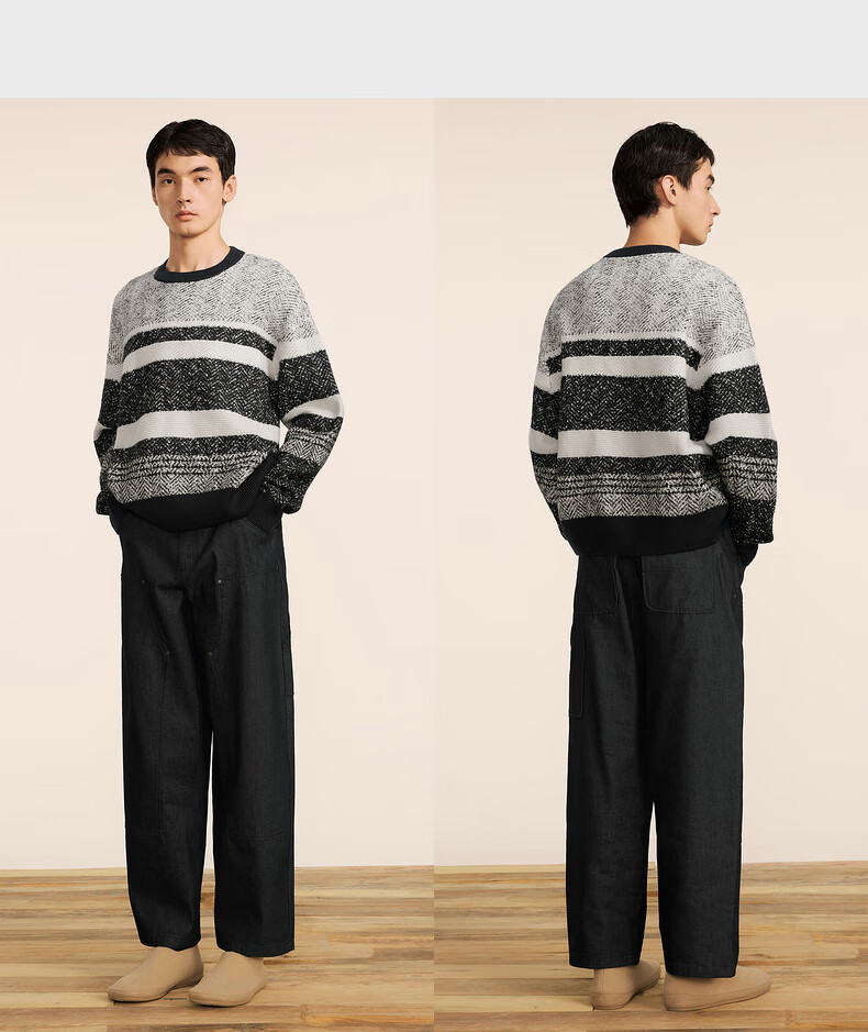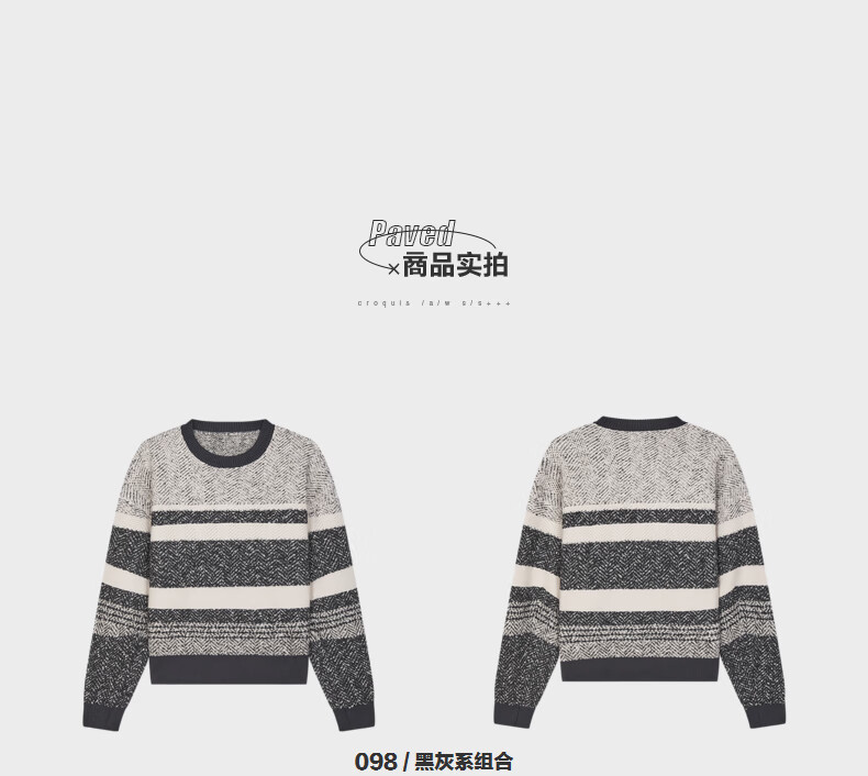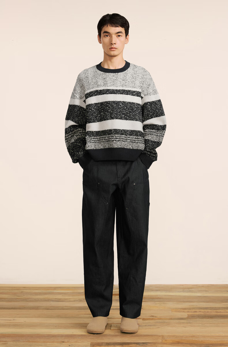 Sketch men's autumn and winter new casual loose sweater striped round neck pullover college retro design trendy top 098 black and gray combination S
