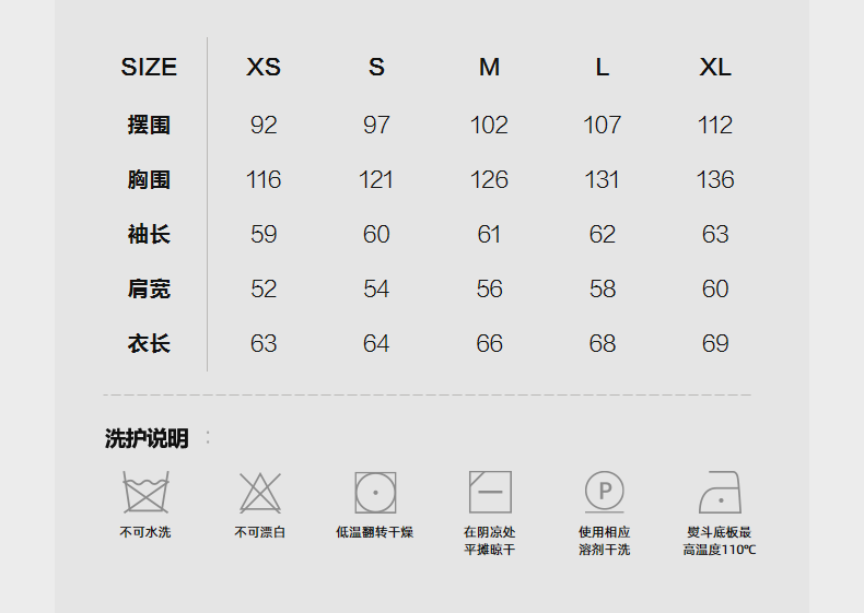 China (cm) 160-165/84-86 165-170 / 88-90 167-172 / 92-96 168-173 / 98-102 170-176 / 106-110