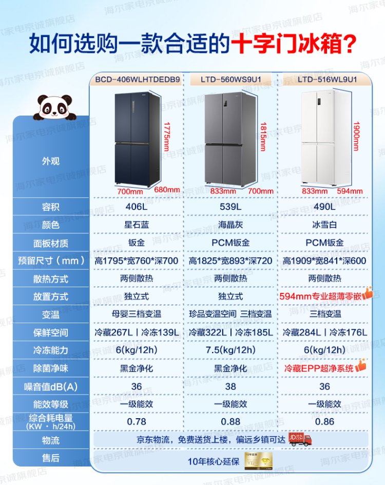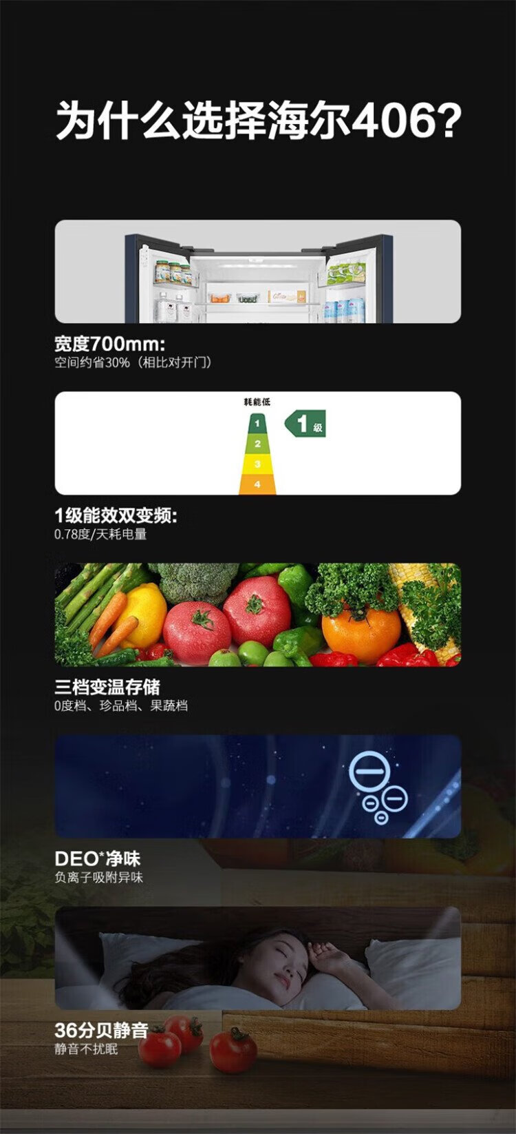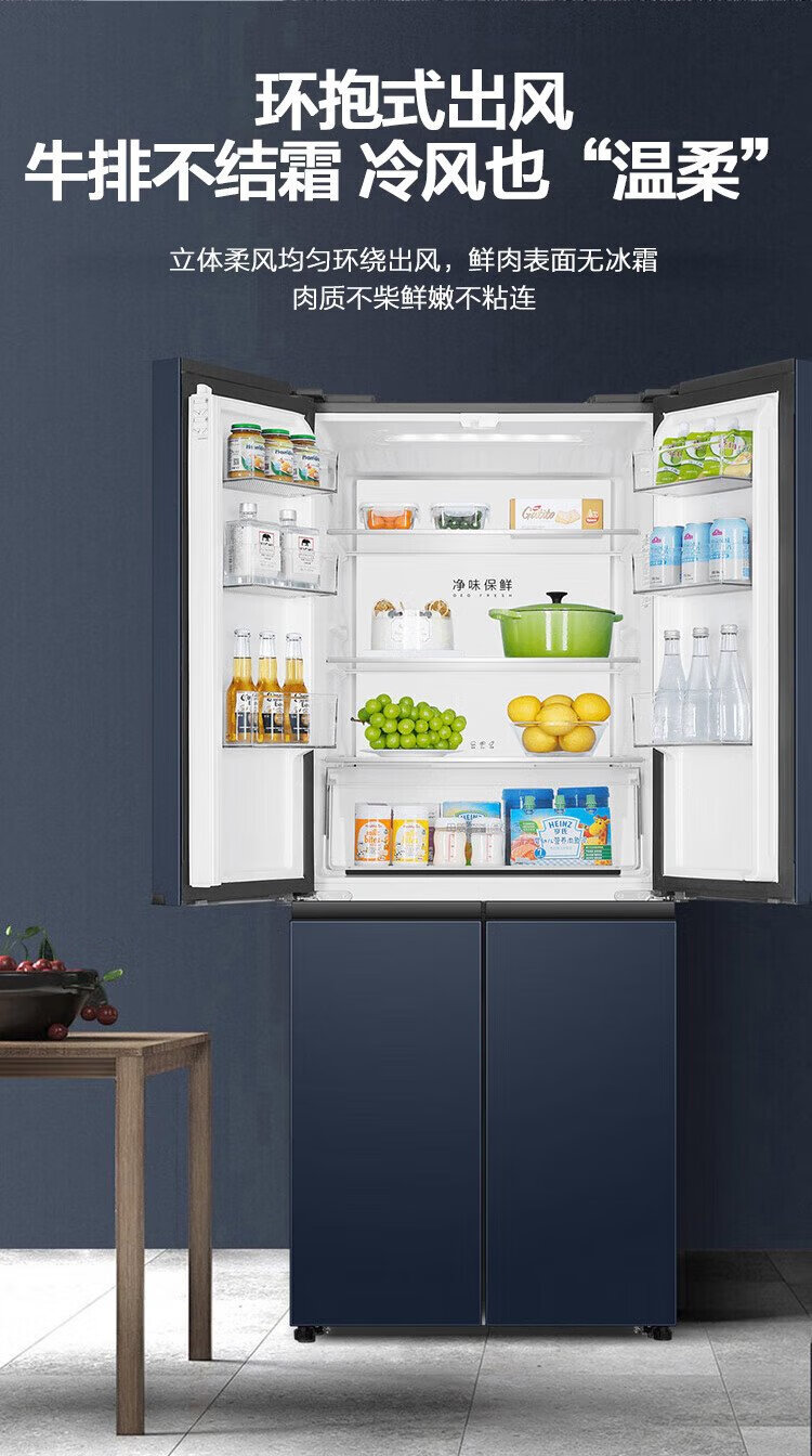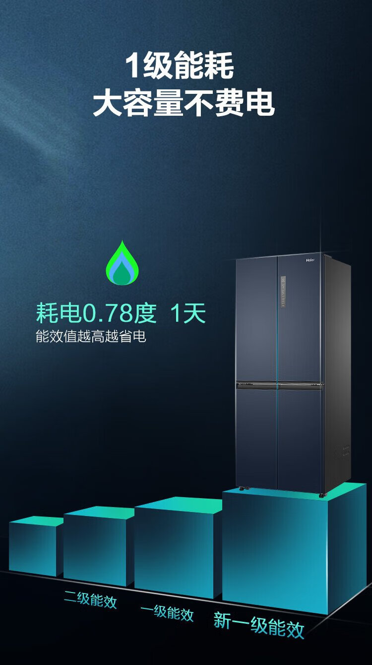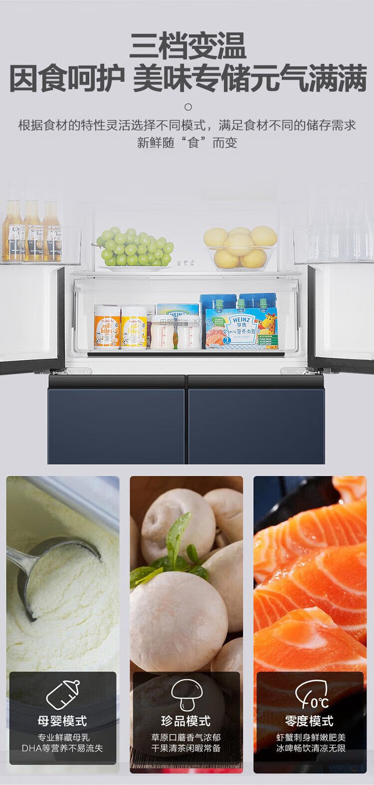 Haier refrigerator 406 liters four-door cross-door ultra-thin air-cooled frost-free first-class energy efficiency dual-frequency maternal and infant space energy-saving and energy-saving household refrigerator state subsidy 20% Star Stone Blue 406 liters maternal and infant temperature changing space + DEO purification