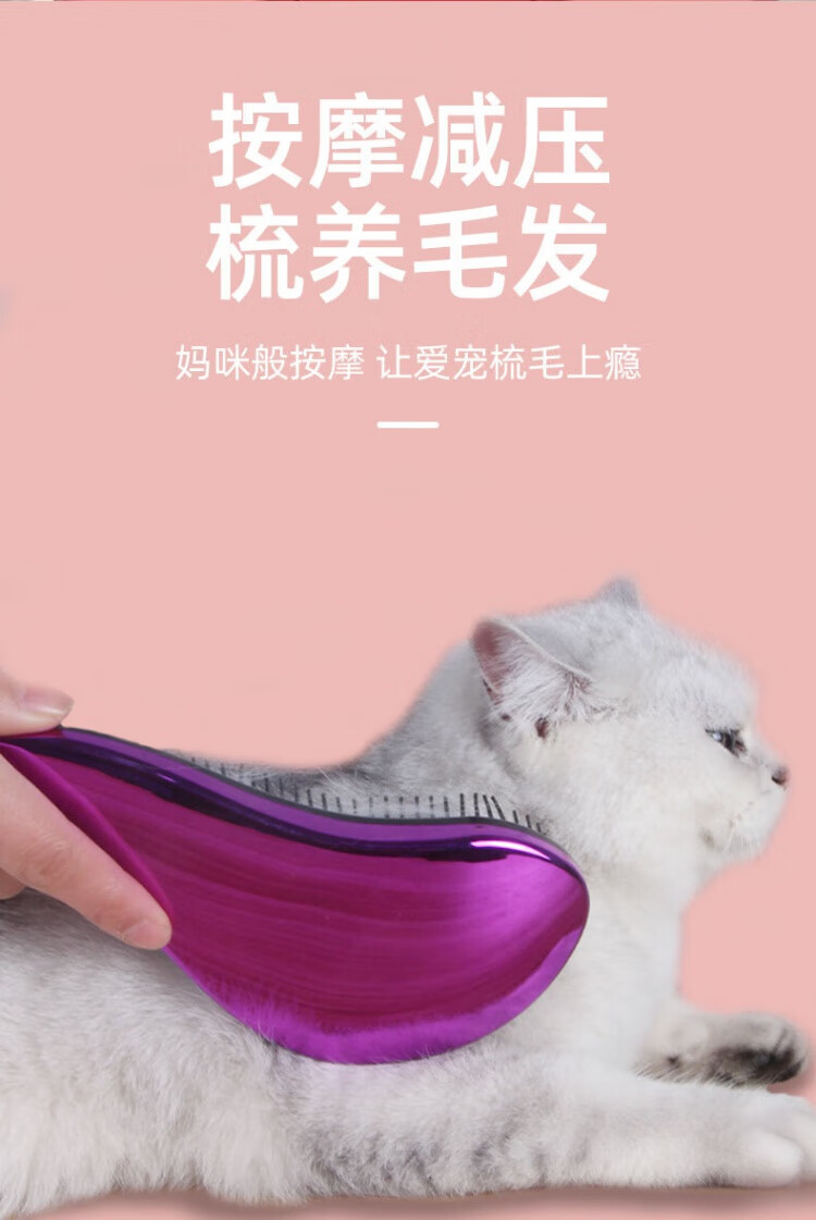 Pet dog massage comb bath brush artifact Teddy special cat comb to remove floating hair comb dog hair cat rose gold baby-like care massage decompression + combing hair care