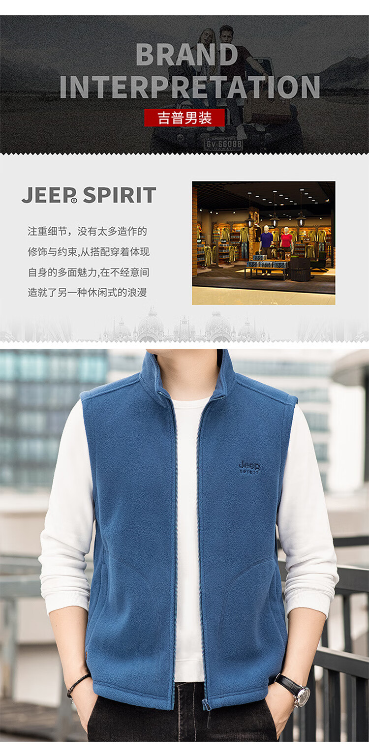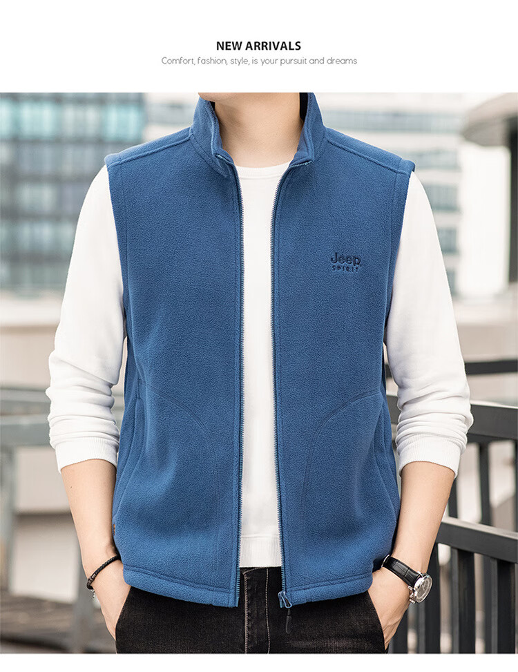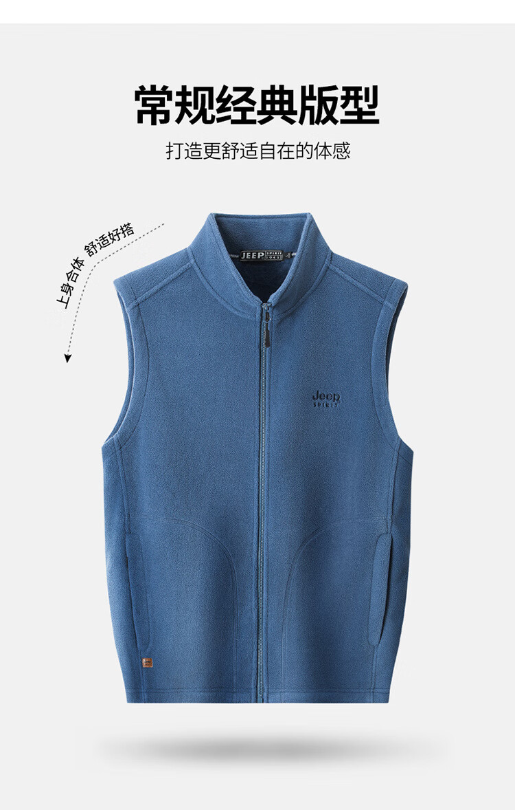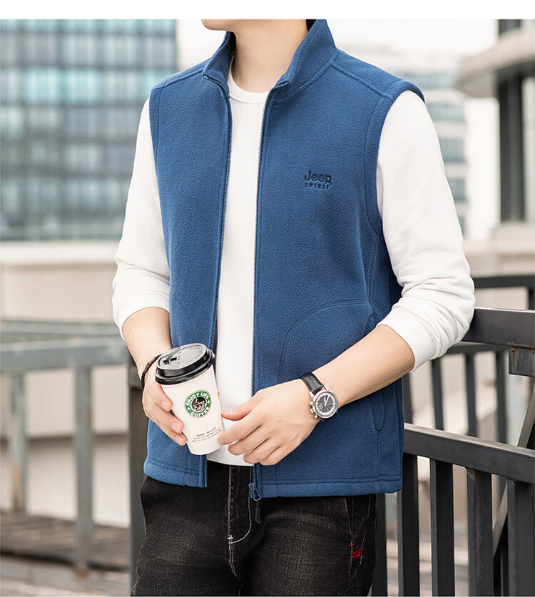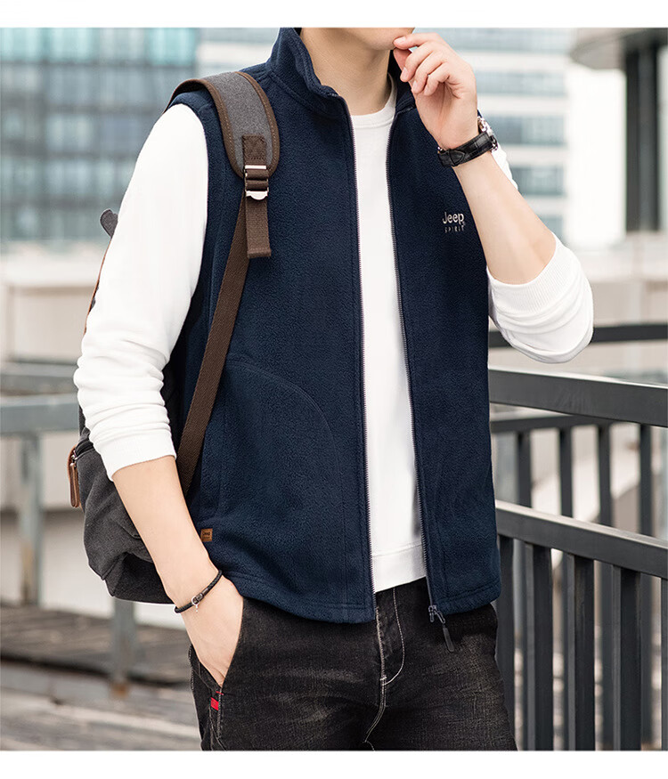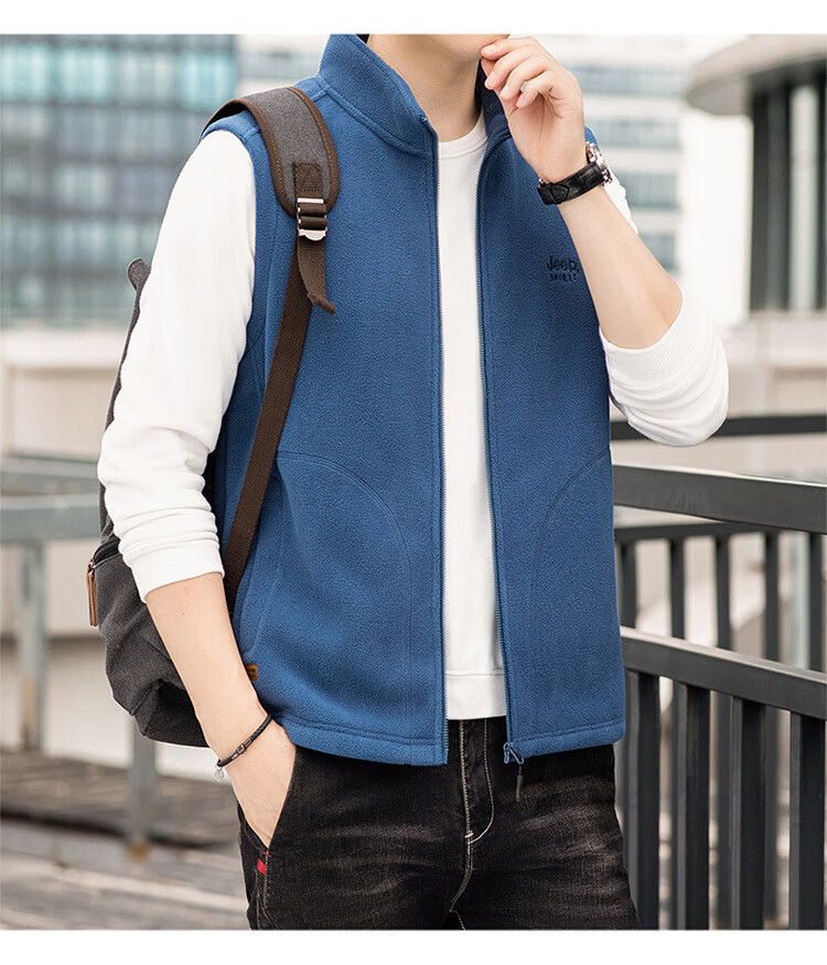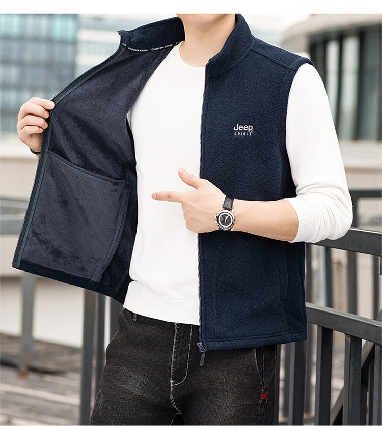 JEEP SPIRIT Jeep Spirit Polar Fleece Vest Men's Autumn and Winter Casual Versatile Plus Velvet Thickened Fleece Vest Men's Jacket Royal Blue L Recommended 125-145 Jin Jin equals 0.5 kg