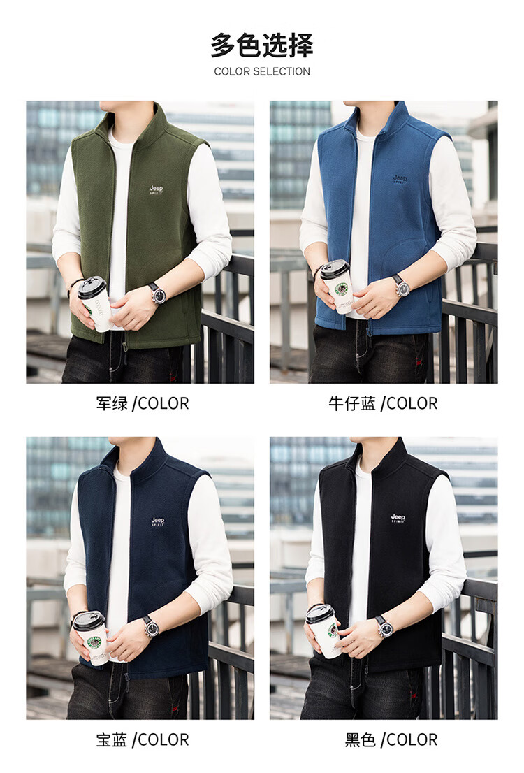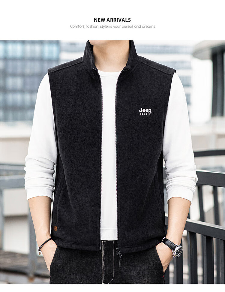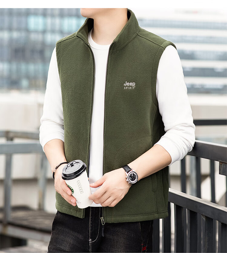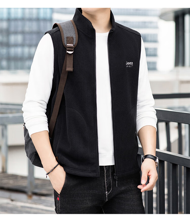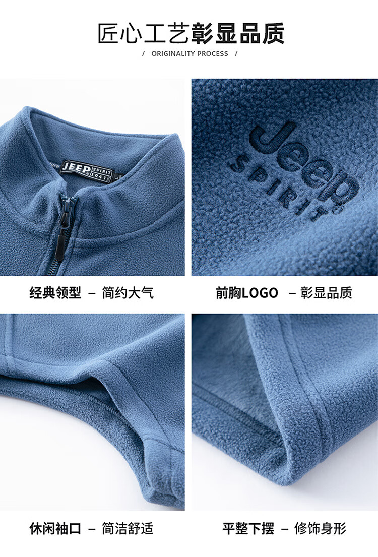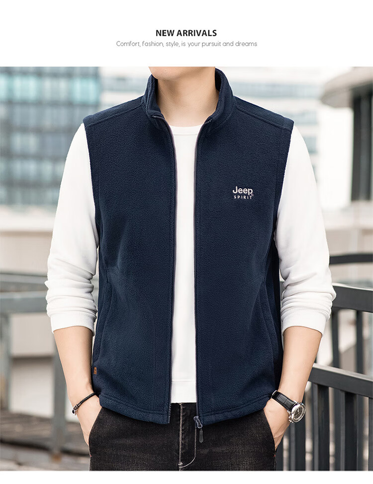 JEEP SPIRIT Jeep Spirit Polar Fleece Vest Men's Autumn and Winter Casual Versatile Plus Velvet Thickened Fleece Vest Men's Jacket Royal Blue L Recommended 125-145 Jin Jin equals 0.5 kg