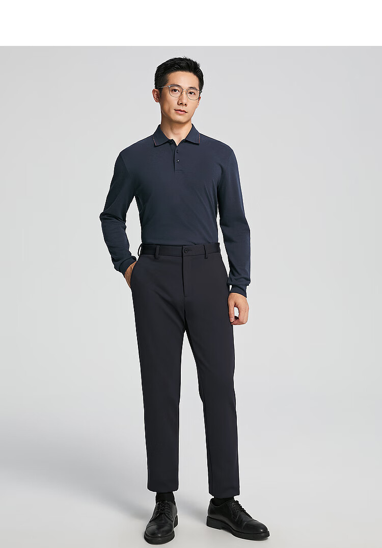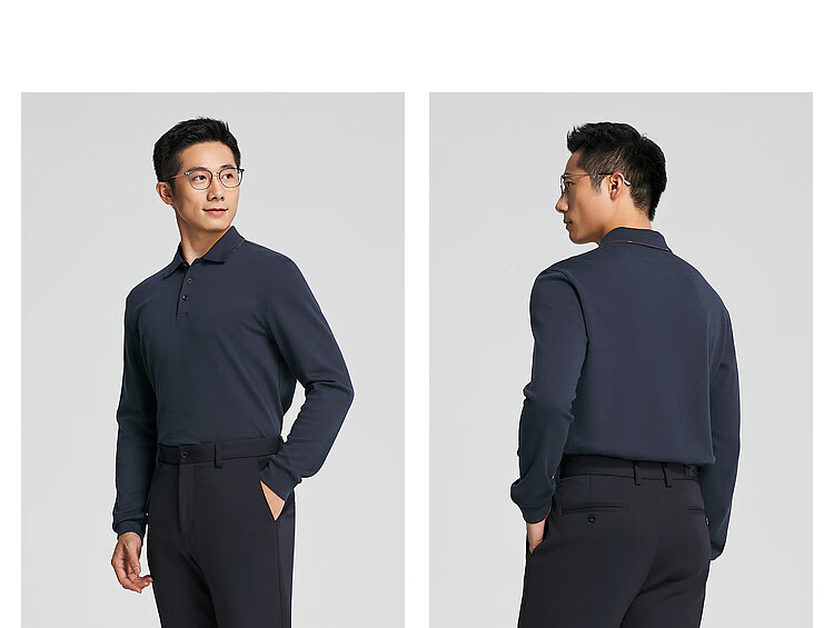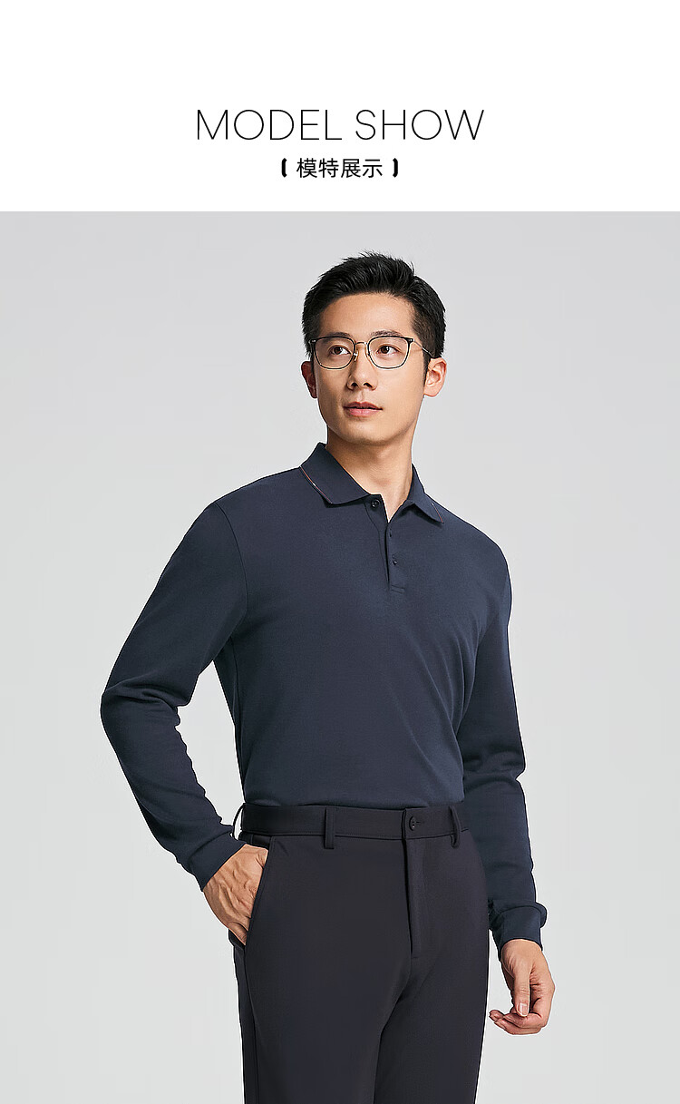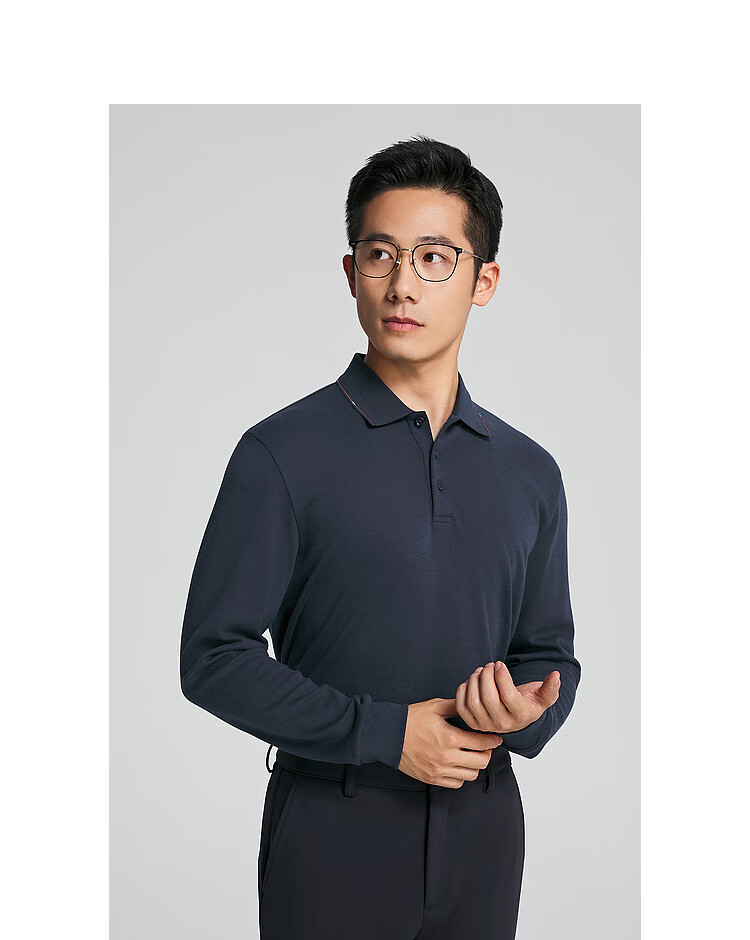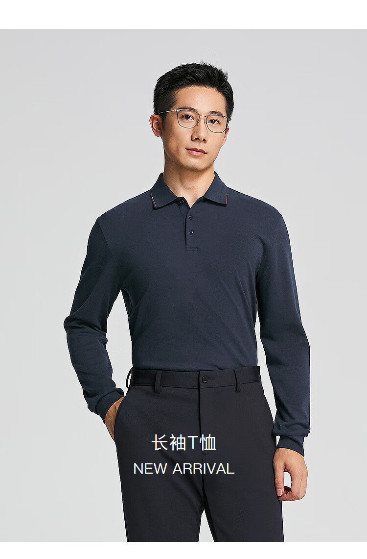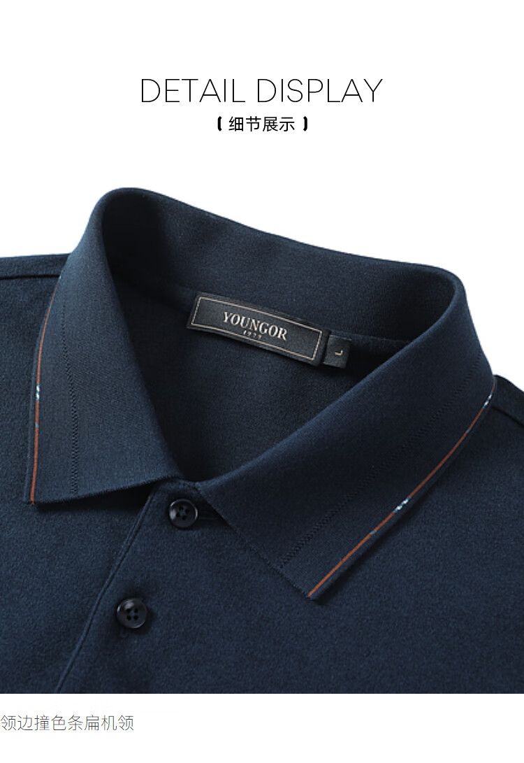YOUNGOR POLO shirt men's autumn long-sleeved POLO shirt wool jacquard fabric soft and comfortable shopping mall same style Navy YLYM515100FFA L