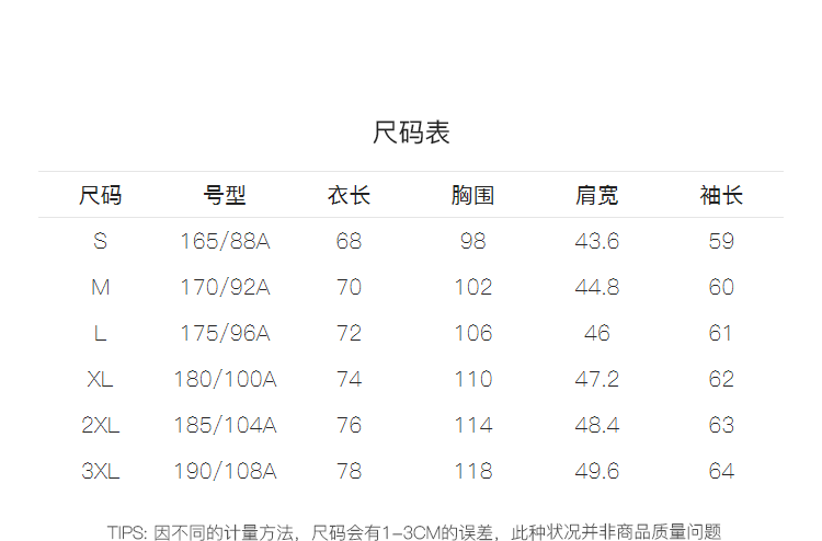 China(cm) 72-76 76-81 81-87 87-93 93-98