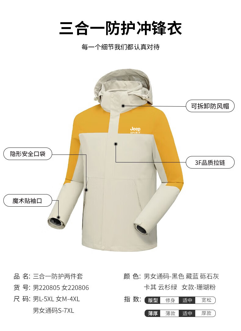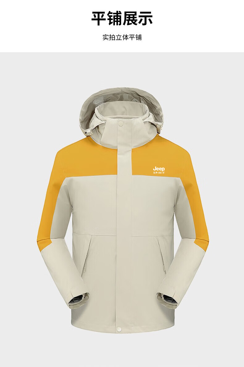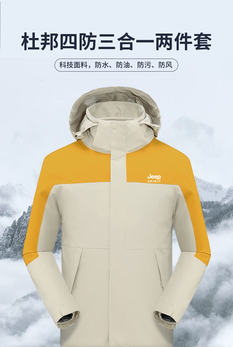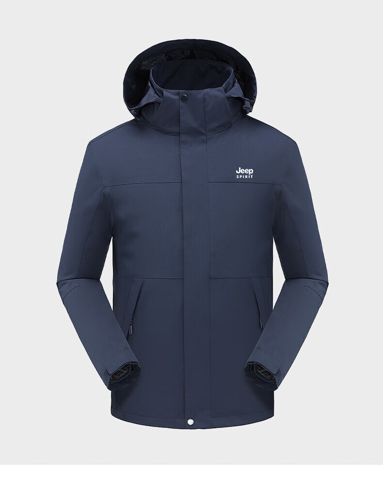 JEEP SPIRIT Jeep Jacket Men's and Women's Three-in-One Jacket Autumn and Winter Windproof, Waterproof, Warm and Velvet Couple Mountaineering Suit Group Purchase DT-220805 Navy Blue Three-in-One XL (130-150Jin Jin is equal to 0.5kg)