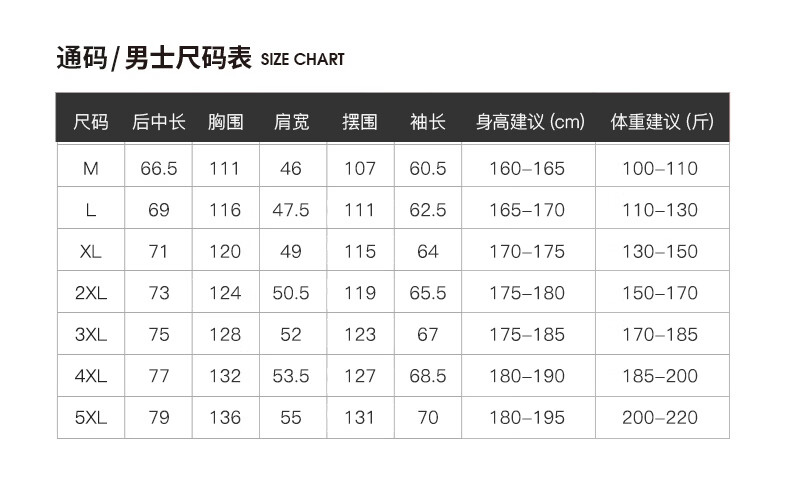 China (cm) 165 / 88-90 170 / 96-98 175 / 108-110 180 / 118-122 185 / 126-130