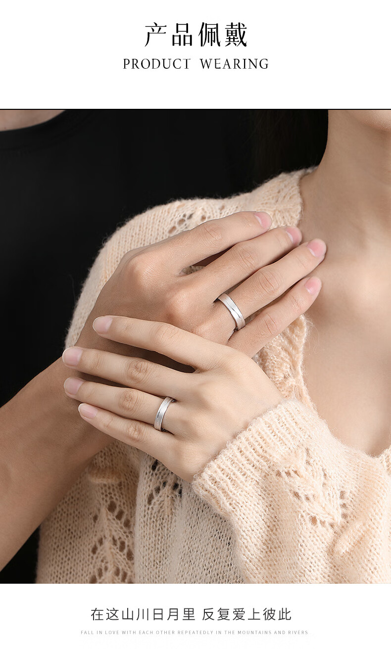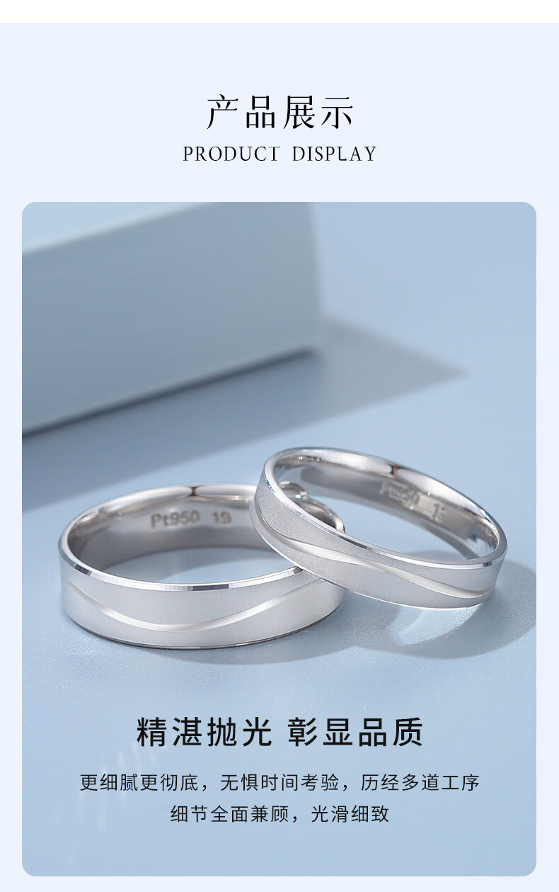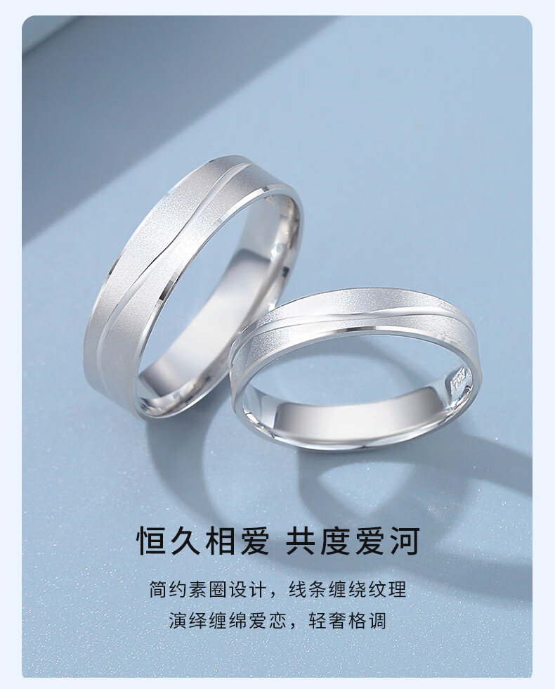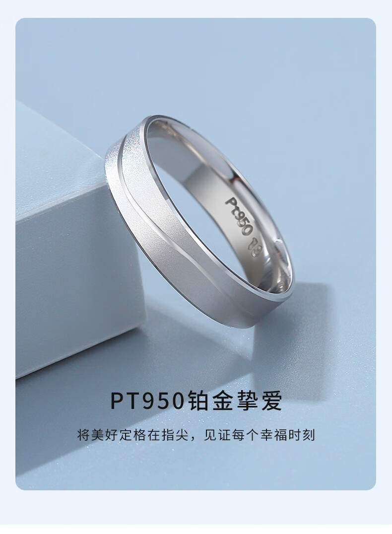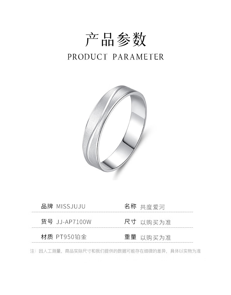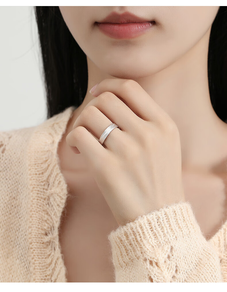 Miss JuJu pt950 platinum ring, couple ring, love together, wedding platinum ring, plain ring, men's and women's engagement ring, No. 14 single, 4.5-4.7g (brushed)