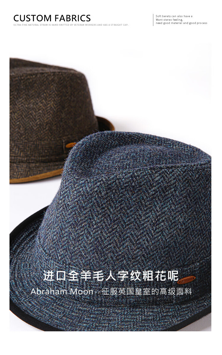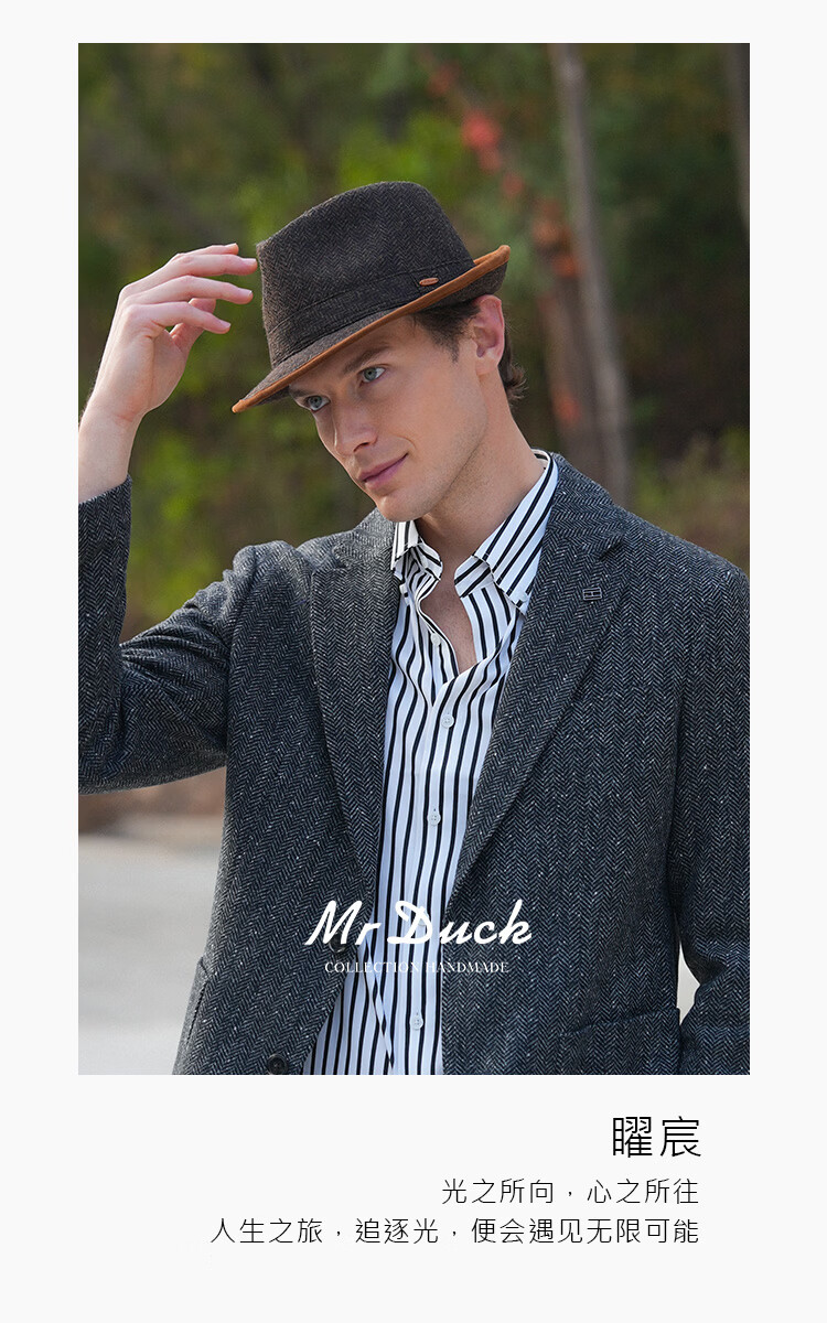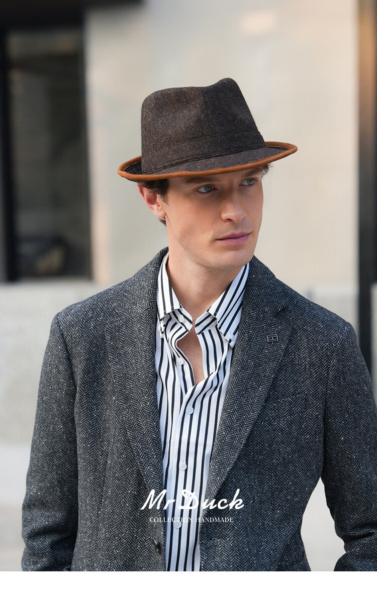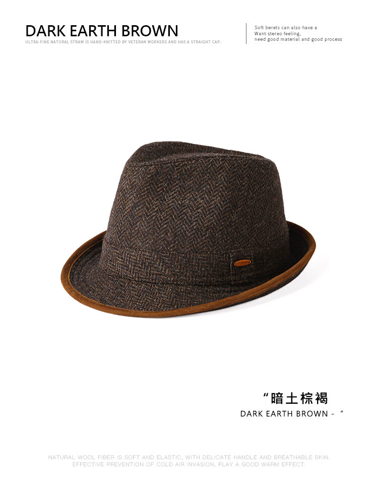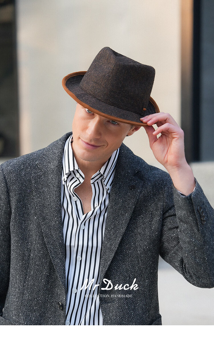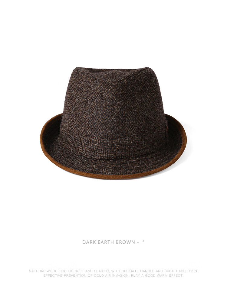 Mr DUCK British Moon all-wool hat for men, genuine high-end gentleman's hat, winter old money style casual formal jazz hat, dark earthy tan (100% wool)-MW462108 M (55-57cm)