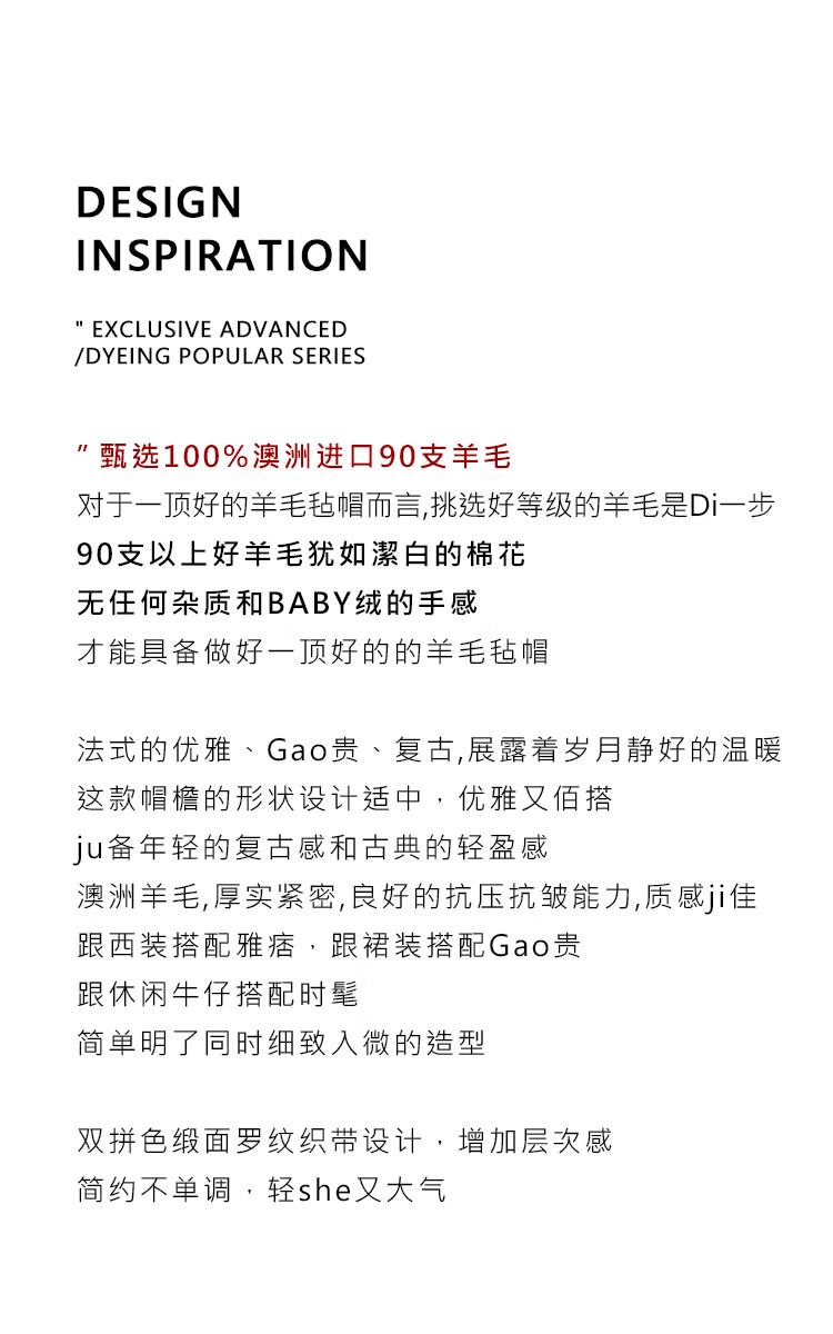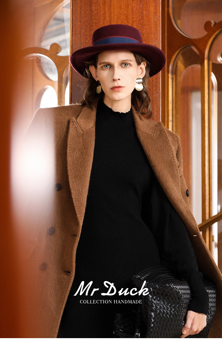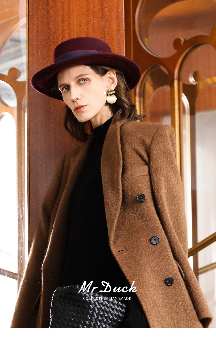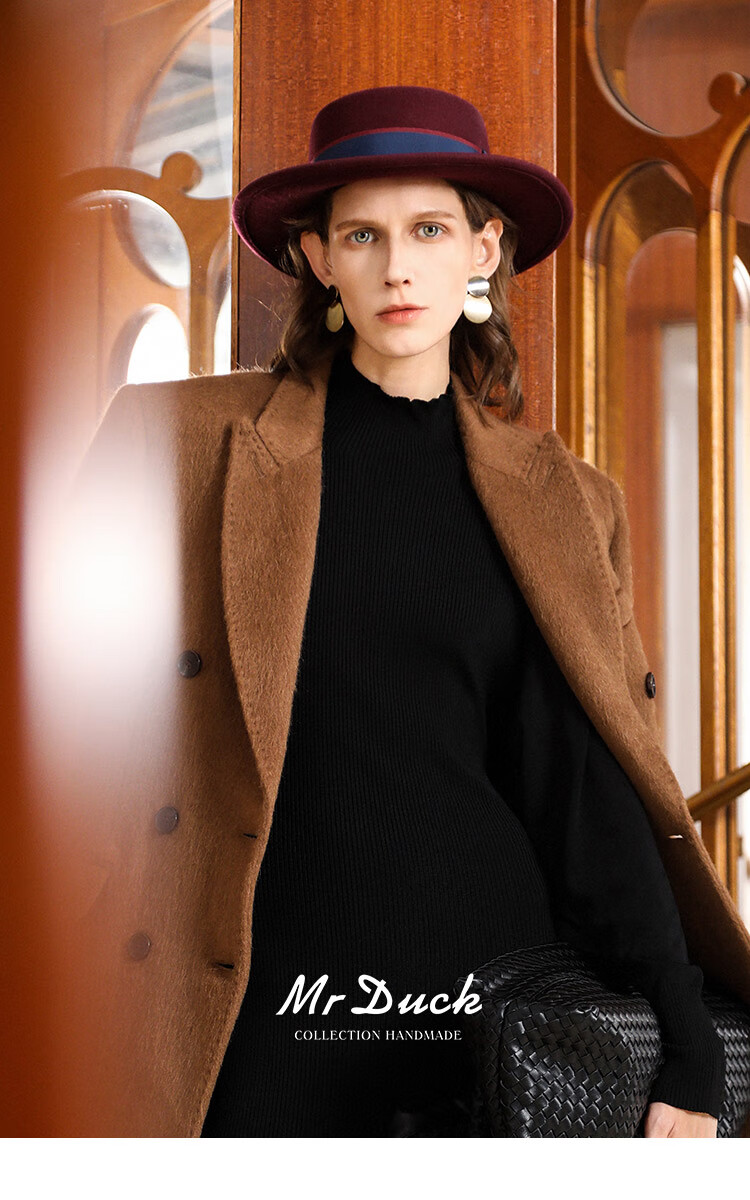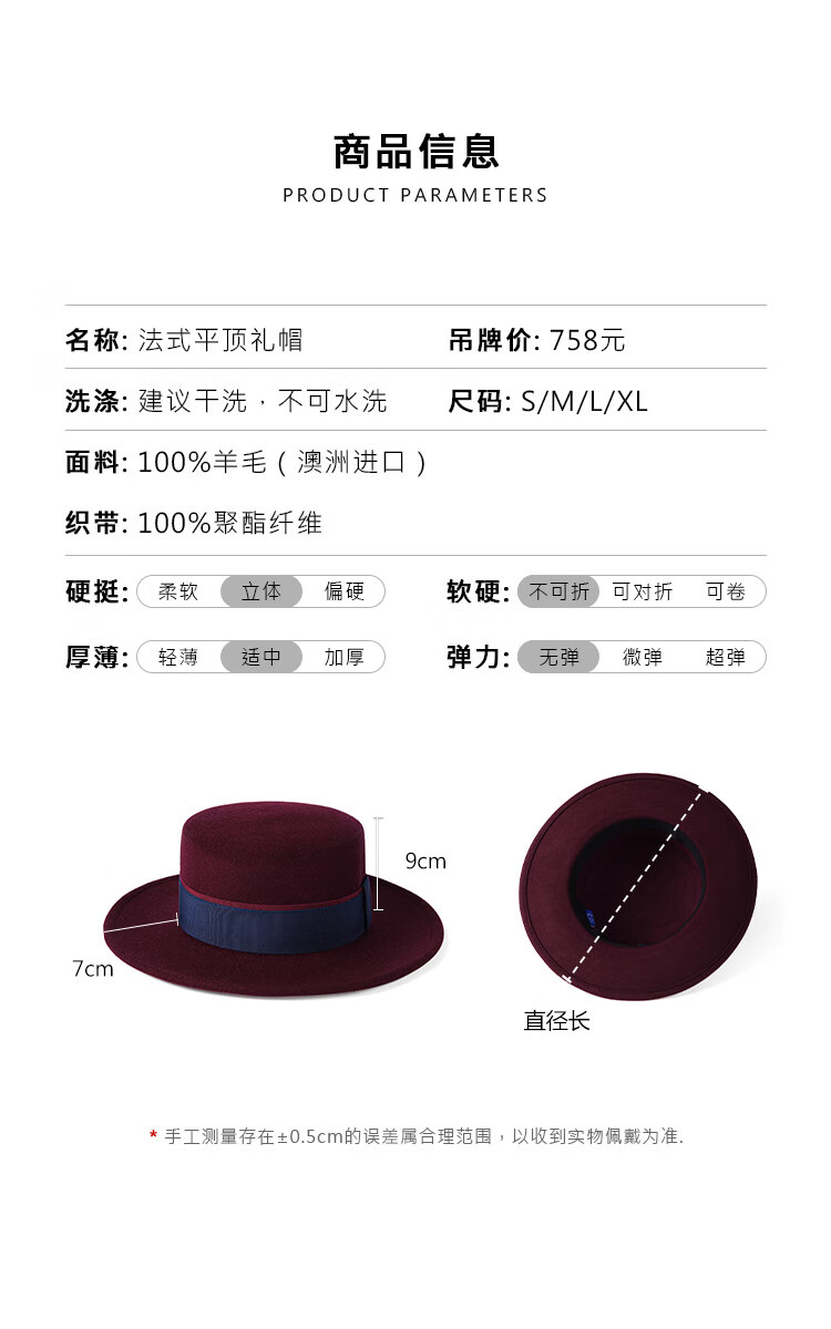 Mr DUCK Australian wool flat top hat for women New Year atmosphere festive hat Qiji red French style handmade felt hat MW462145-enamel wine red (double patchwork ribbon) L (57-58cm)