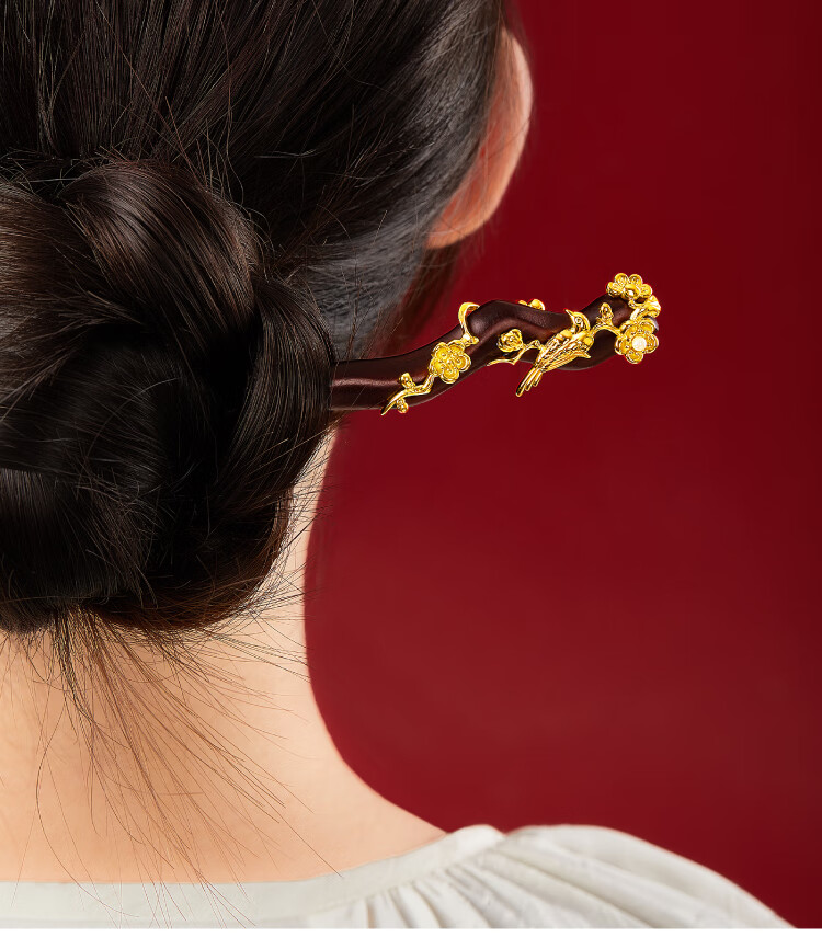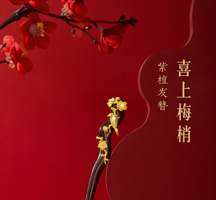 Museum of Culture and Creation Magpie Climbing Plum Hairpin Chinese Style Sandalwood Ancient Style Hairpin New Chinese Style Birthday Gift Thanksgiving Gift Box