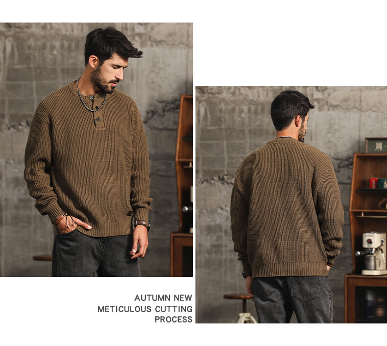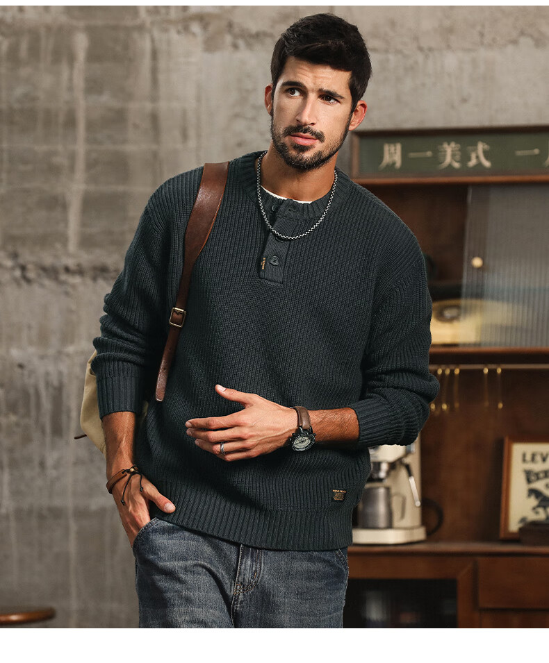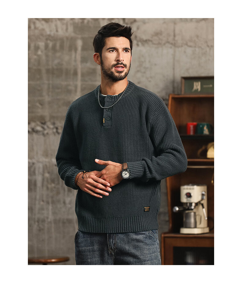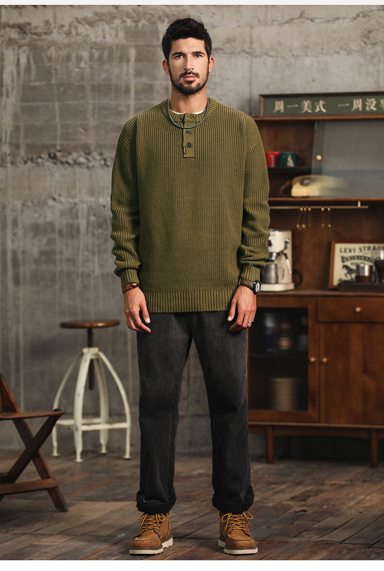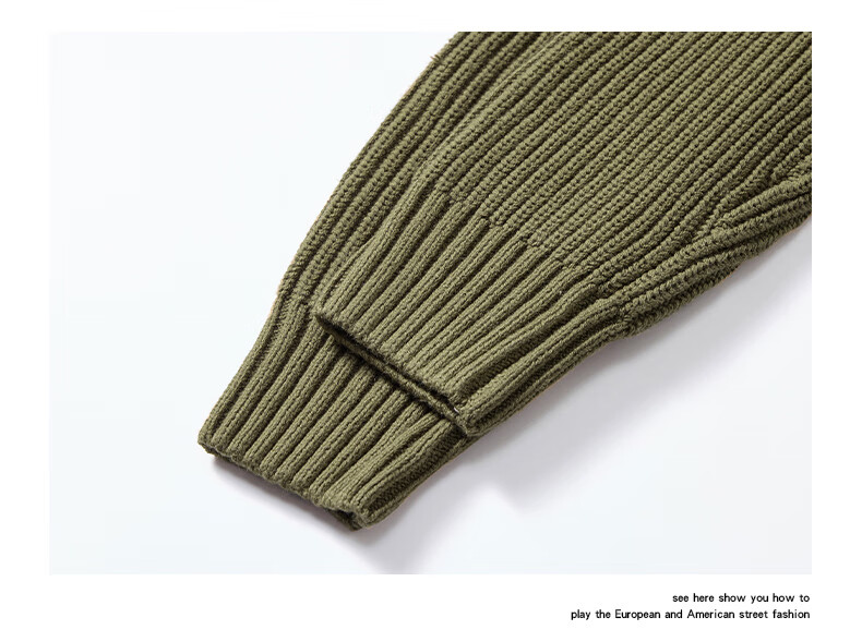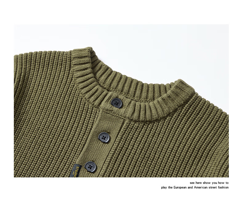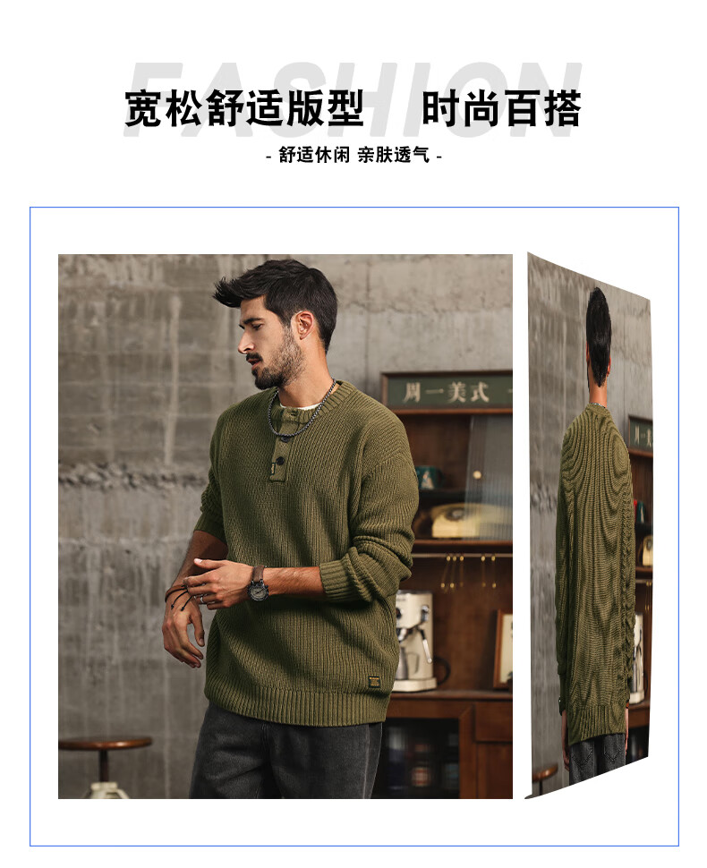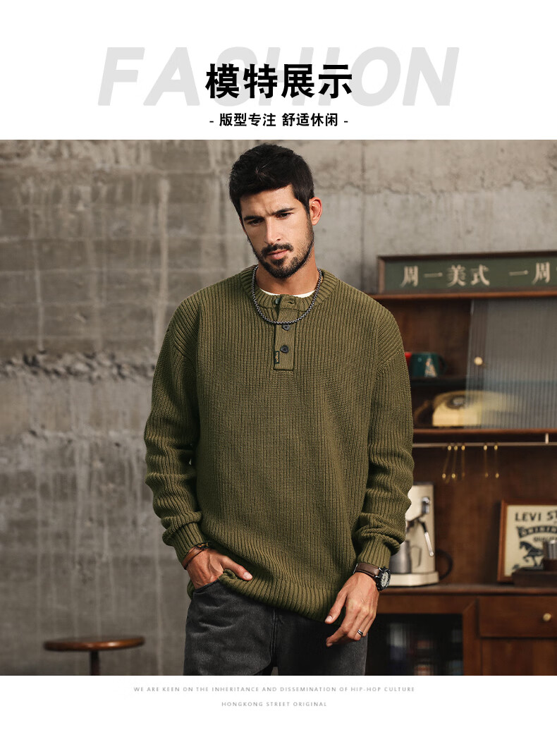 Hou Teng American Henry Collar Sweater Men's Autumn and Winter 2025 New Trendy Brand Casual Sweater Men's Wool Clothing Men's Wear Tuhao Green 2XL (160-180Jin Jin is equal to 0.5 kg)