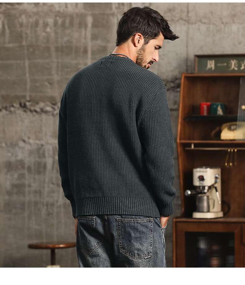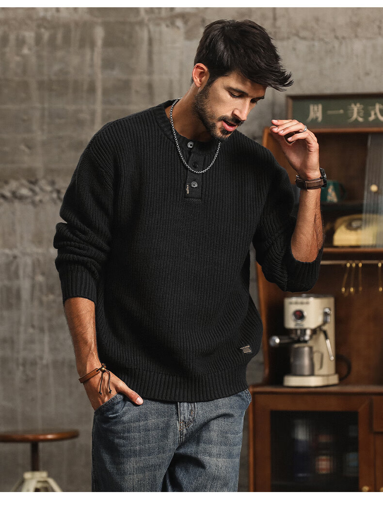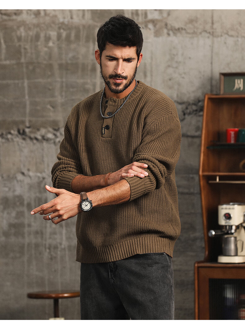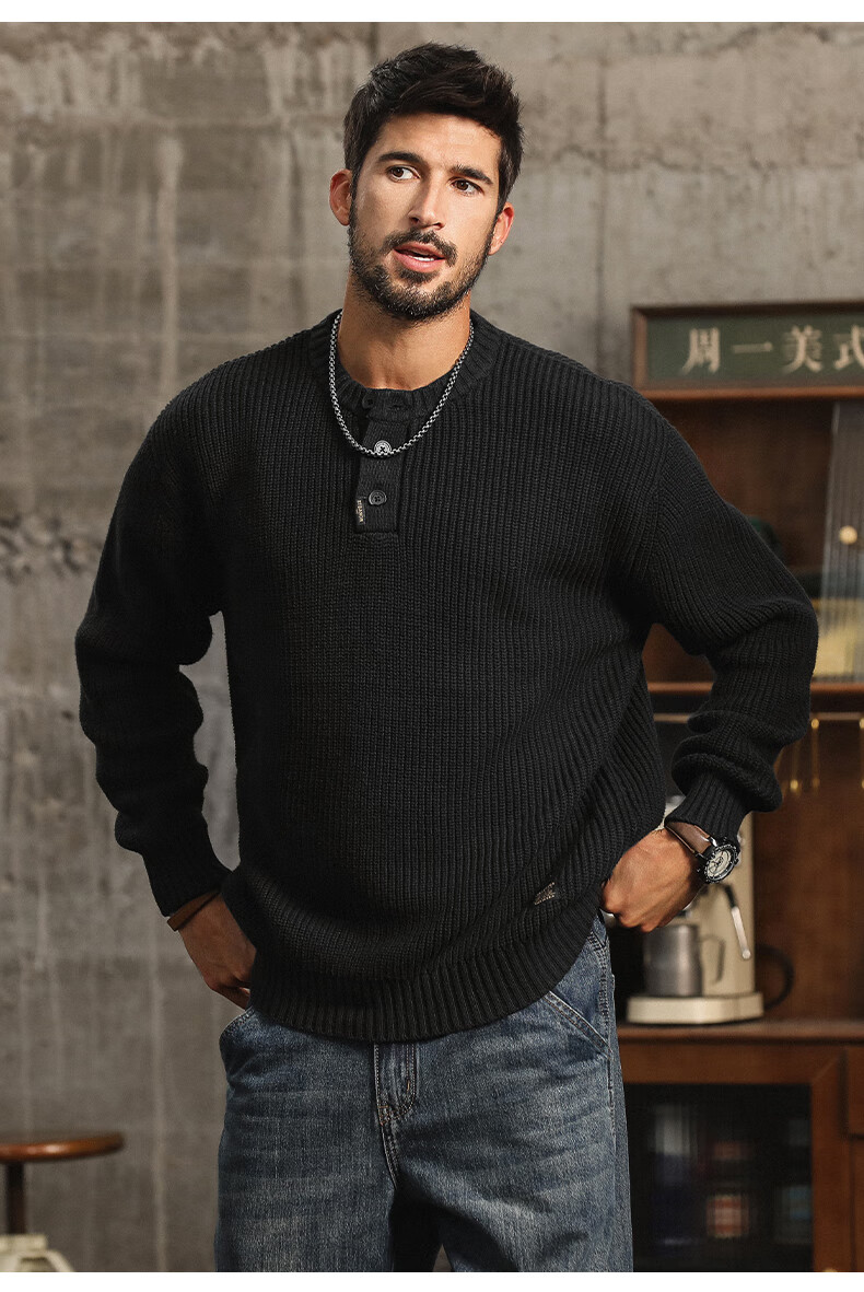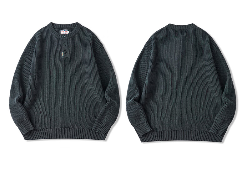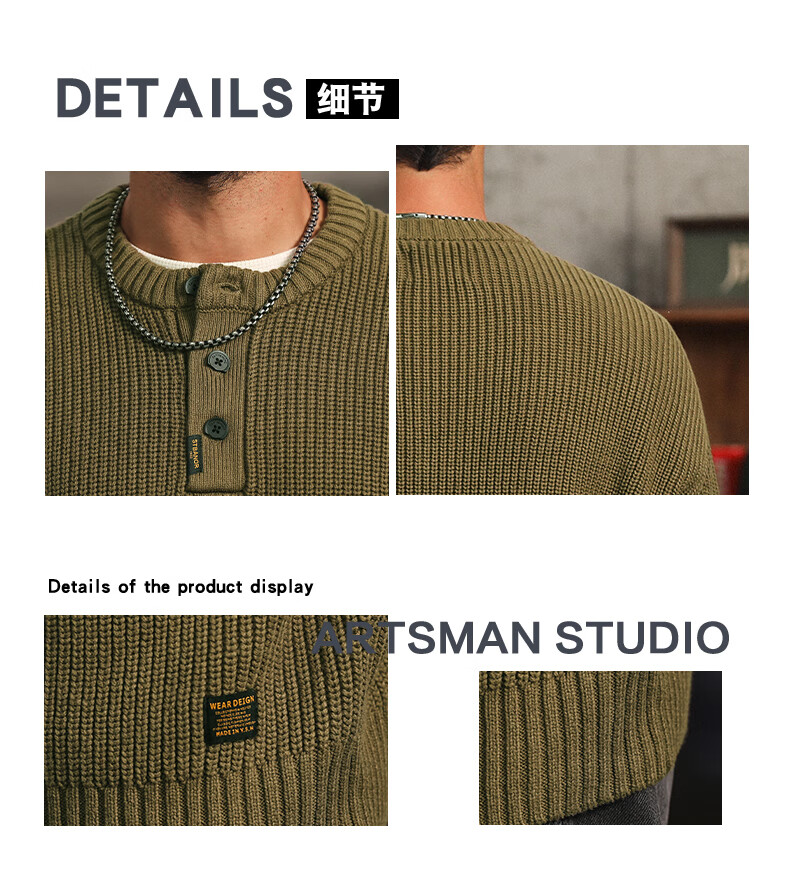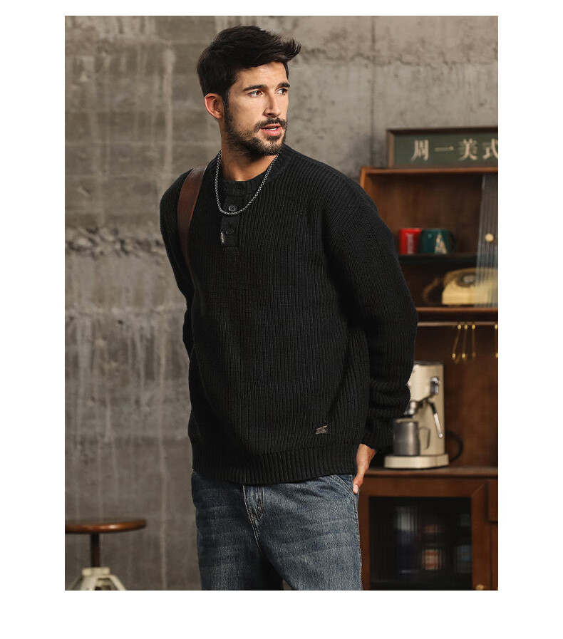 Hou Teng American Henry Collar Sweater Men's Autumn and Winter 2025 New Trendy Brand Casual Sweater Men's Wool Clothing Men's Wear Tuhao Green 2XL (160-180Jin Jin is equal to 0.5 kg)
