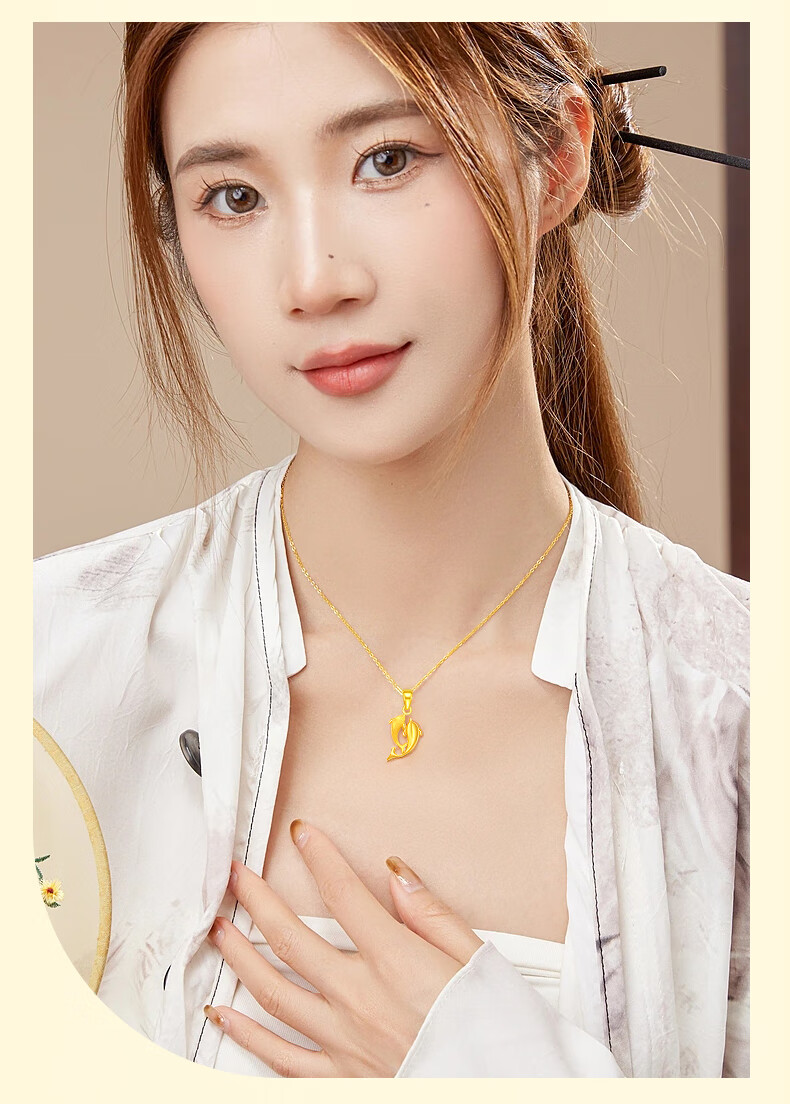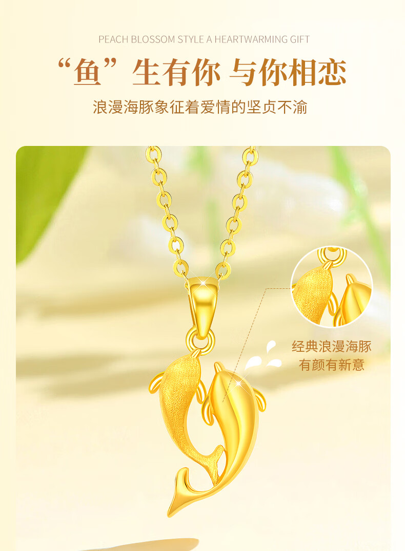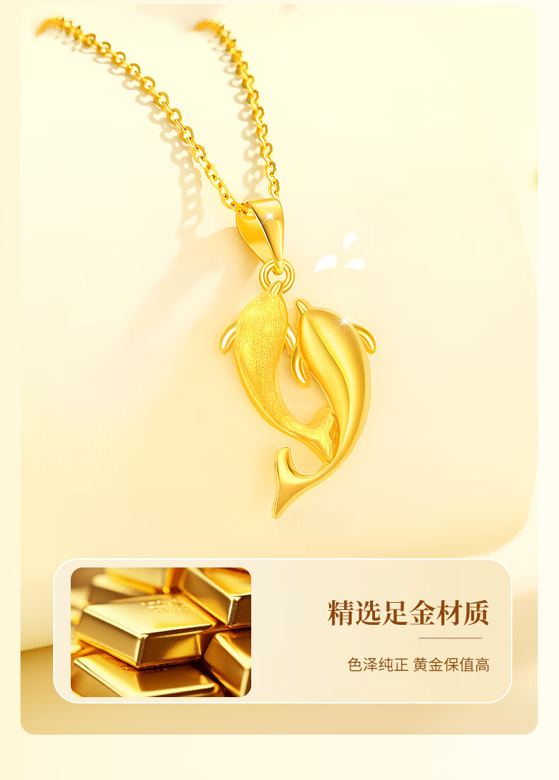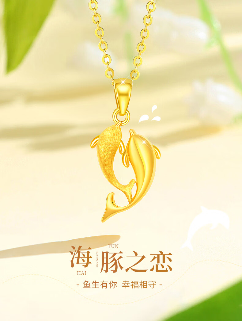 China Gold (CHINA GOLD) Dolphin Love Gold Necklace for Women New Pure Gold Pendant Birthday Gift for Girlfriend and Wife Wedding Anniversary Jingsuda Pure Gold For the Rest of My Life With You Pendant-Pure Gold Chain