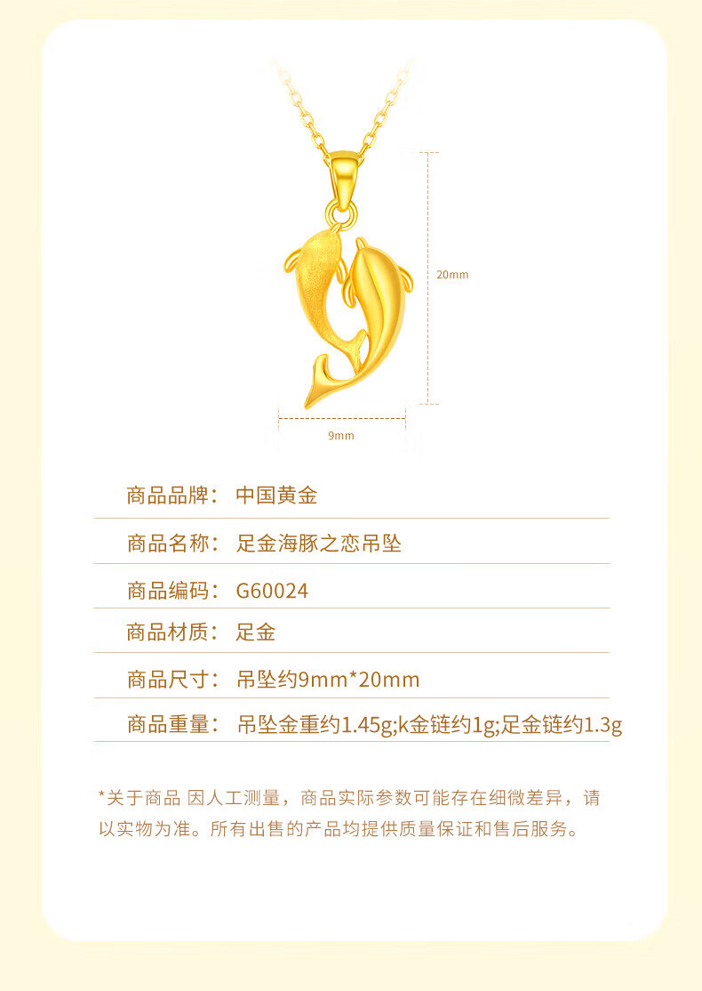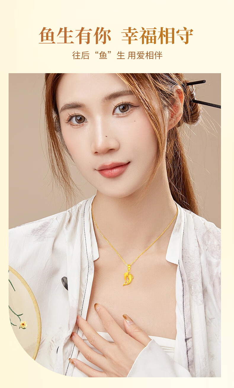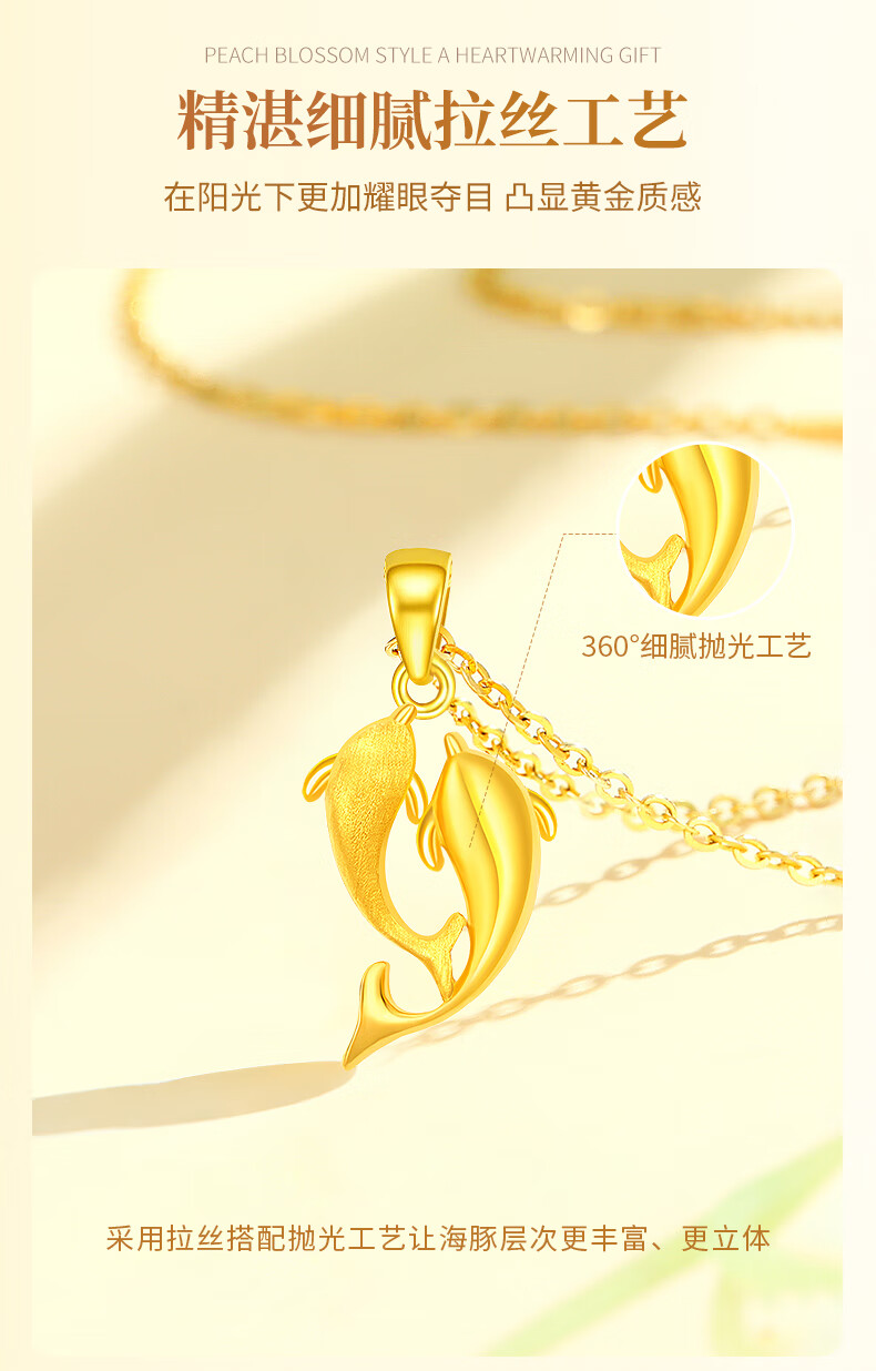 China Gold (CHINA GOLD) Dolphin Love Gold Necklace for Women New Pure Gold Pendant Birthday Gift for Girlfriend and Wife Wedding Anniversary Jingsuda Pure Gold For the Rest of My Life With You Pendant-Pure Gold Chain