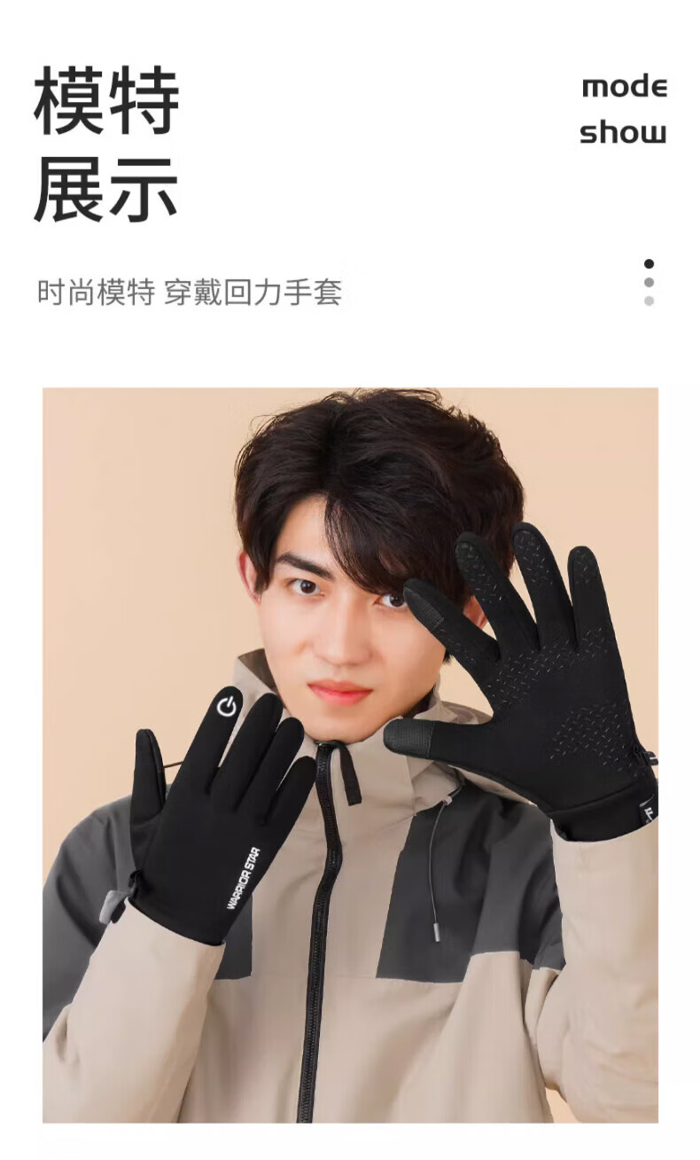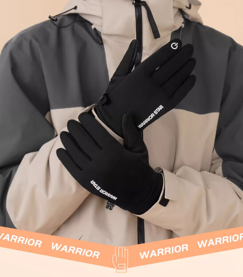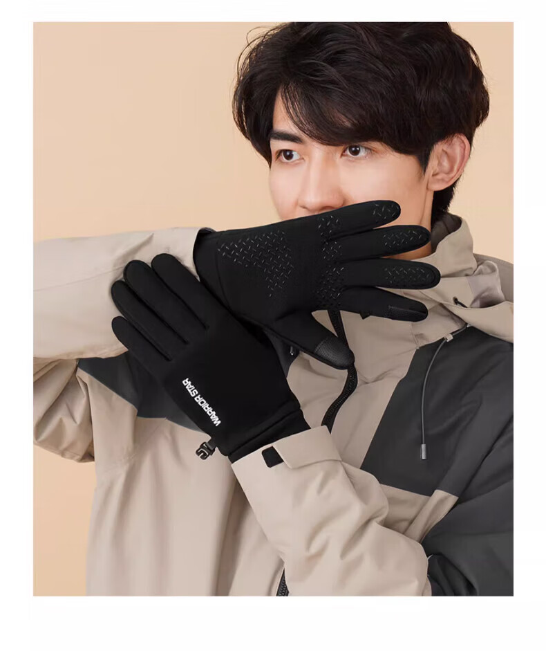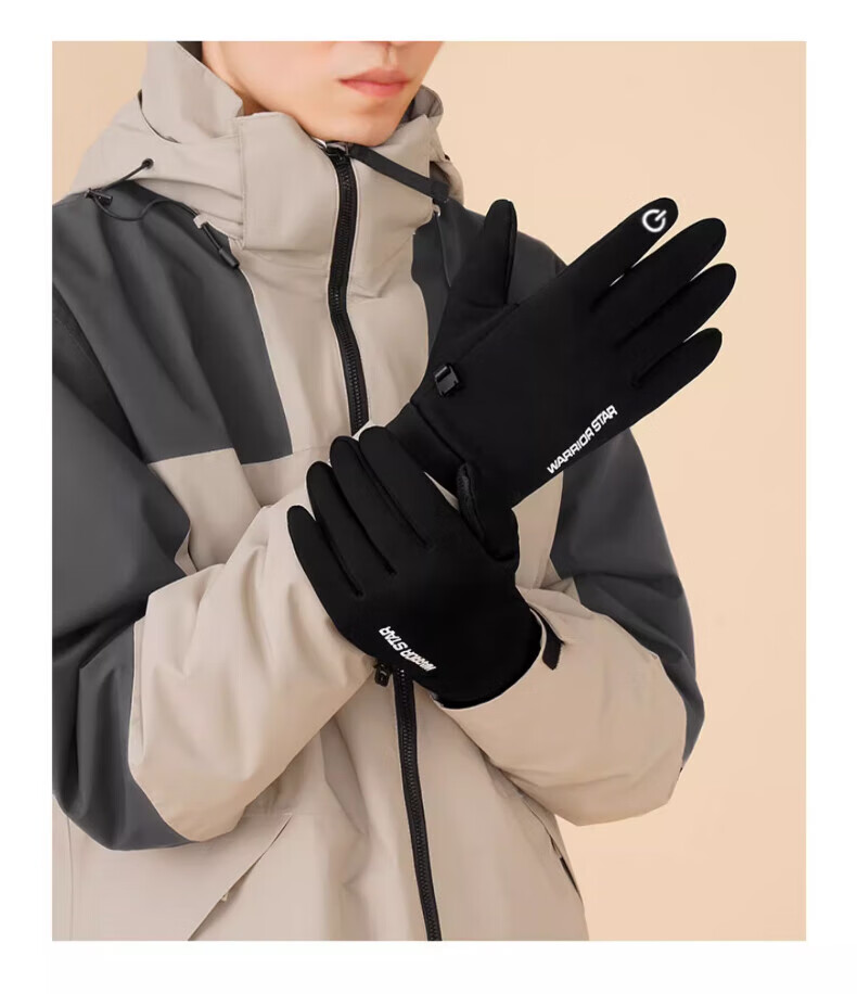 Pull back cycling gloves men's winter velvet warm and thickened cycling and driving touch screen waterproof anti-slip cotton gloves cold and windproof black touch screen