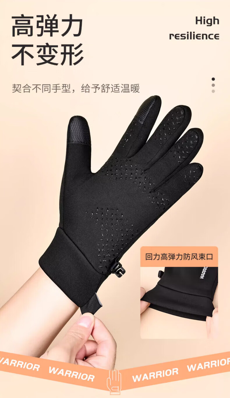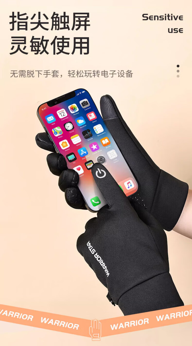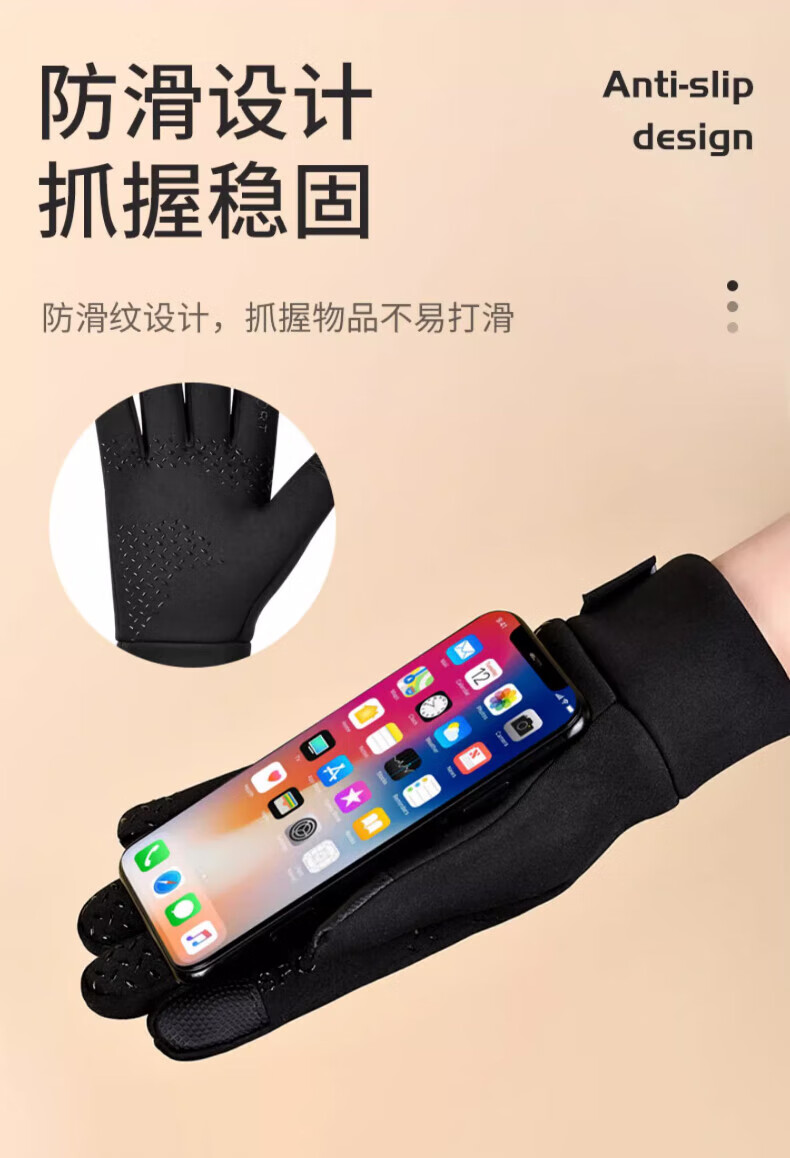 Pull back cycling gloves men's winter velvet warm and thickened cycling and driving touch screen waterproof anti-slip cotton gloves cold and windproof black touch screen