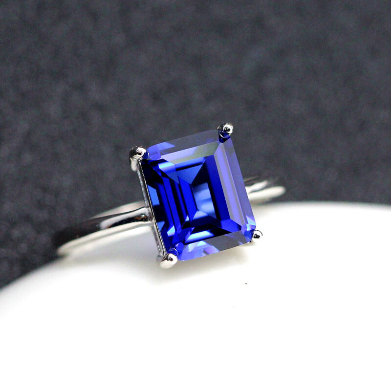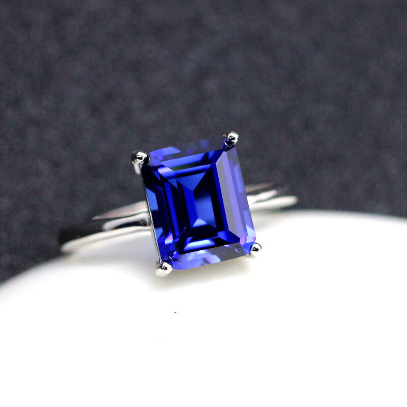 Liuwan simple tanzanite sapphire ring rectangular women's blue Japanese and Korean silver tanzanite jewelry white gold-live