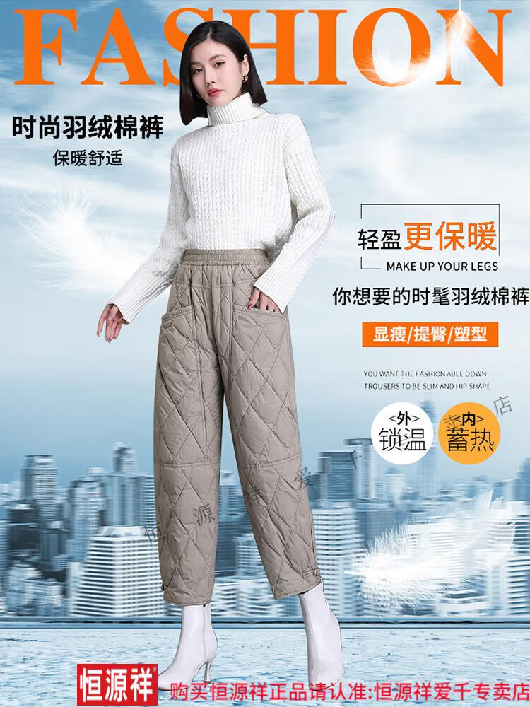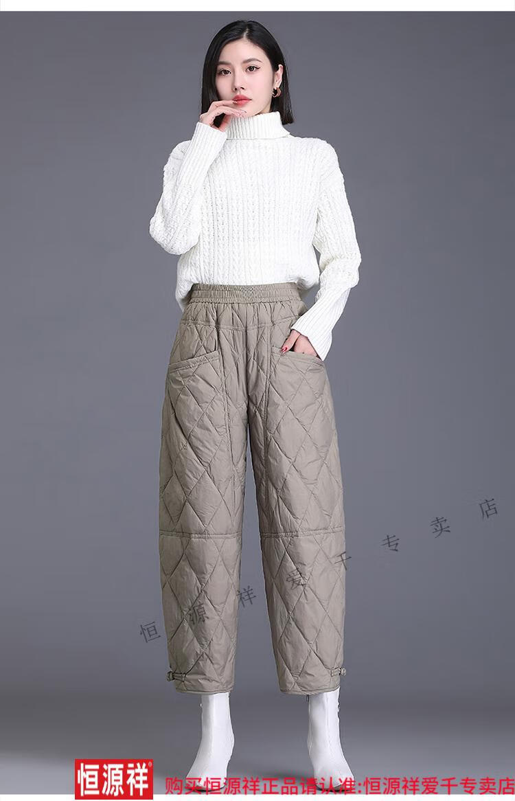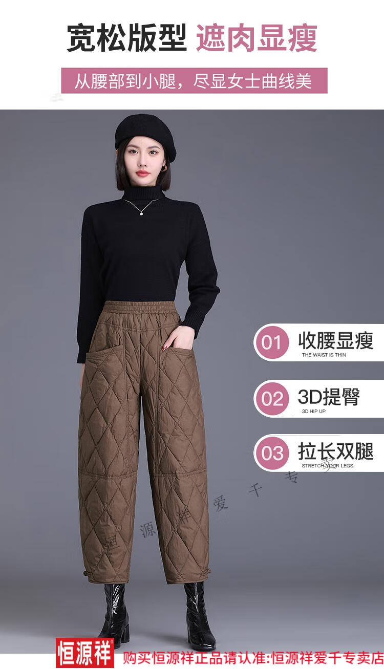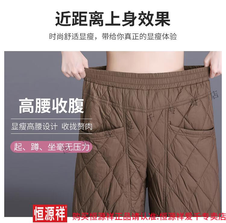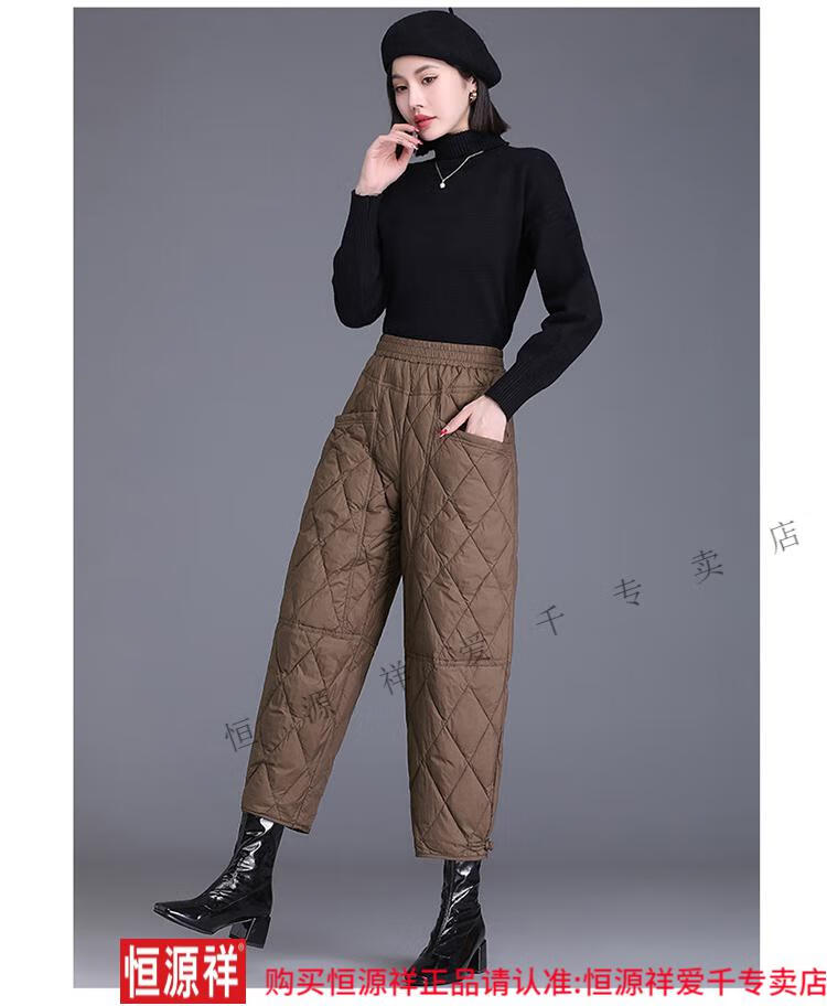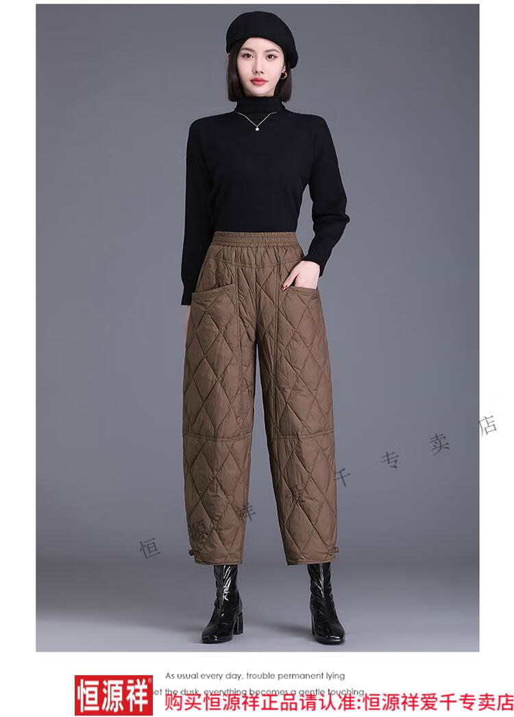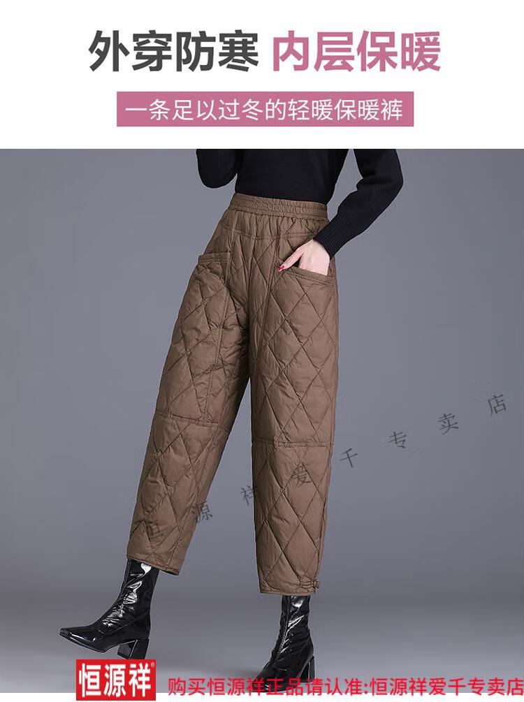 Hengyuanxiang Down Pants Women's Outerwear 2024 New Winter Fashion Women's Velvet Thickened Eight-Point Pants Mom's Warm Cotton Pants Brown 3XL